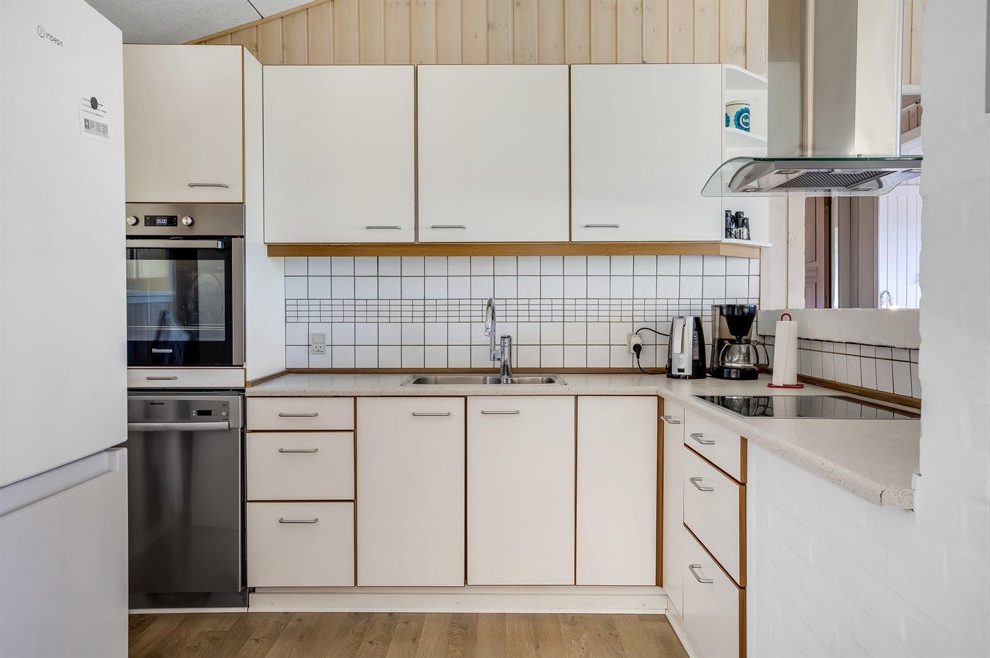 De keuken is uitgerust met koelkast Er zijn 4 keramische kookplaten, heteluchtoven en vaatwasser.