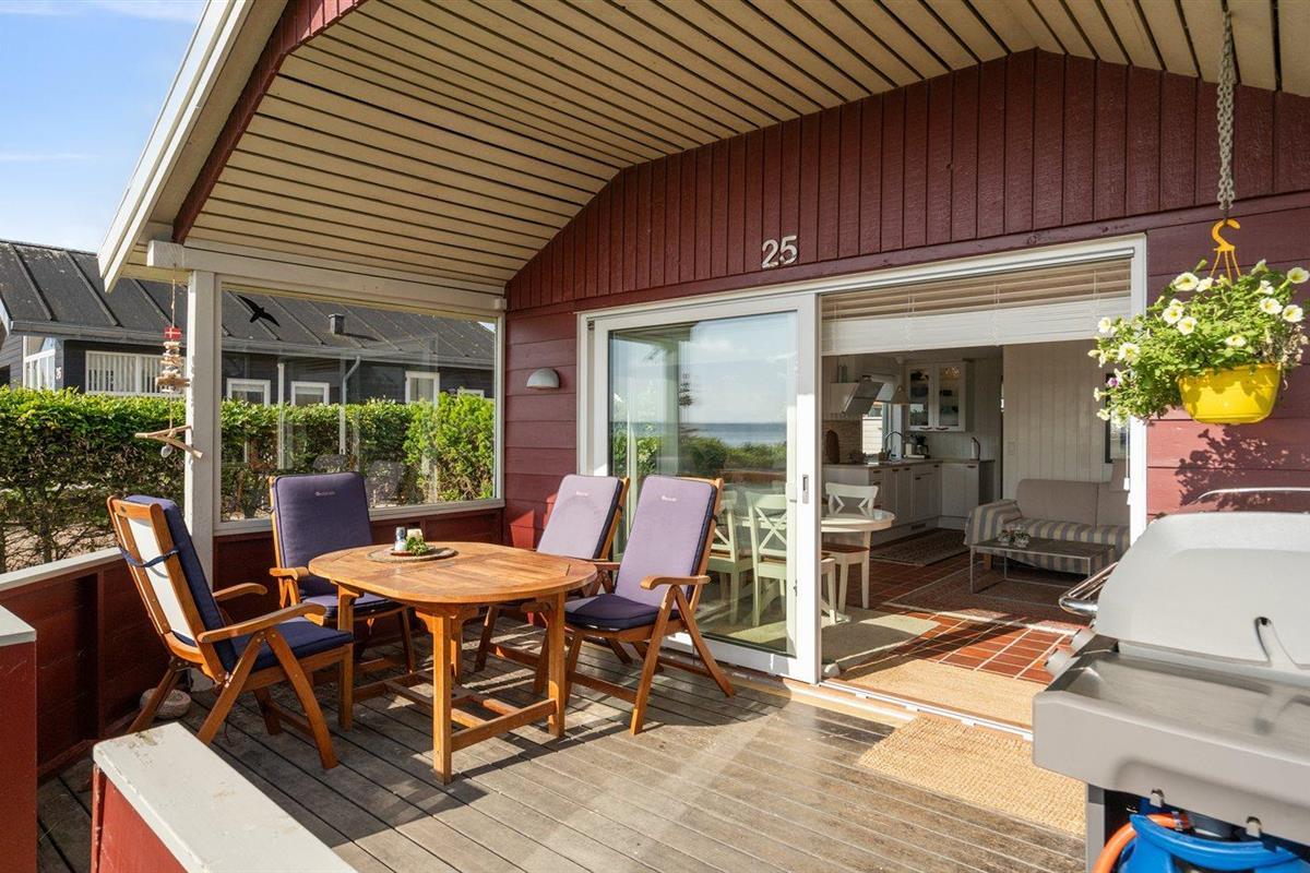 De vakantiewoning is gelegen op een 250 m² groot aangelegde tuin. Afstand tot de zee 25 m. Dichtstbijzijnde winkel 800 m. Er is een golfbaan op een afstand van 12000 m. Bij de vakantiewoning hoort terras. Daarnaast is er een overdekt terras. Afstand tot speelplaats 600 m. Barbecue. Het huis heeft een stopcontact voor het opladen van een elektrische auto. Oplaadstekker type 2. Met 11 kW-laadvermogen. Parkeerplaats bij het huis.
