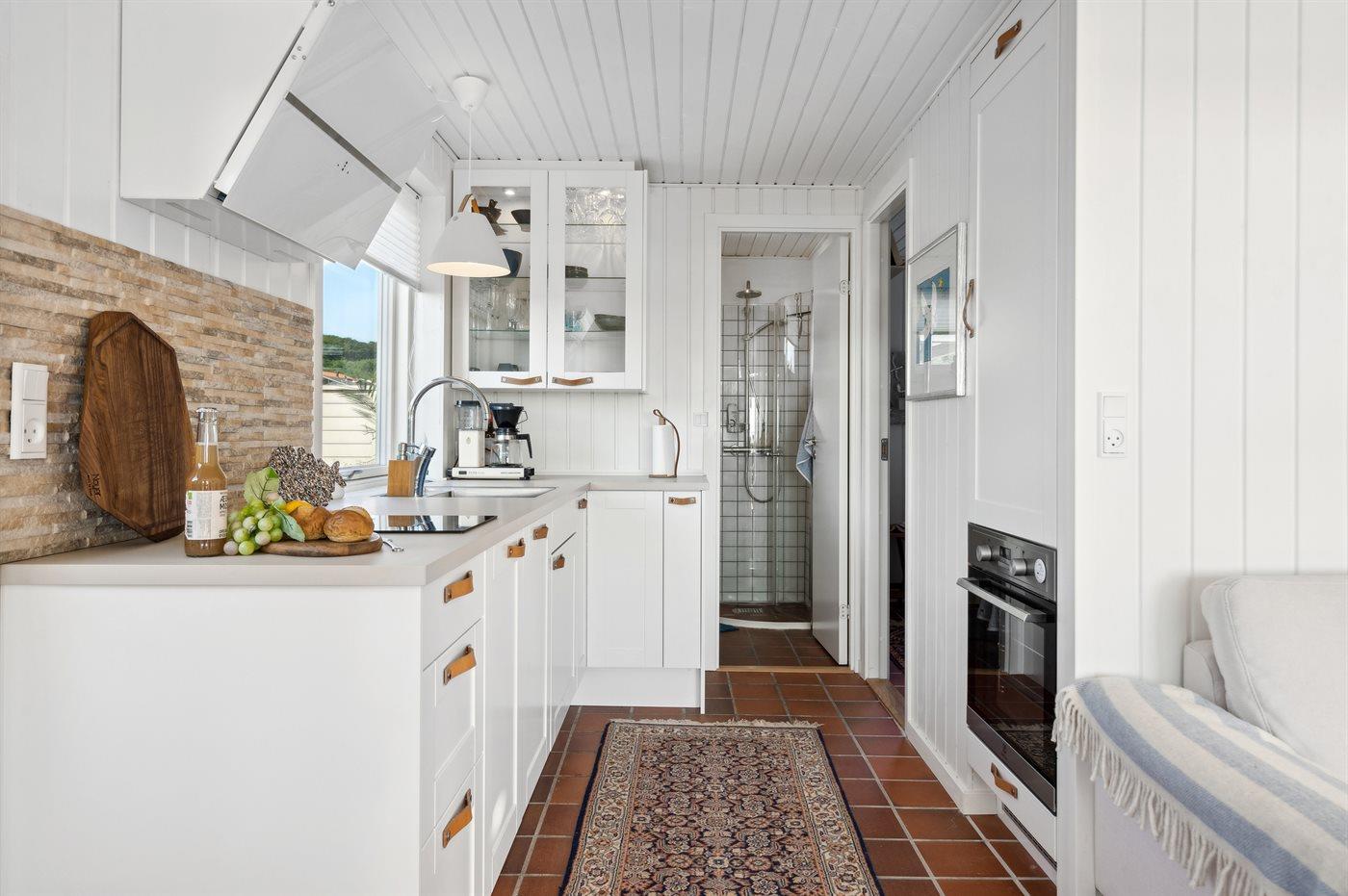 De keuken is uitgerust met koelkast Er zijn 2 keramische kookplaten, heteluchtoven en vaatwasser.