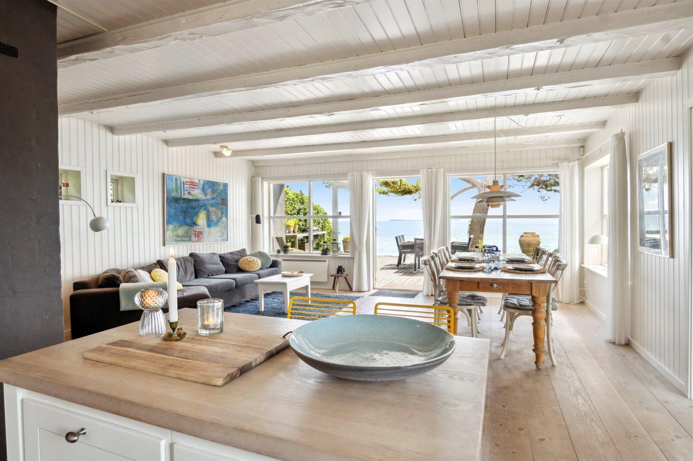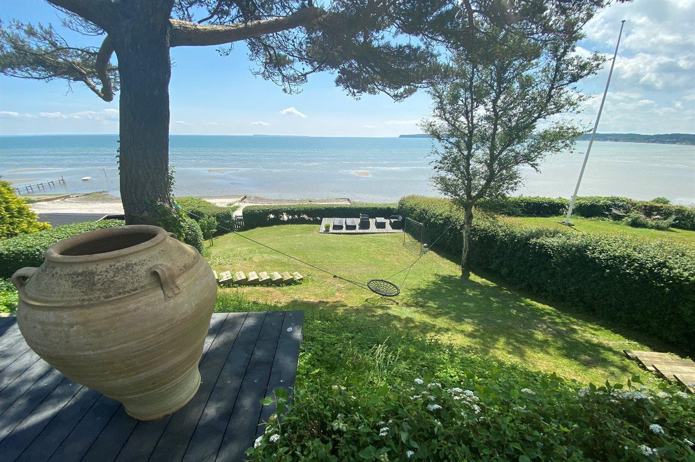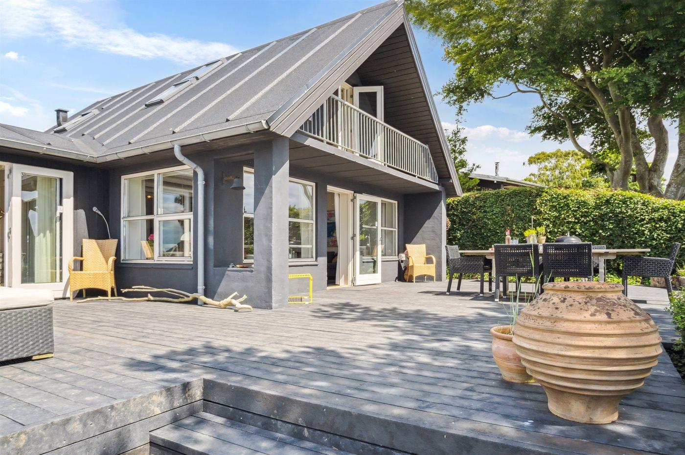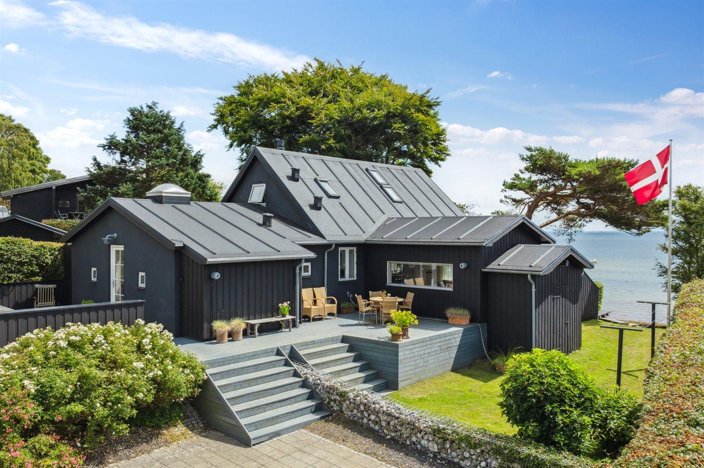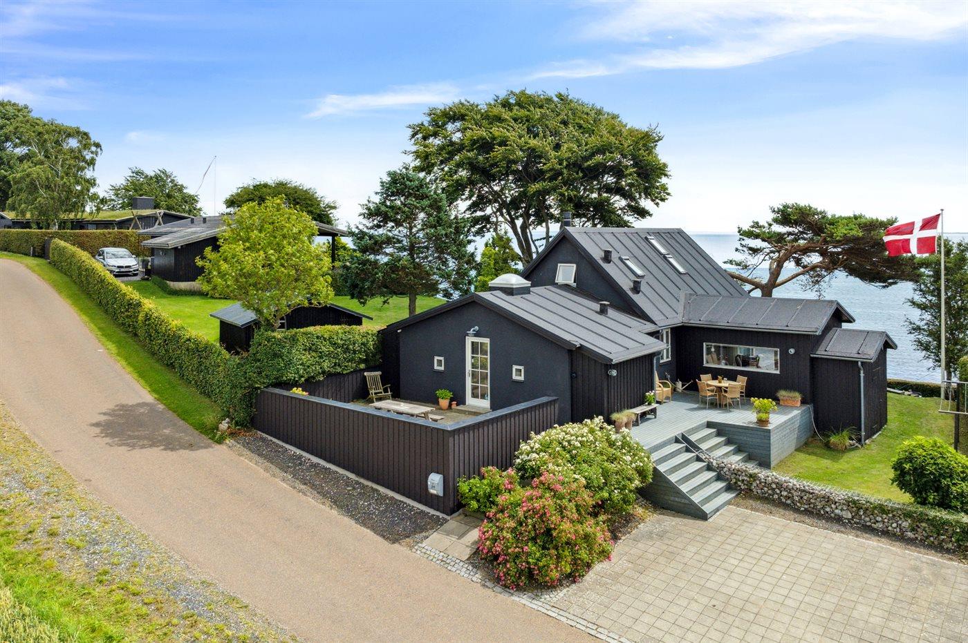 Charmant vakantiehuis in Bjert, Denemarken, met zeezicht, tuin en duurzame voorzieningen.