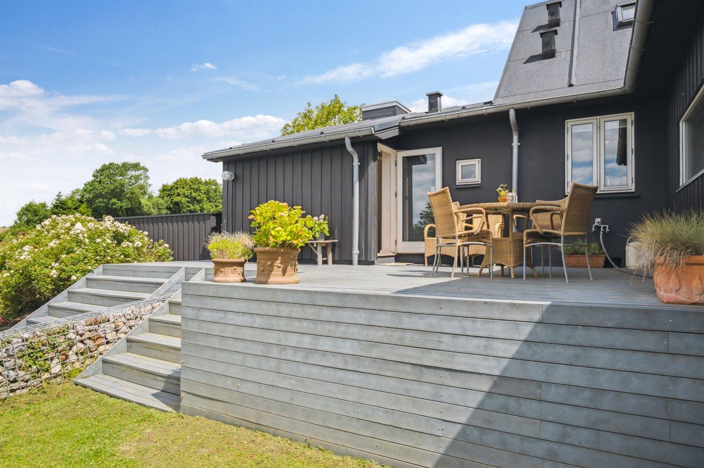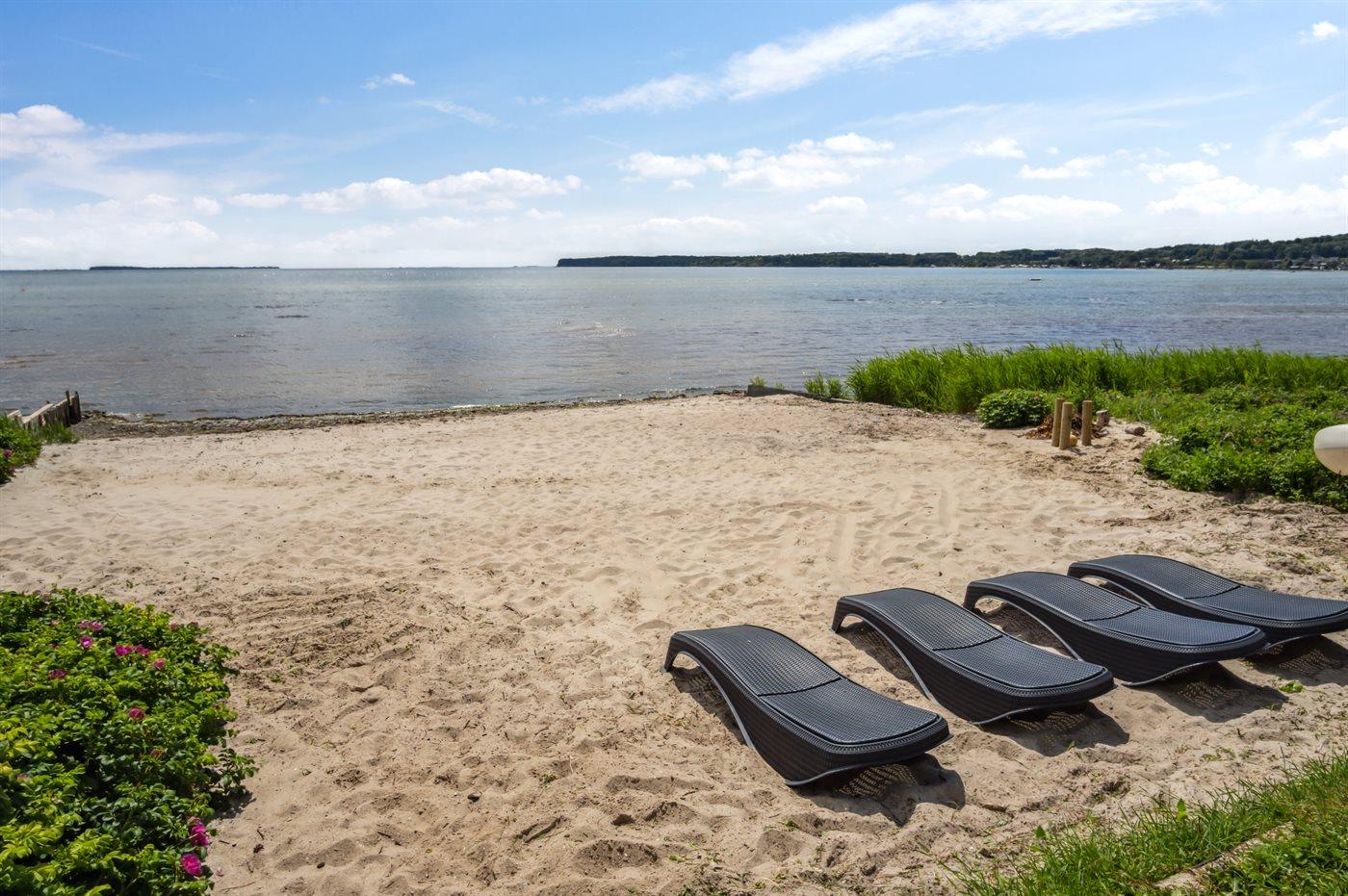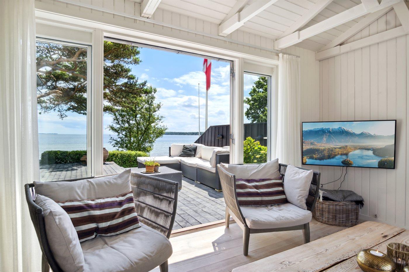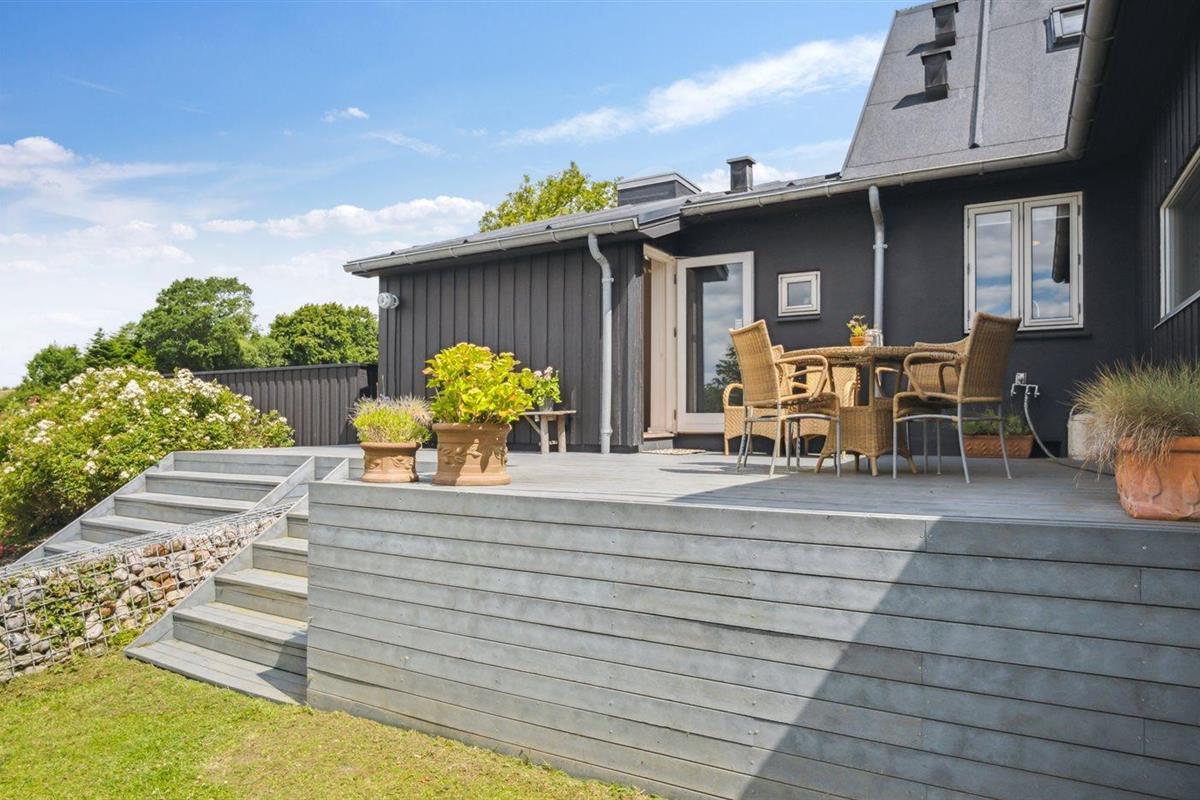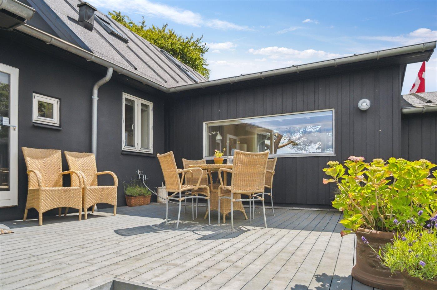 Charmant vakantiehuis in Bjert, Denemarken, met zeezicht, tuin en duurzame voorzieningen.