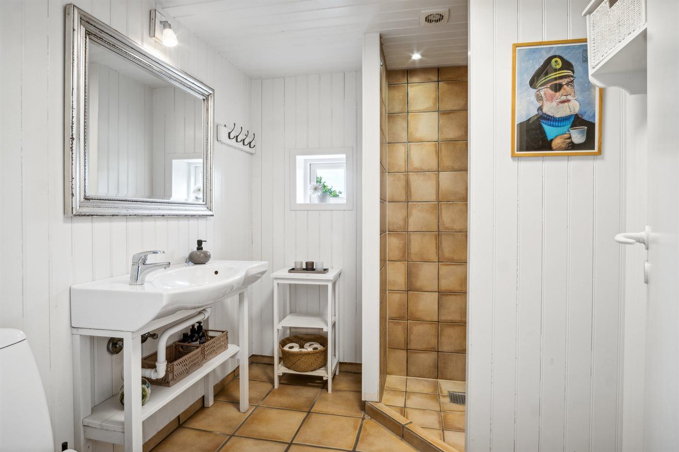 Er is 1 badkamer met douchehok en 2 toiletten, waarvan 1 gastentoilet. Er is vloerverwarming in 1 badkamer.