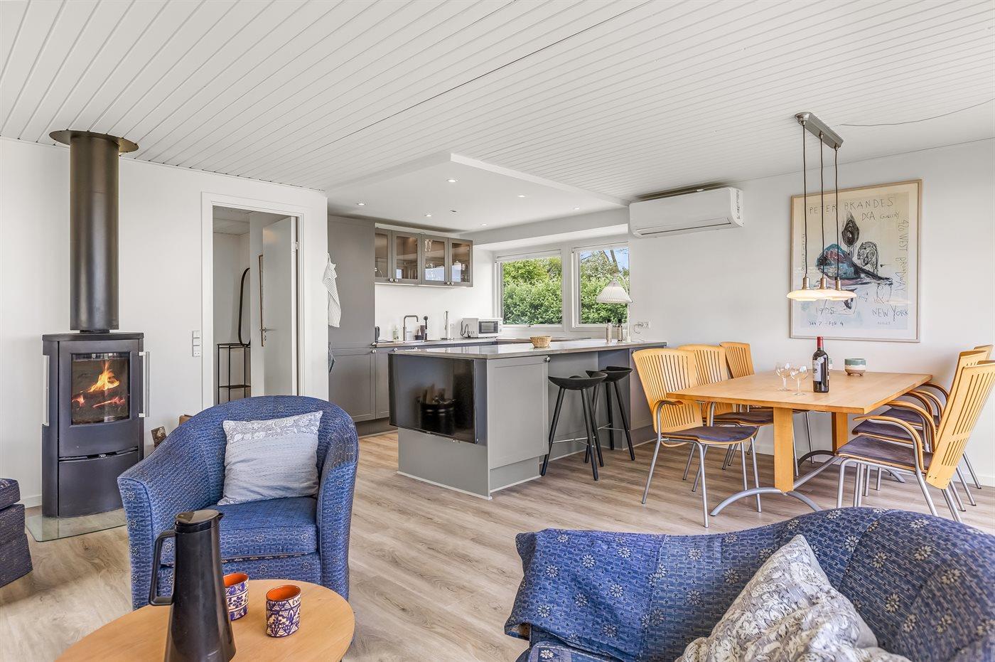 De keuken is uitgerust met koelkast Er is 4 inductiekookplaten, heteluchtoven, magnetron en vaatwasser.