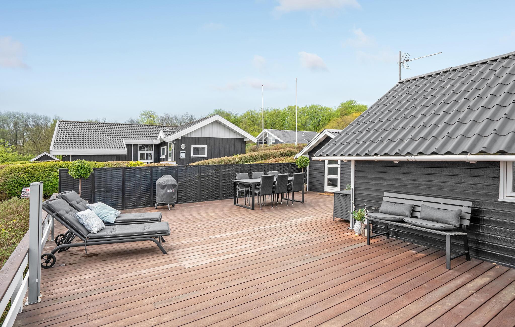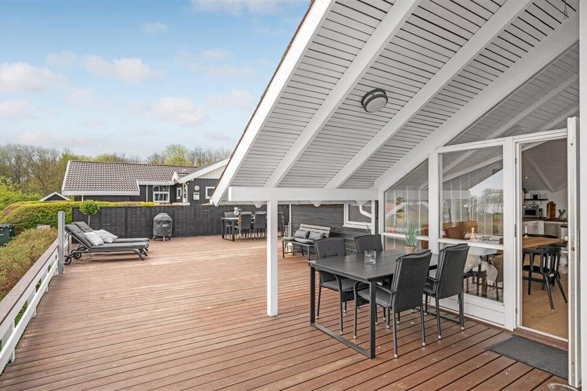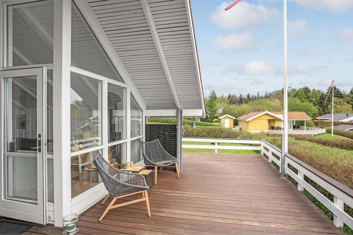 Ontdek dit moderne vakantiehuis met zeezicht, houtkachel en overdekt terras in Binderup Strand, Denemarken.