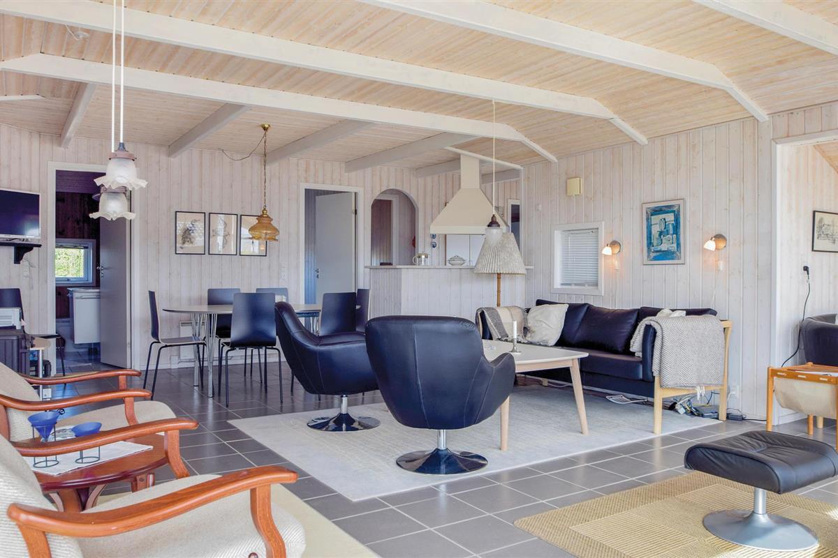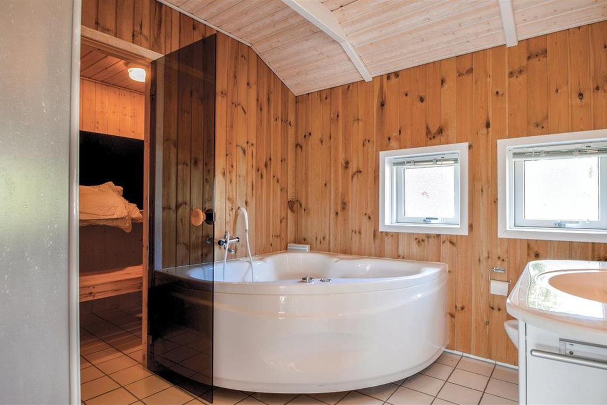Een mooi vakantiehuis, dicht bij het water en voorzien van een groot terras. Het is gelegen in Binderup Strand, in de tweede rij naar het water. Het biedt uitzicht op het water. Op het gedeeltelijk overdekte terras kunt u zowel overdag als 's avonds genieten van het mooie Deense weer. Binnen is er een licht ingerichte keuken-woonkamer, drie goede slaapkamers, een grote badkamer met massagebad en sauna, dus ook wellness wordt hier aangeboden. Er zijn winkelmogelijkheden en een klein restaurant naast het huis. Binderup is een natuurgebied met veel bos, weide en strand, perfect voor gezinnen met kinderen. Op korte afstand ligt Kolding met een winkelcentrum en het kasteel Koldinghus. Het strand van Binderup is kindvriendelijk.