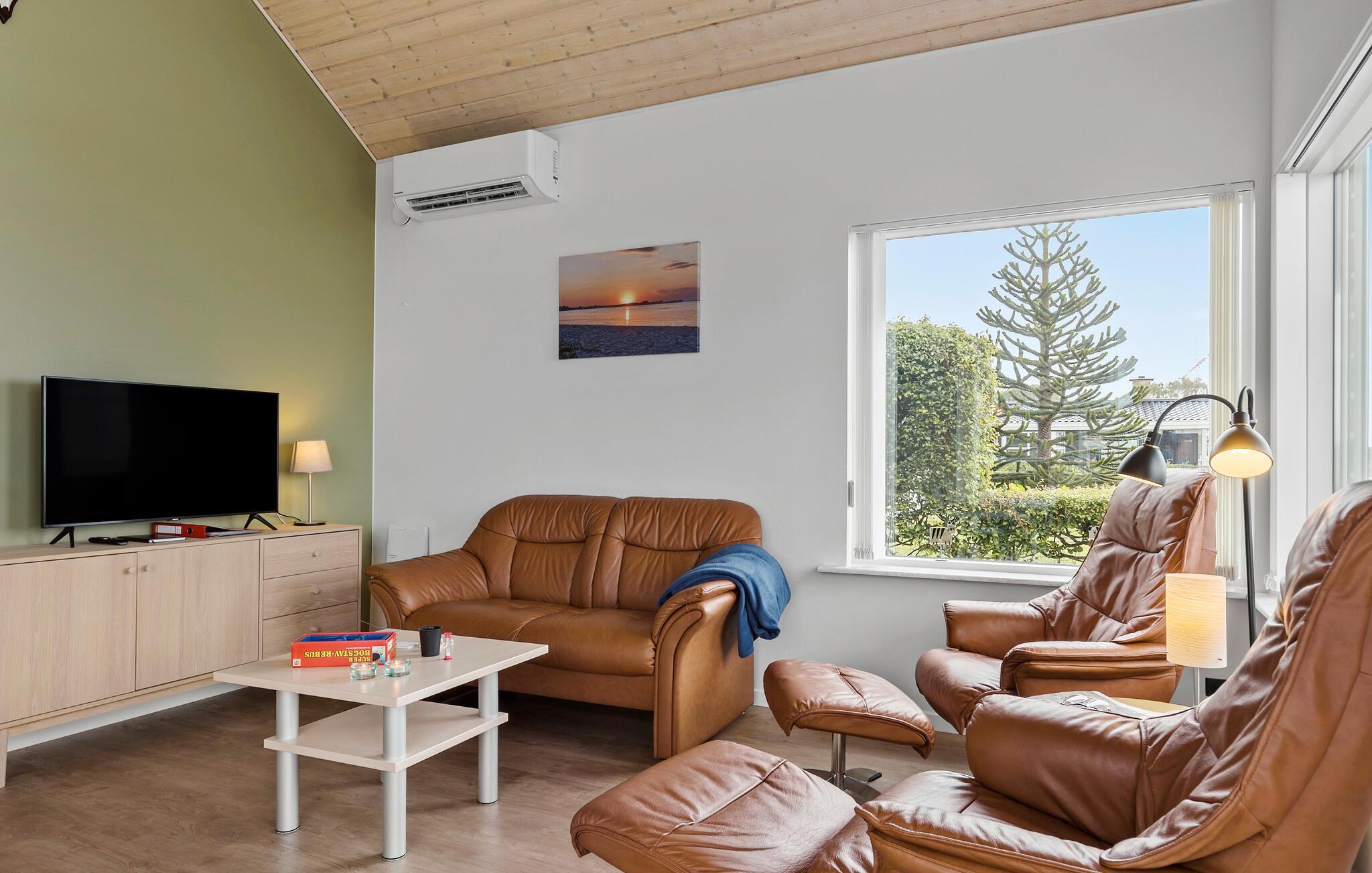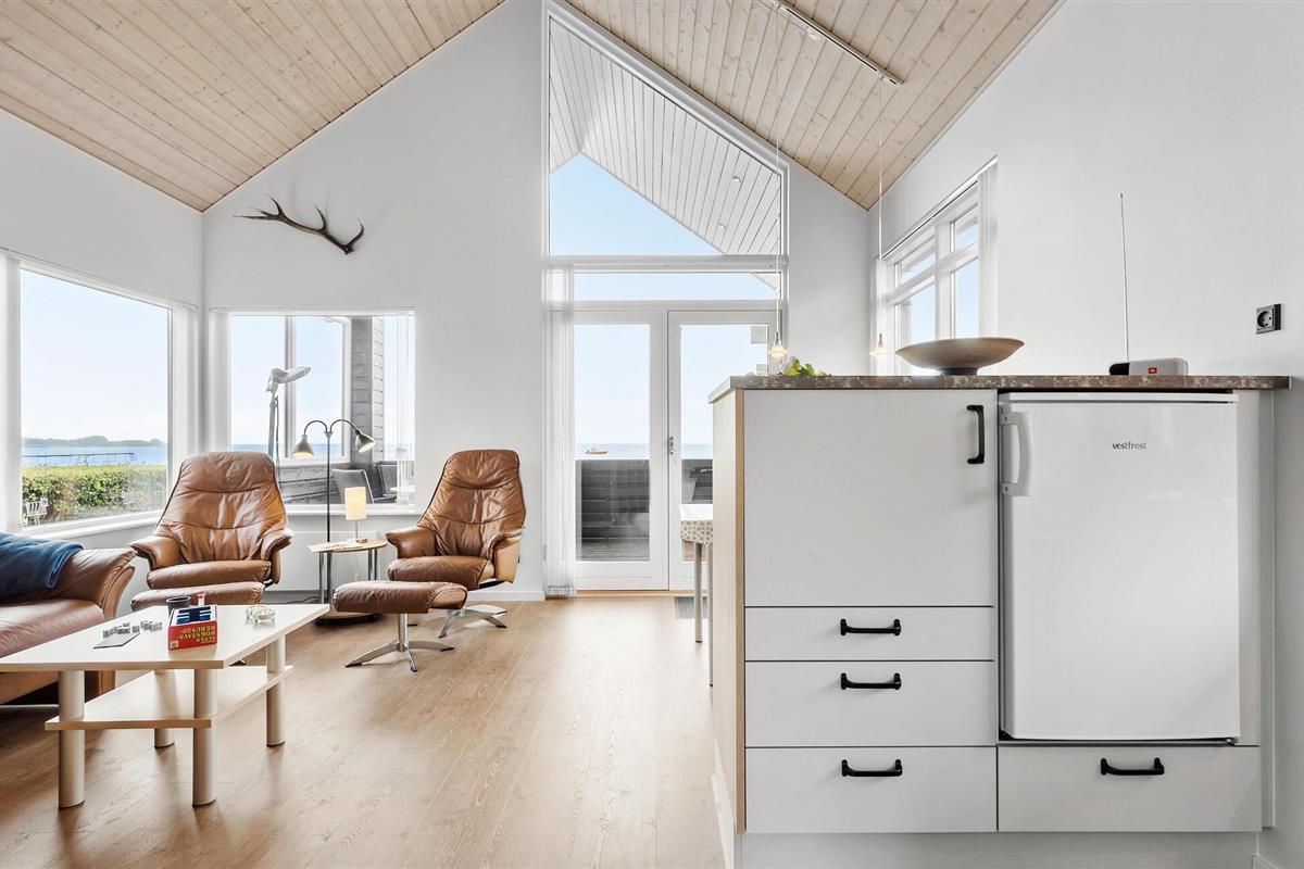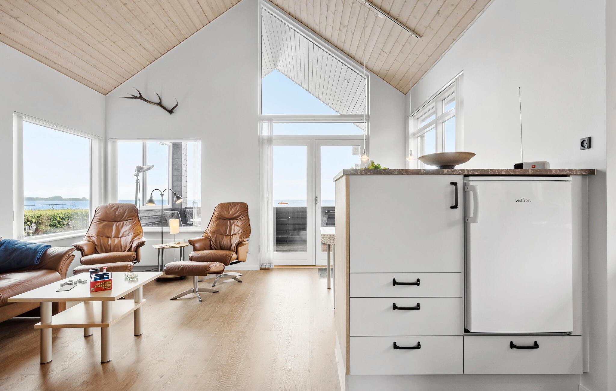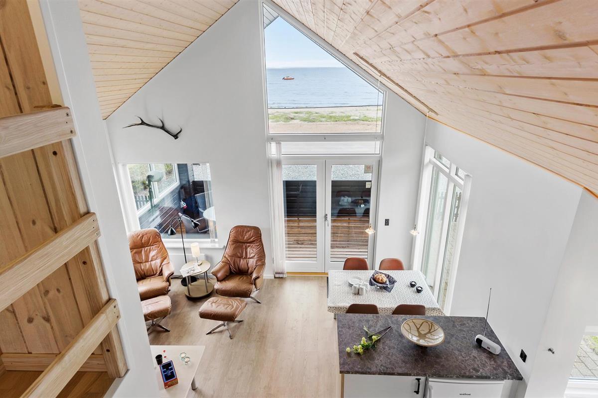 Panoramisch uitzicht op het strand en het water. Het is slechts 10 meter naar het meest kindvriendelijke strand in de omgeving, een betere locatie is er niet. Het vakantiehuis ligt op een klein perceel met twee terrassen onder het dak. Vanaf het ene terras kijkt u uit op het strand, het andere ligt achter het huis waar u ongestoord van uw diner kunt genieten. Grote panoramische ramen zorgen ook voor een goed zicht naar buiten. Vanaf het overdekte terras komt u in de dependance. Op de slaapzolder staan twee bedden. Een echt leuk vakantiehuis waar u zult genieten van uw vakantie, het strand en uitstapjes in de regio.