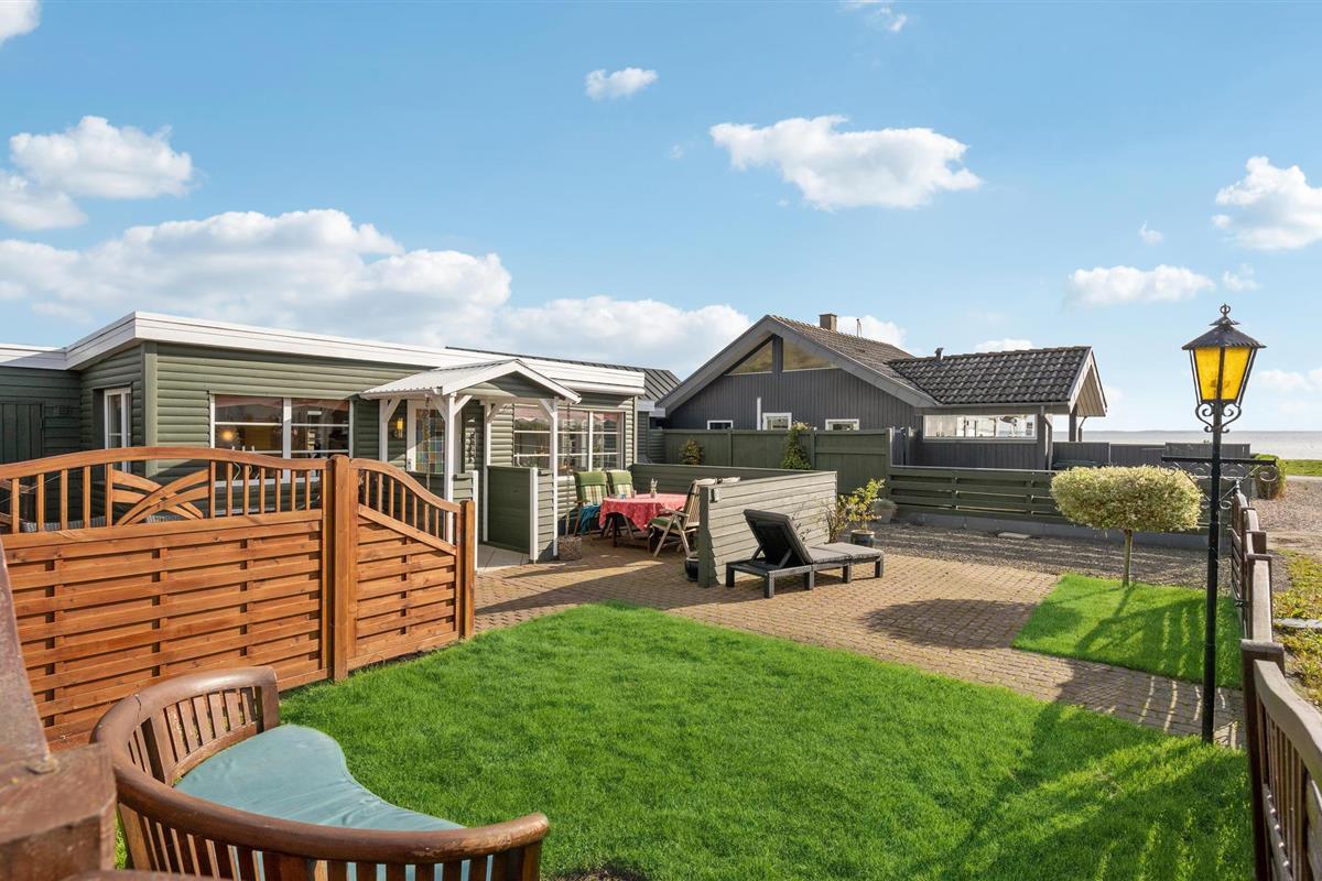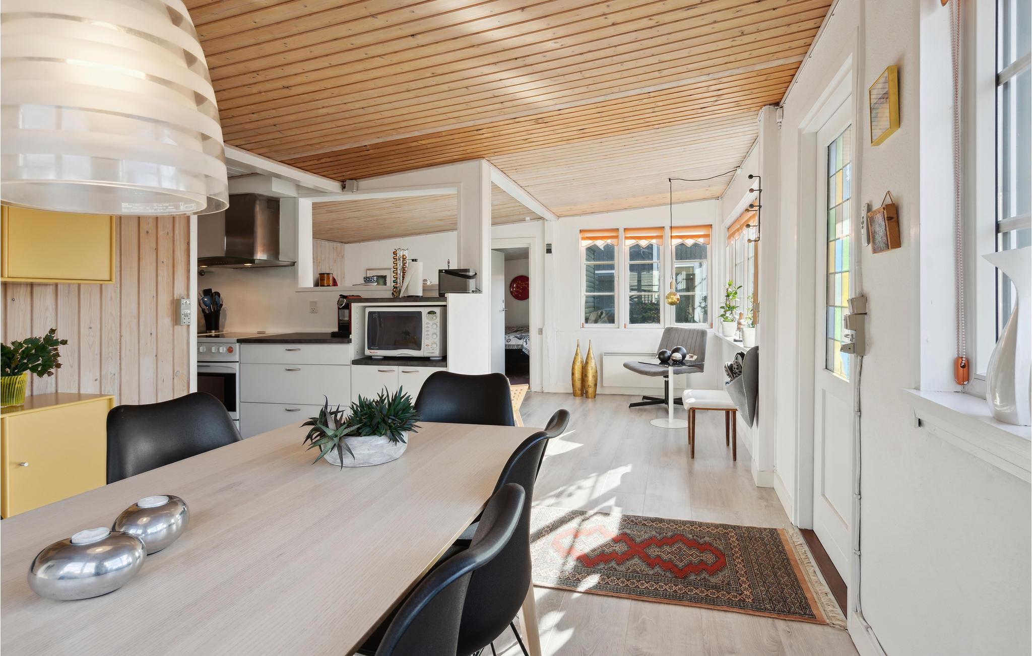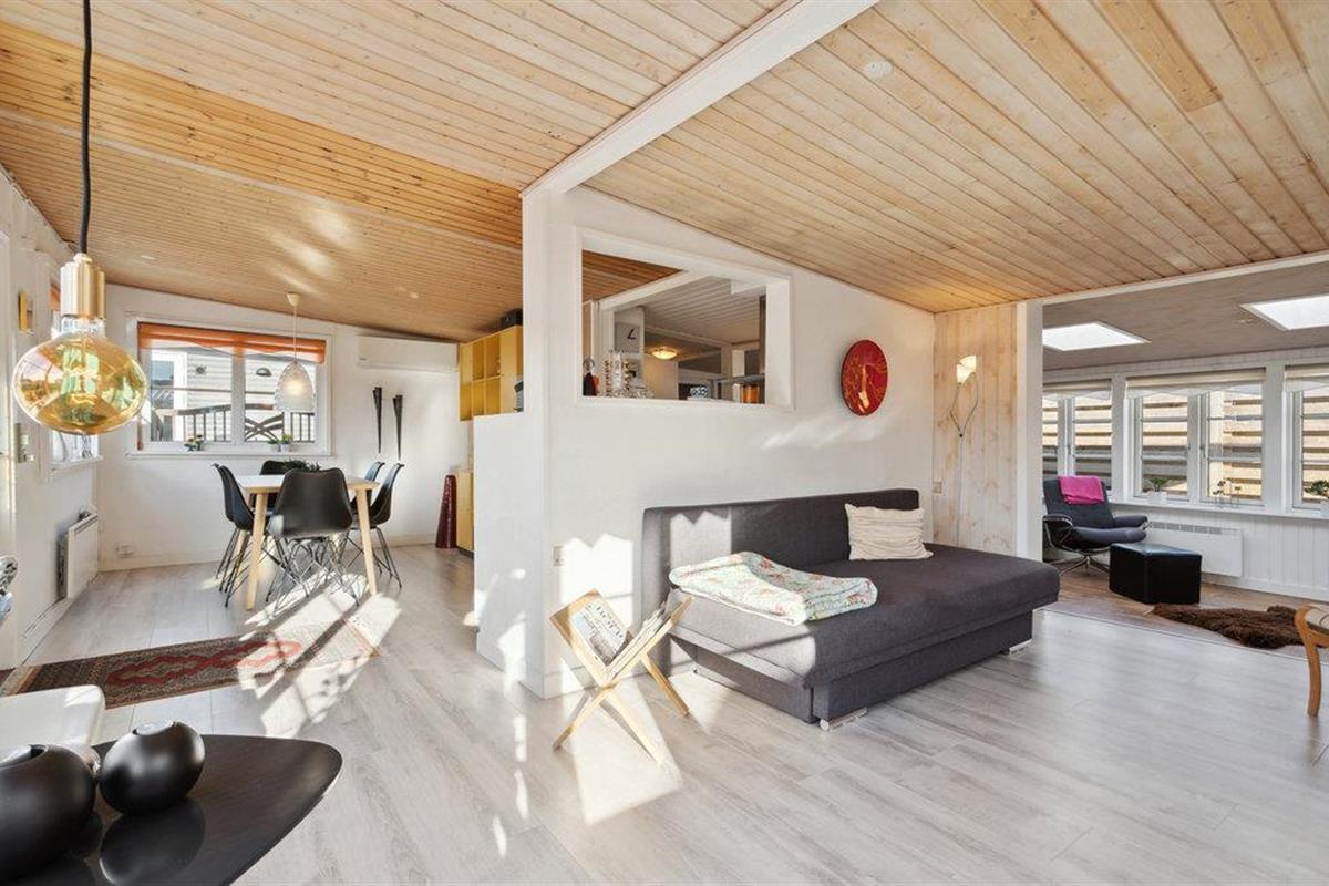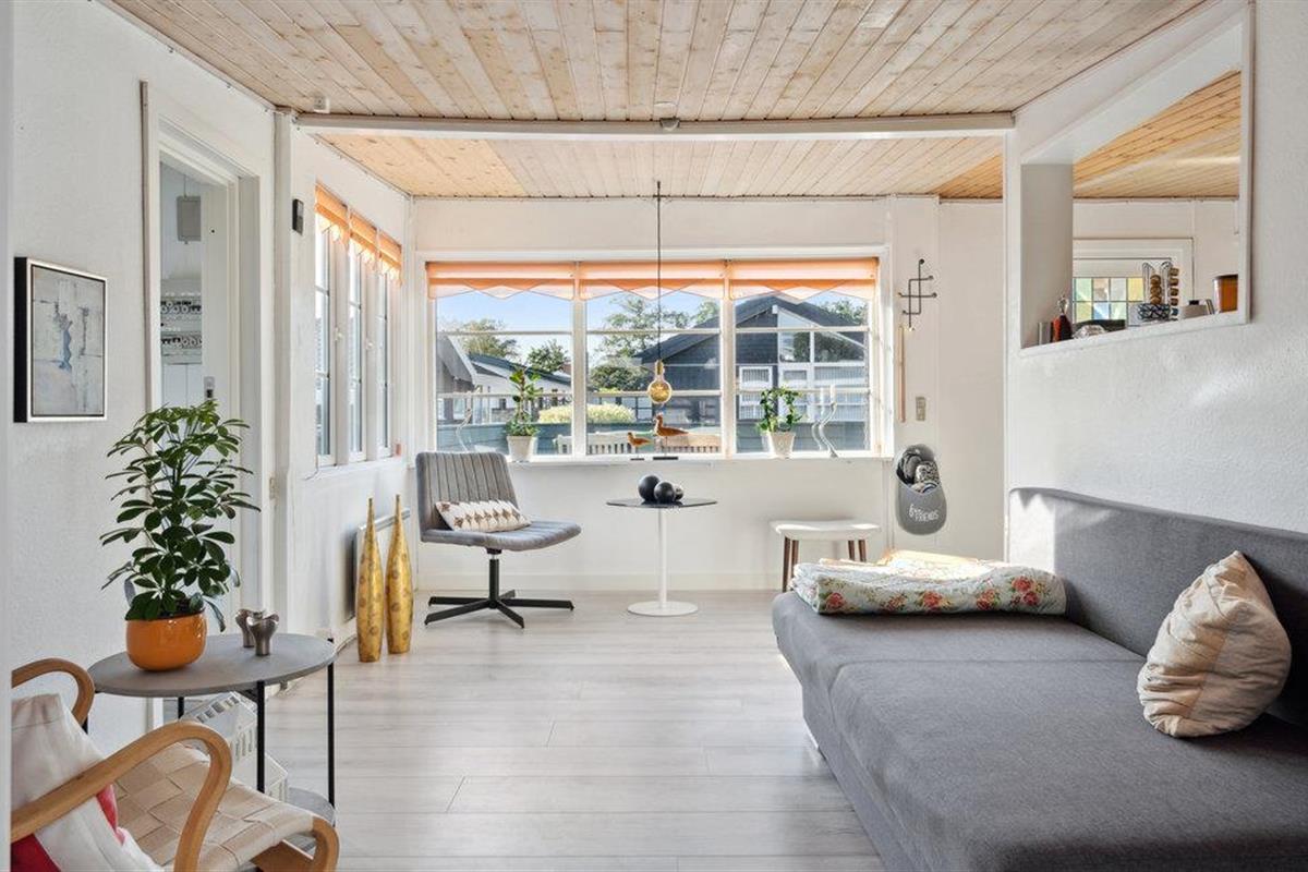 Geniet van een stijlvol vakantiehuis direct aan het strand van Binderup Strand met zeezicht en moderne voorzieningen.