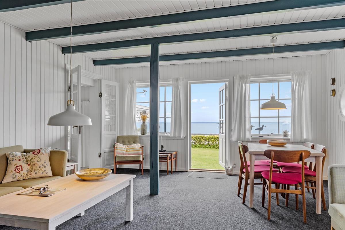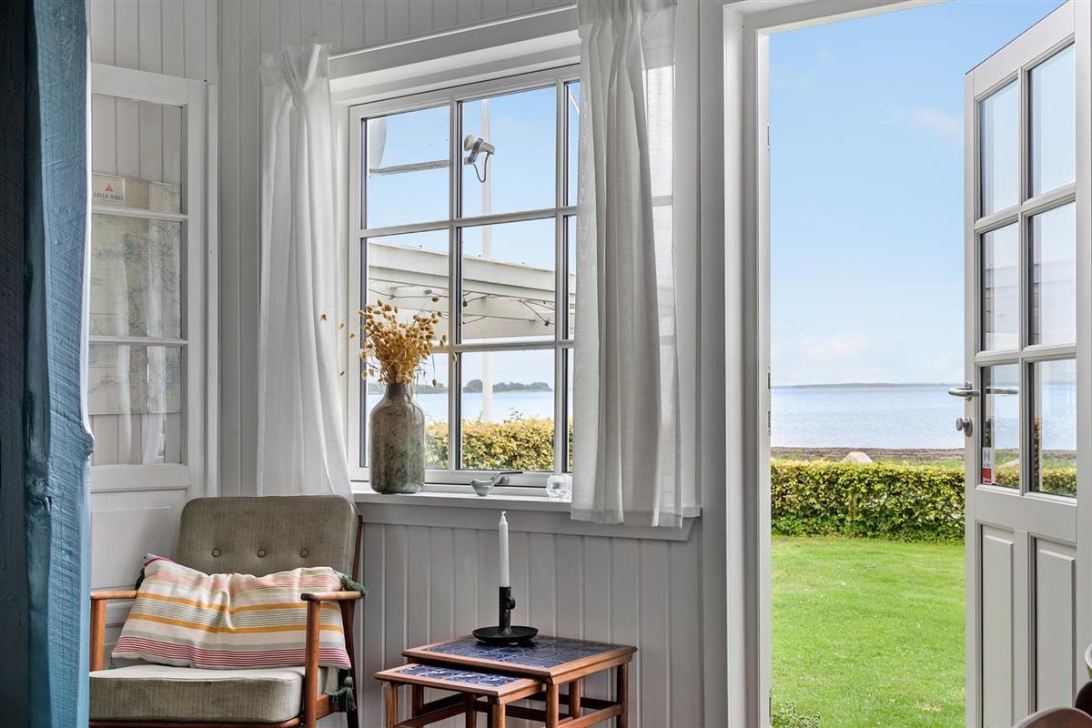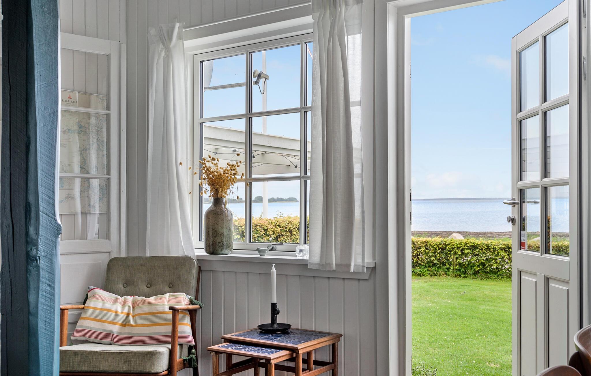 Gezellig houten vakantiehuis uit 1927 met panoramisch uitzicht op de Kleine Belt en direct aan het strand van Binderup Strand.