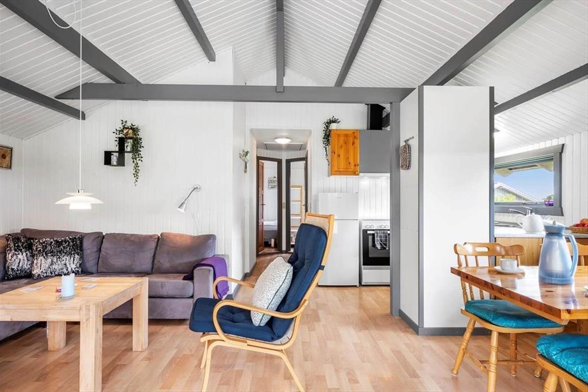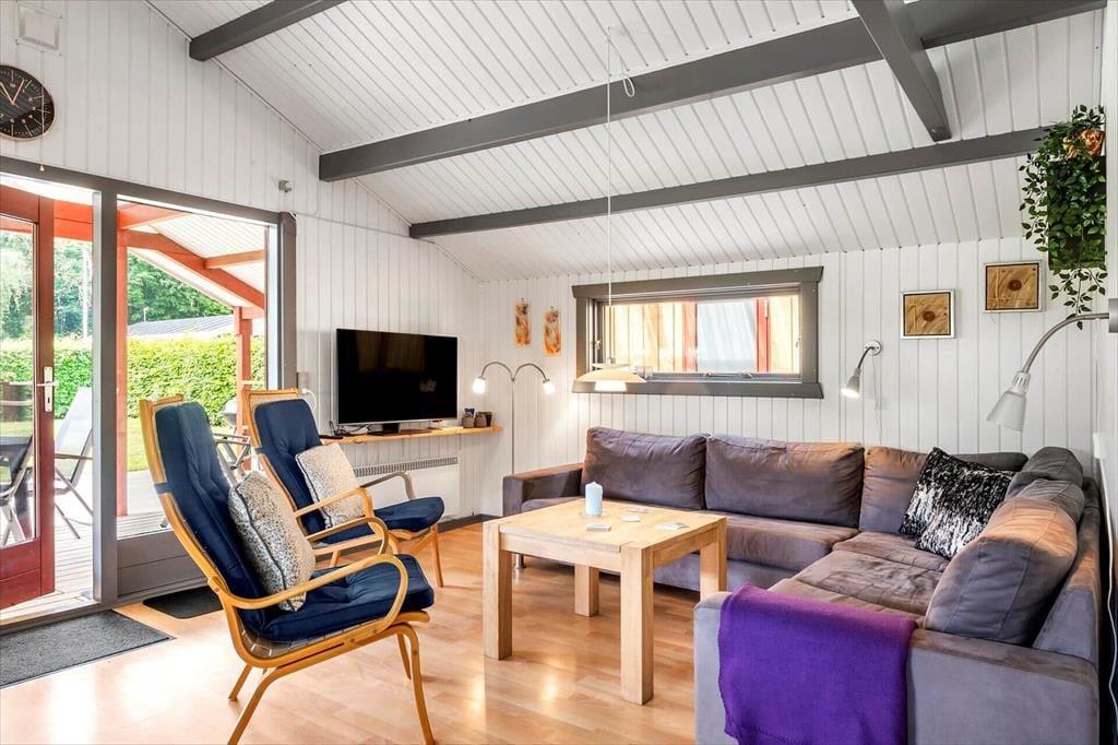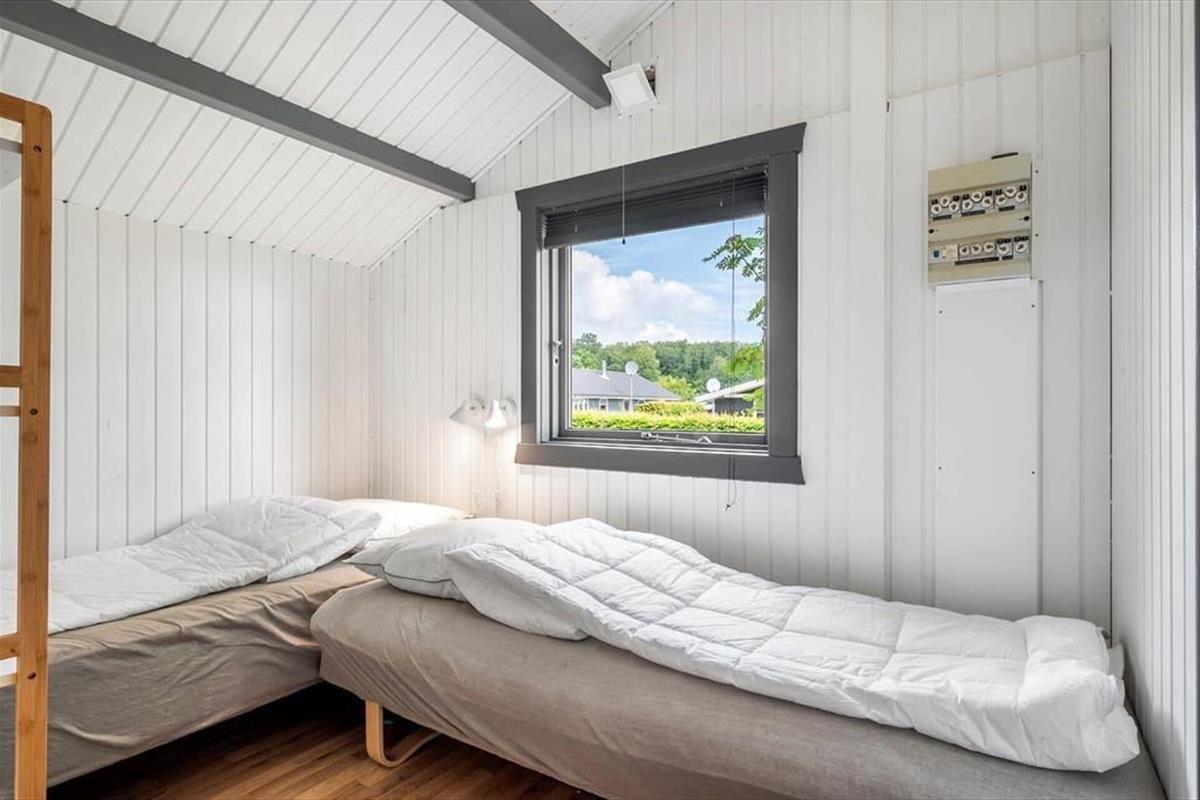 The summer house at Binderup Strandpark 34 welcomes you with its bright and friendly atmosphere. Inside, you will find a modern interior where the kitchen and living room are combined into one large, open space. This makes it easy to be together, whether you are cooking or relaxing on the sofa. The living room is equipped with comfortable furniture that invites cozy evenings with board games or a good movie. The bedrooms are furnished with good beds to ensure a pleasant night's sleep, so you are ready for the next day's adventures.