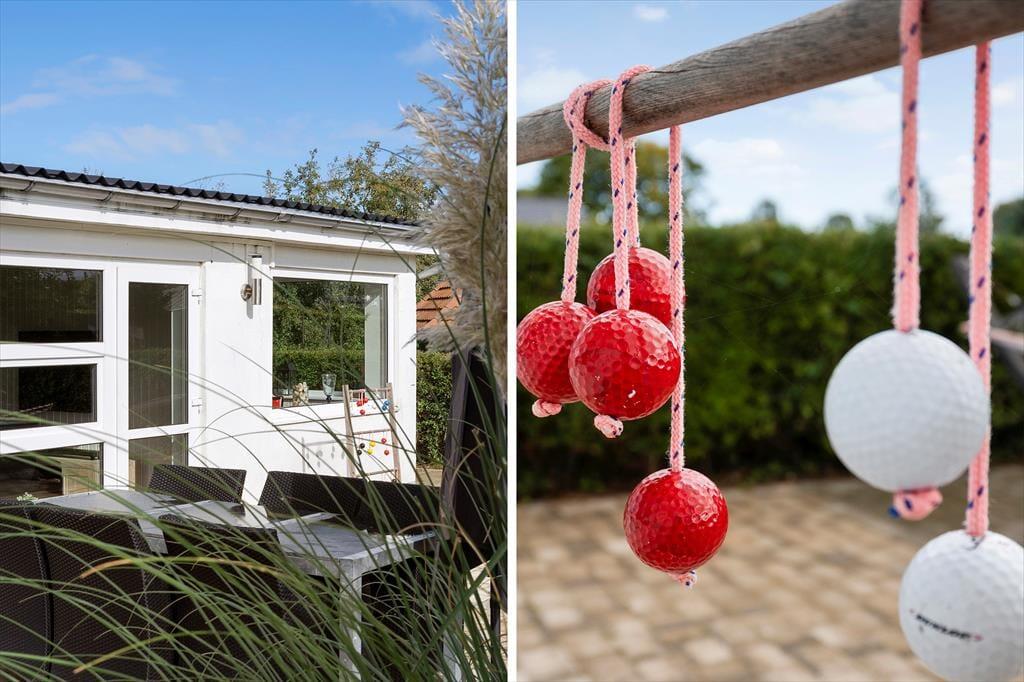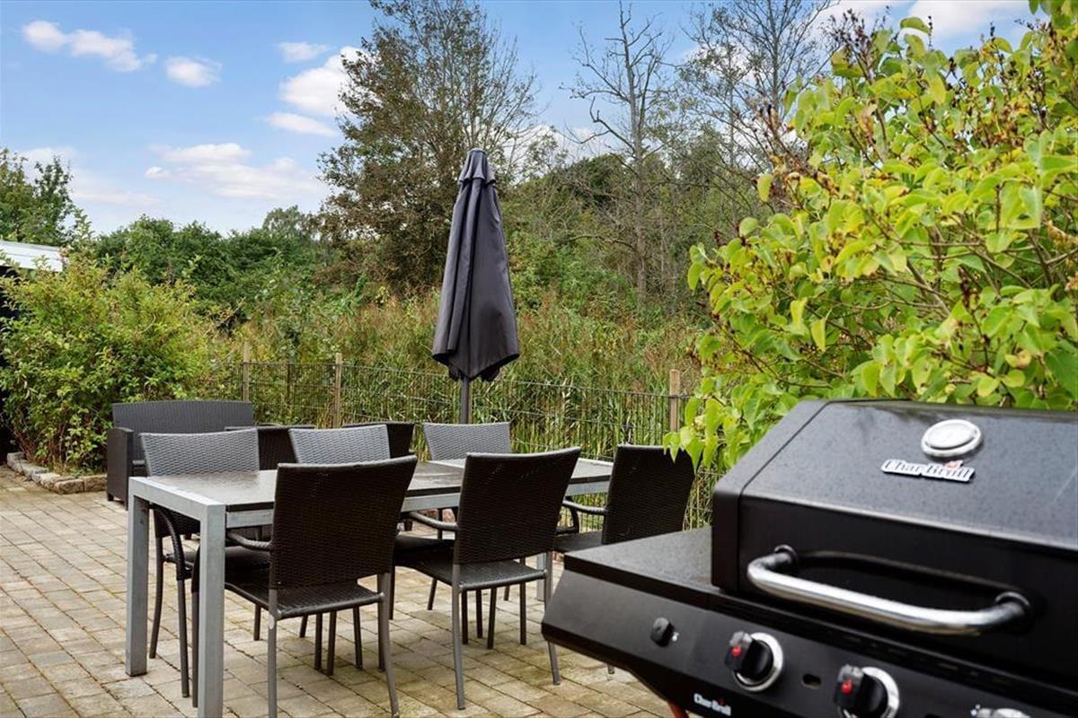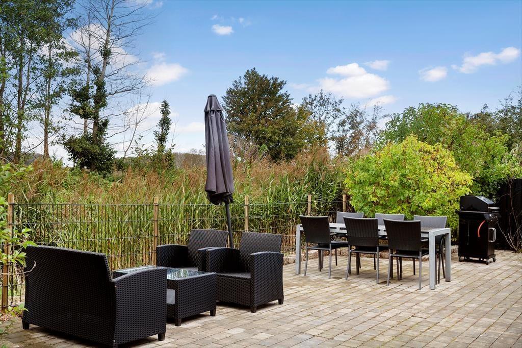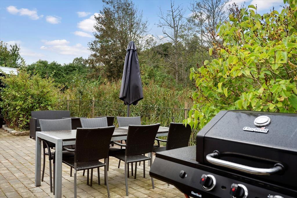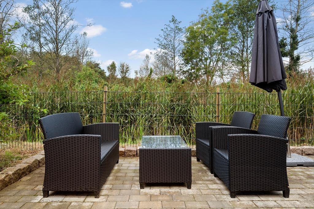 The holiday home is surrounded by lovely terraces that wrap around the house, so you can always find both sun and shelter. Here you can start the day with a fresh cup of coffee in the morning sun or end the evening with a glass of wine under the stars. One of the absolute highlights of the holiday home is the wilderness bath, where you can sink into the warm water and feel the sense of wellbeing spread, while birds are singing in the background. The large garden invites play and activity – children can enjoy the trampoline or swing, while the adults relax in the garden furniture or light up the barbecue for a cosy dinner. The entire outdoor space is created to enjoy life under the open sky and make memories that last.