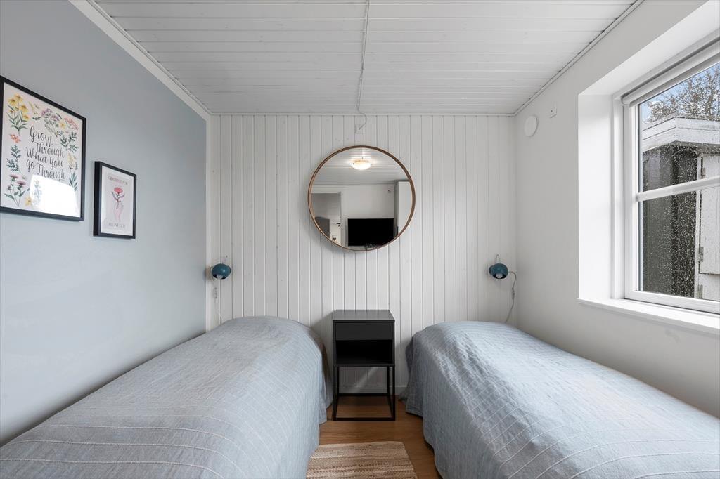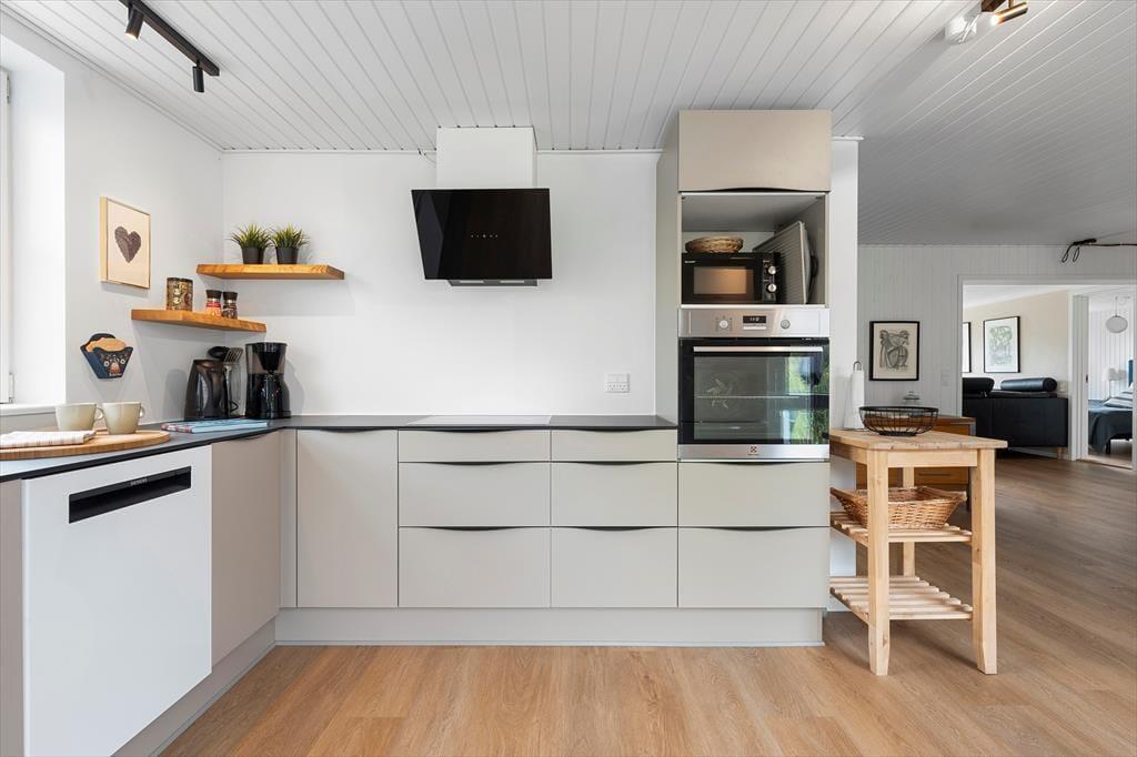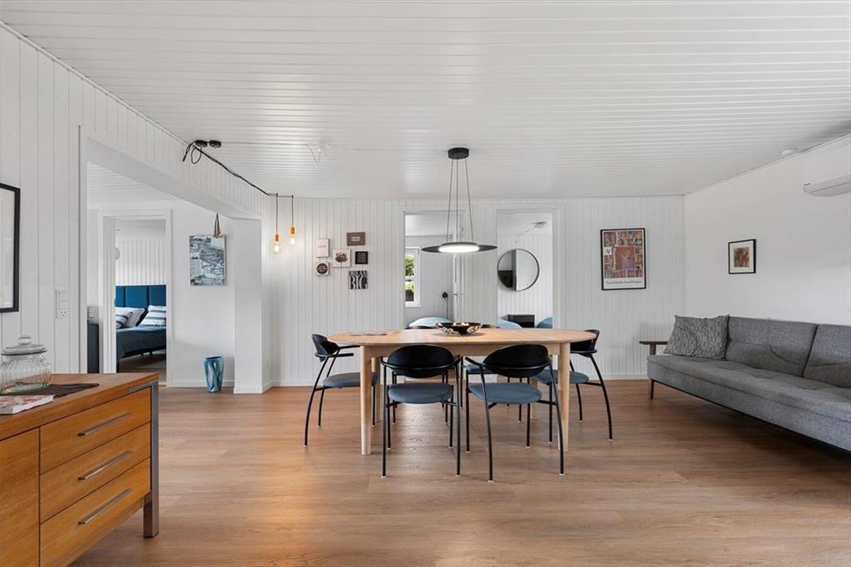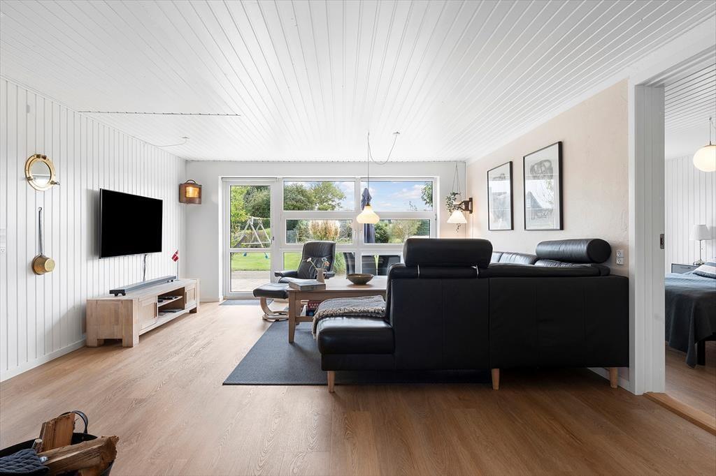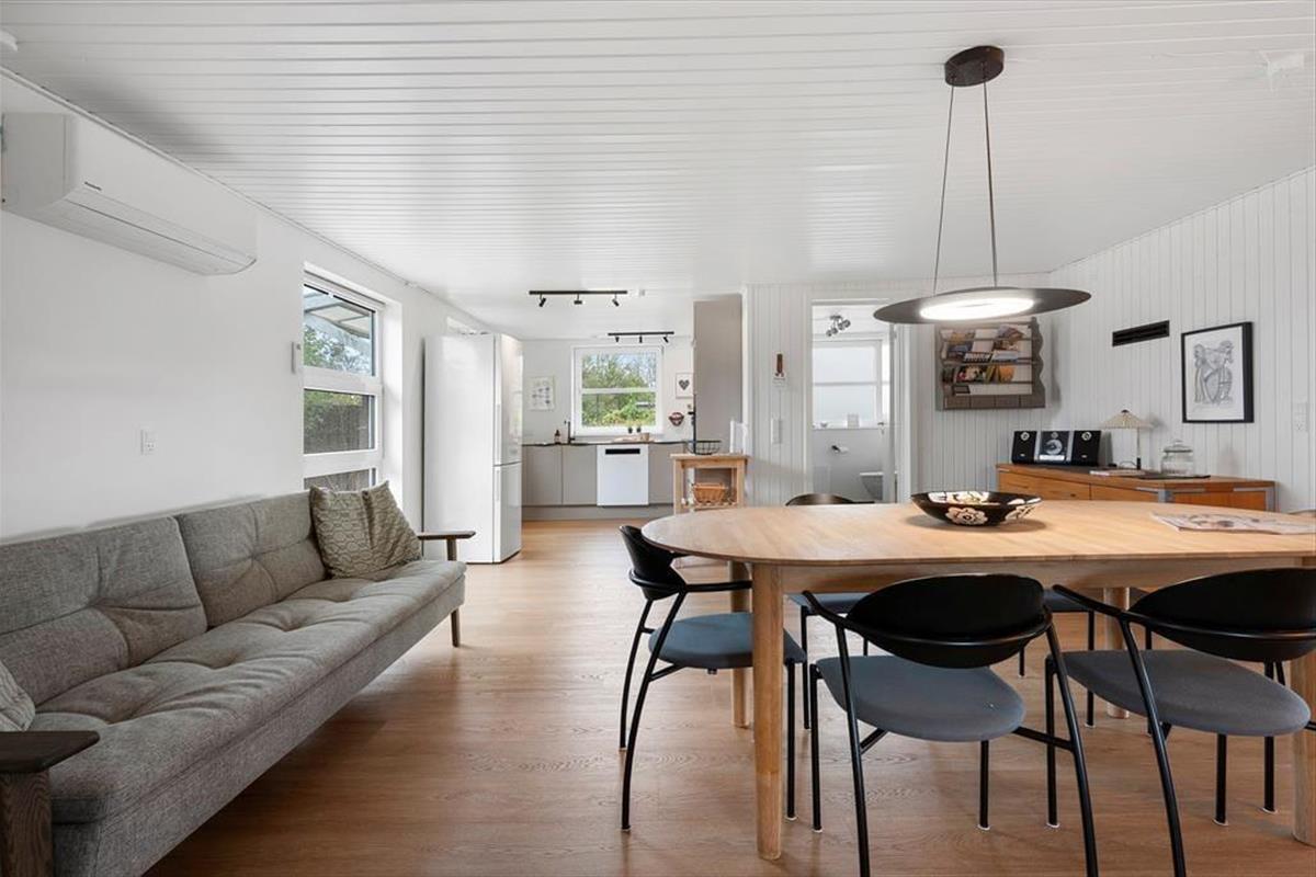 When you step into this holiday home, you are greeted by a bright and inviting atmosphere that instantly makes you relax. The interior is simple and cosy, and the comfortable bedrooms provide space for rest and relaxation after a day full of experiences. The open living area creates the perfect setting for shared meals, board games and great conversations. From here you can enjoy the view of the green garden through the large windows, which let in plenty of light and create a natural connection between indoor and outdoor living. The house radiates holiday spirit, where you quickly feel at home and find the calm that everyday life rarely allows.