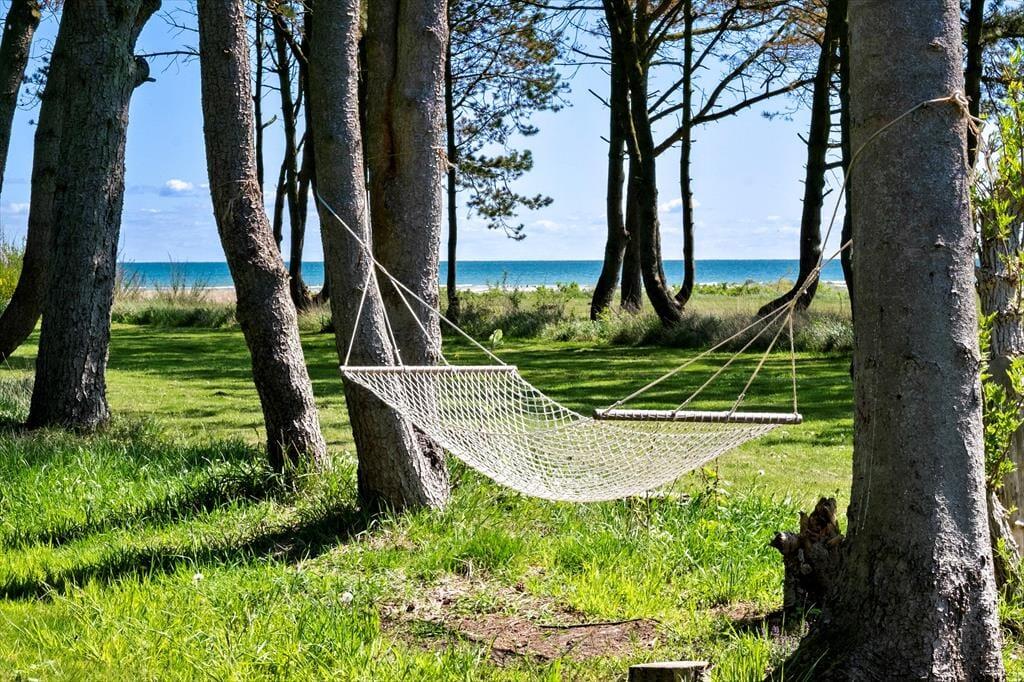 Die Sackgasse Bisnapkrat ist ein ruhiges, schönes Fleckchen für erholsame Urlaubstage. Ein Pfad führt Sie den kurzen Weg bis an die Strandwiesen hinunter. Zu einer längeren Tour lädt ein Wanderweg ein, der Sie in das Waldgebiet Winthers Plantage und zur Guldharalds Høj führt. Der Bisnap Strand ist ein schöner, kinderfreundlicher Strand an der Küstenlinie zwischen Hals und Hou. Golfspieler dürfen sich über die Nähe zum schönen Hals Golf Klub freuen. In Hals erwartet Sie eine gute Auswahl an Lokalitäten und Einkaufsmöglichkeiten. Vom beschaulichen Hafen können Sie per Fähre nach Egense übersetzen.