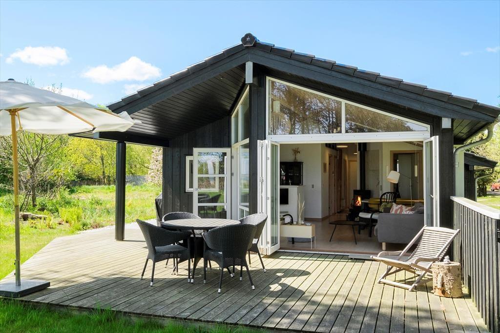Dank der Lage des Hauses müssen Sie sich keinerlei Kopfzerbrechen über ein abwechslungsreiches Urlaubsprogramm machen. Es ist ausgesprochen schön, einfach nur auf der Terrasse zu verweilen und den Ausblick über das grüne Gartengrundstück und das Wasser zu genießen. Die große Terrasse erstreckt sich östlich und südlich des Hauses. Gartenmöbel, Liegestühle, ein Sonnenschirm und ein Grill laden zu zahlreichen entspannten Stunden und gemütlichen Abenden ein. Ein wenig aktiver geht es sicher hin und wieder auf der Rasenfläche des 2.400 m² großen Grundstücks zu, auf der Sie nach Herzenslust Ball- und Outdoorspiele spielen können.