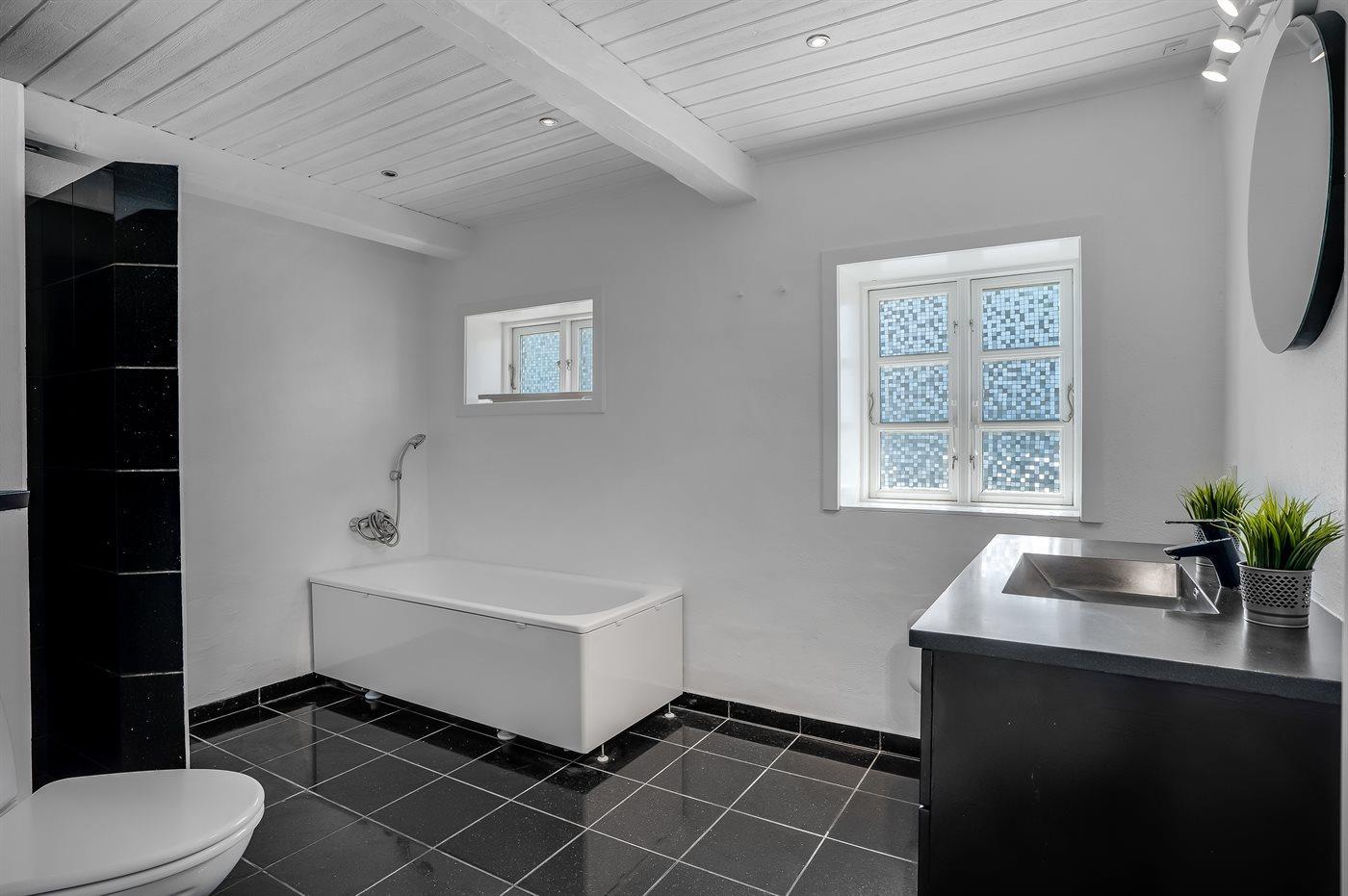 Er is 1 badkamer met douchehok en 2 toiletten, waarvan 1 gastentoilet. Er is vloerverwarming in 1 badkamer.. Badkuip.