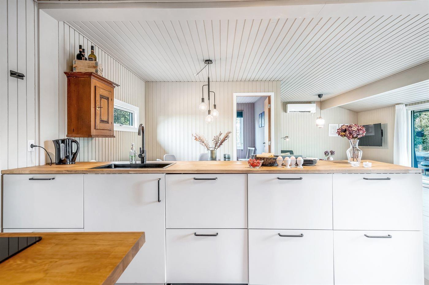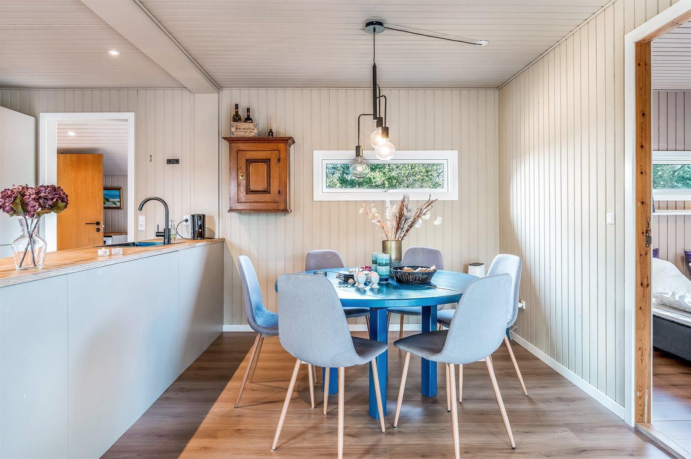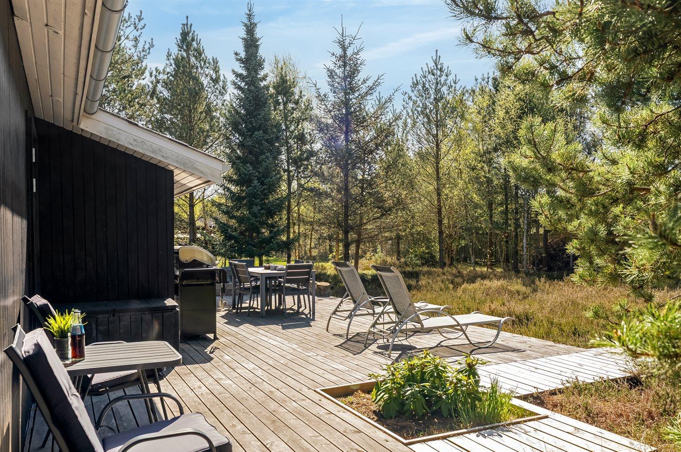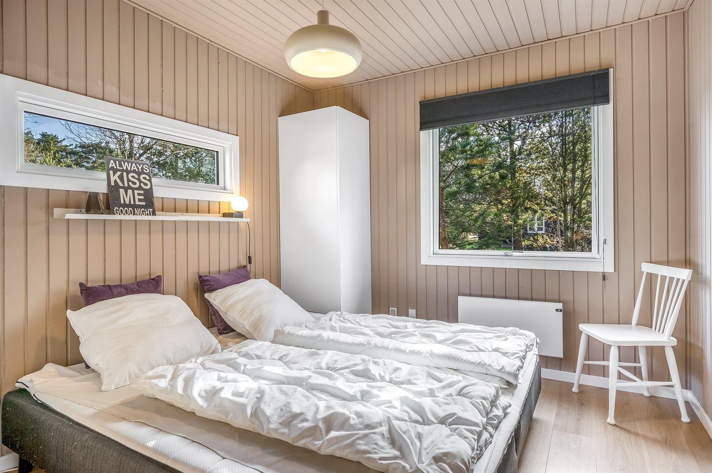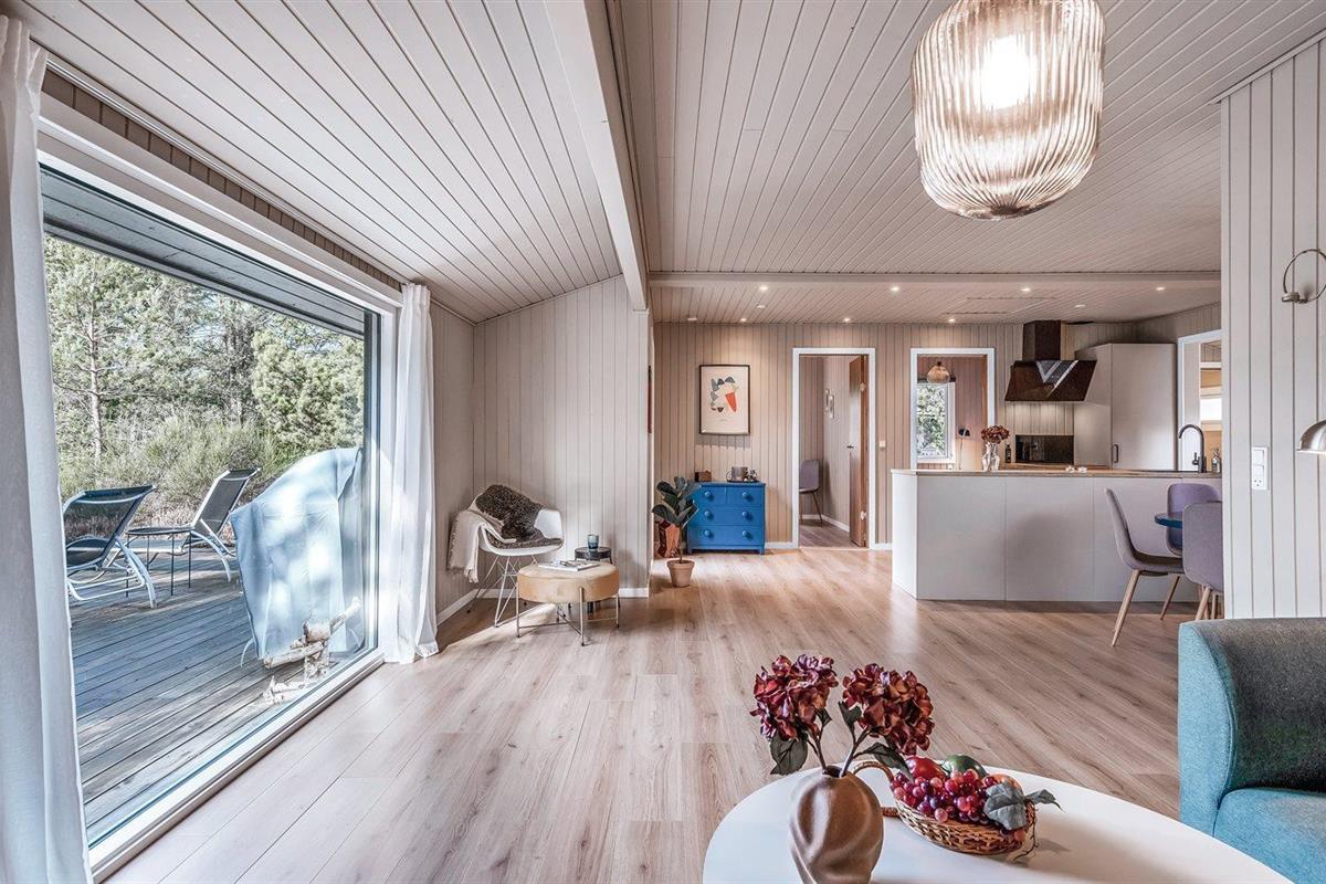 De vakantiewoning is gelegen op een 1120 m² groot natuural grond. Afstand tot de zee 1000 m. Afstand tot de fjord 2400 m. Dichtstbijzijnde winkel 2260 m. Er is een golfbaan op een afstand van 1900 m. Bij de vakantiewoning hoort 60 m² terras. Bij de vakantiewoning hoort terras. Zandbak.Vuurplaats. Barbecue. Parkeerplaats bij het huis.