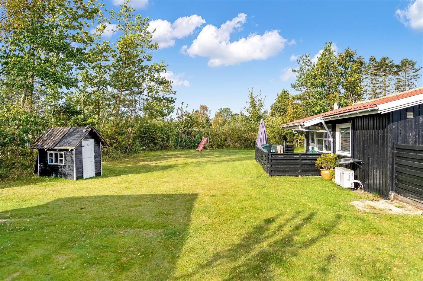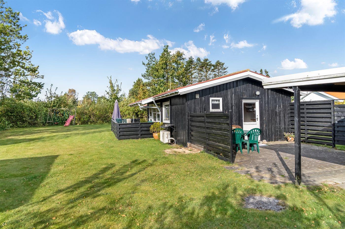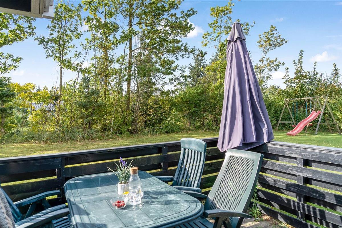 De vakantiewoning is gelegen op een 1140 m² groot natuural grond. Afstand tot de zee 800 m. Dichtstbijzijnde winkel 3000 m. Bij de vakantiewoning hoort 50 m² terras. Daarnaast is er een 20 m² groot overdekt terras. Gereedschapsruimte. Zandbak. Speelhuisje. Speeltoren. Glijbaan. Barbecue. Parkeerplaats bij het huis.