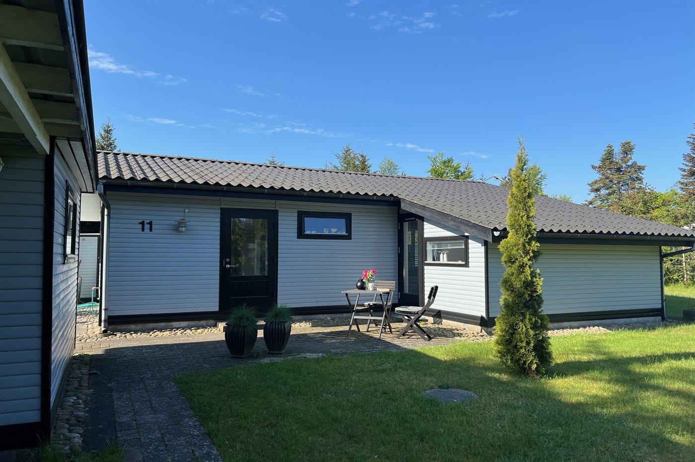 De vakantiewoning is gelegen op een 1224 m² groot aangelegde tuin. Afstand tot de zee 800 m. Afstand tot de fjord 5200 m. Dichtstbijzijnde winkel 2700 m. Er is een golfbaan op een afstand van 4600 m. Daarnaast is er een 9 m² groot overdekt terras. Bij de vakantiewoning hoort terras. Gereedschapsruimte. Parkeerplaats bij het huis.