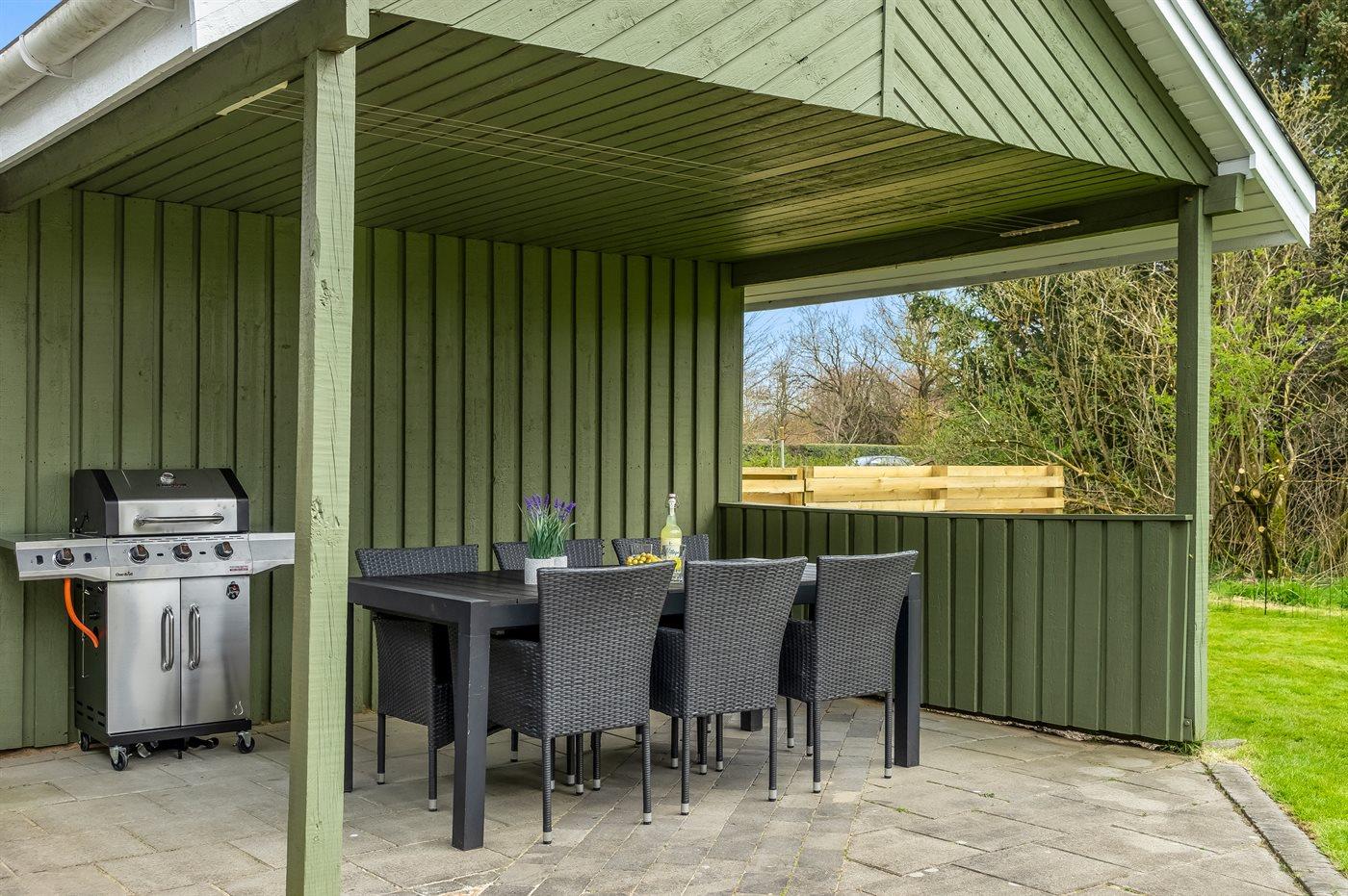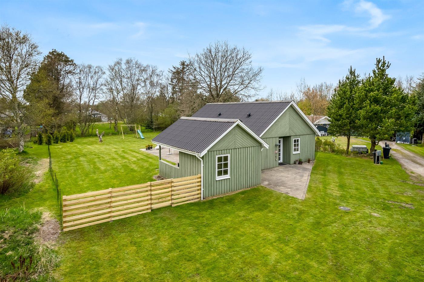 De vakantiewoning is gelegen op een 1102 m² groot aangelegde tuin. De grond is omheind. Afstand tot de zee 750 m. Dichtstbijzijnde winkel 2000 m. Er is een golfbaan op een afstand van 3500 m. Bij de vakantiewoning hoort terras. Daarnaast is er een overdekt terras. Schommel. Barbecue. Parkeerplaats bij het huis.