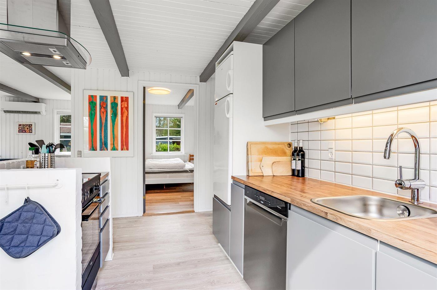 De keuken is uitgerust met koelkast Er zijn 4 keramische kookplaten, heteluchtoven en vaatwasser.