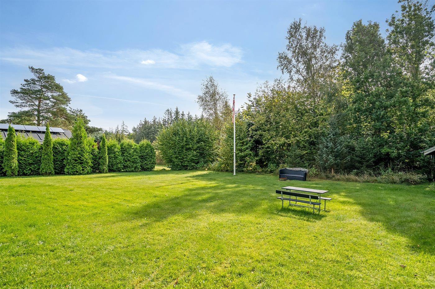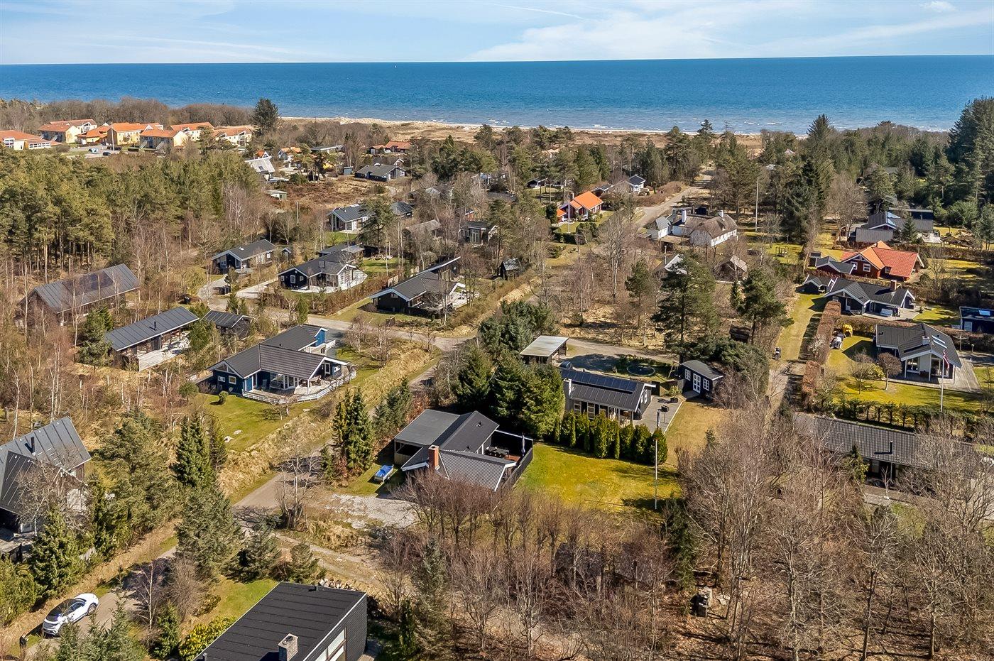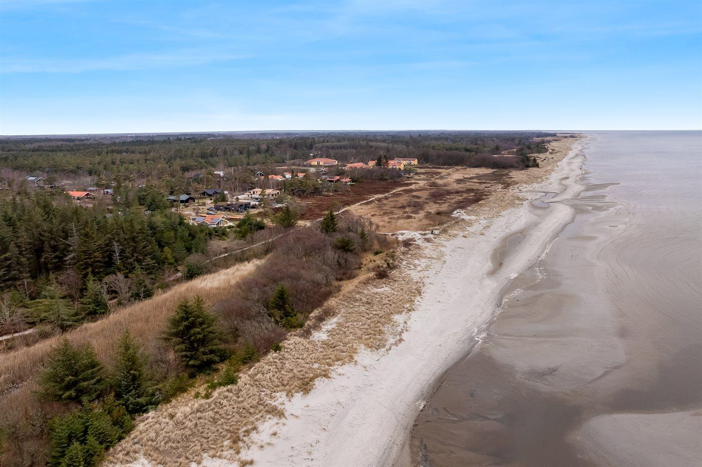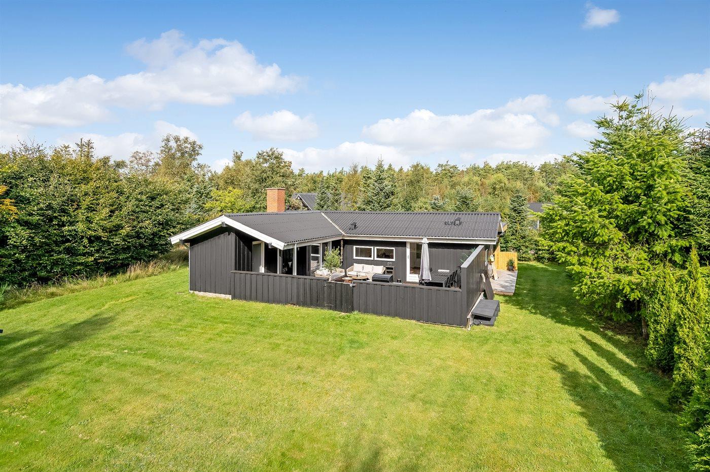 De vakantiewoning is gelegen op een 1050 m² groot aangelegde tuin. Afstand tot de zee 350 m. Afstand tot de fjord 3300 m. Dichtstbijzijnde winkel 3200 m. Er is een golfbaan op een afstand van 2800 m. Bij de vakantiewoning hoort terras. Daarnaast is er een overdekt terras.Vuurplaats. Barbecue. Parkeerplaats bij het huis.