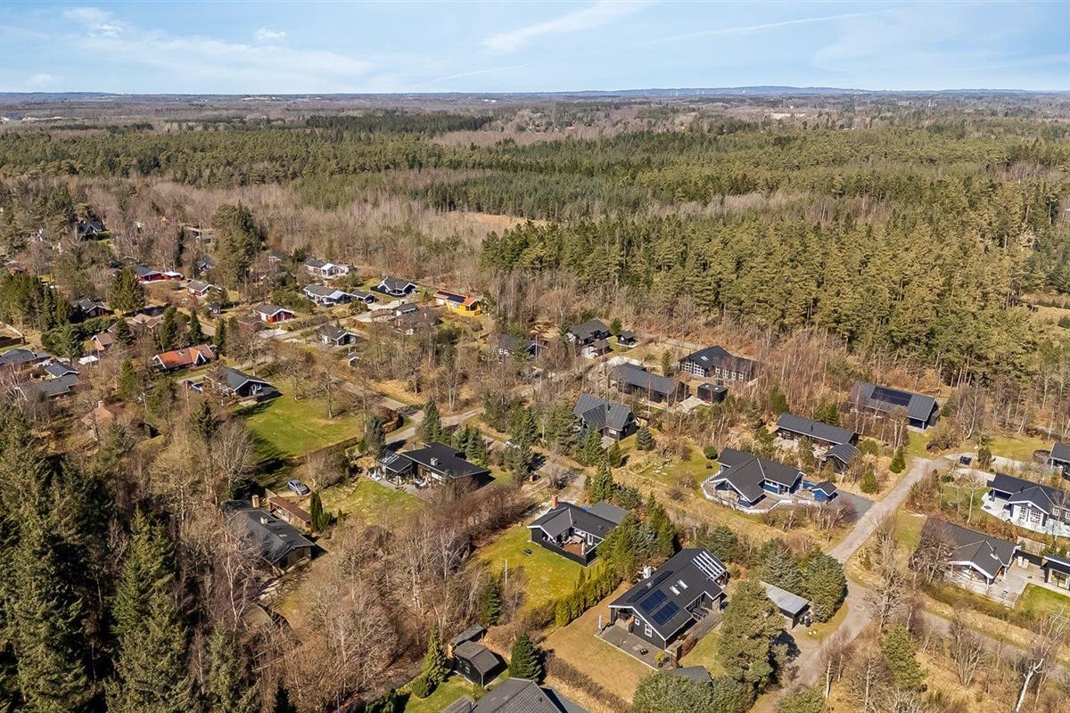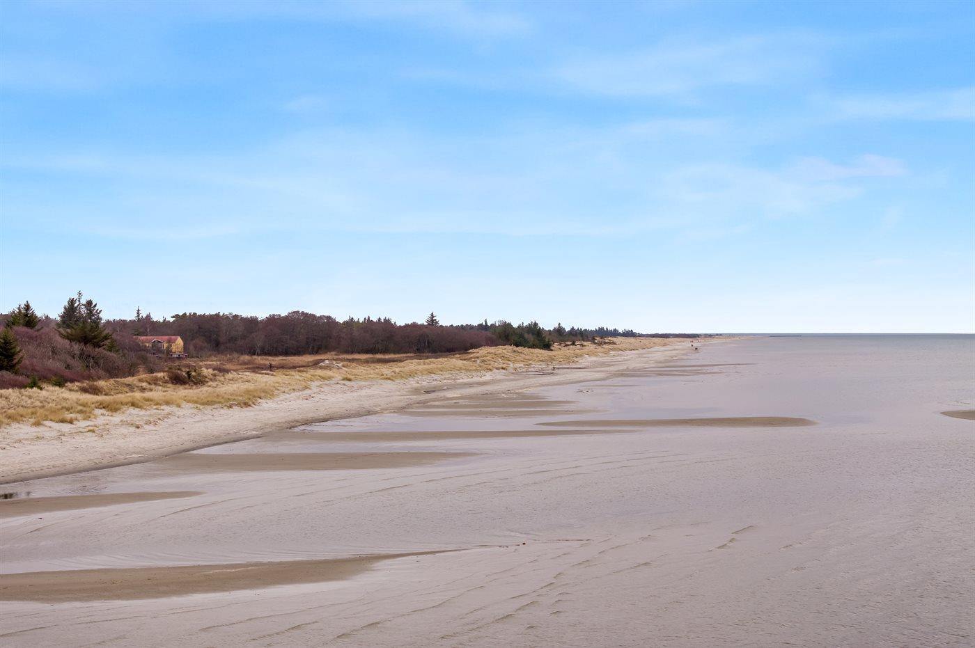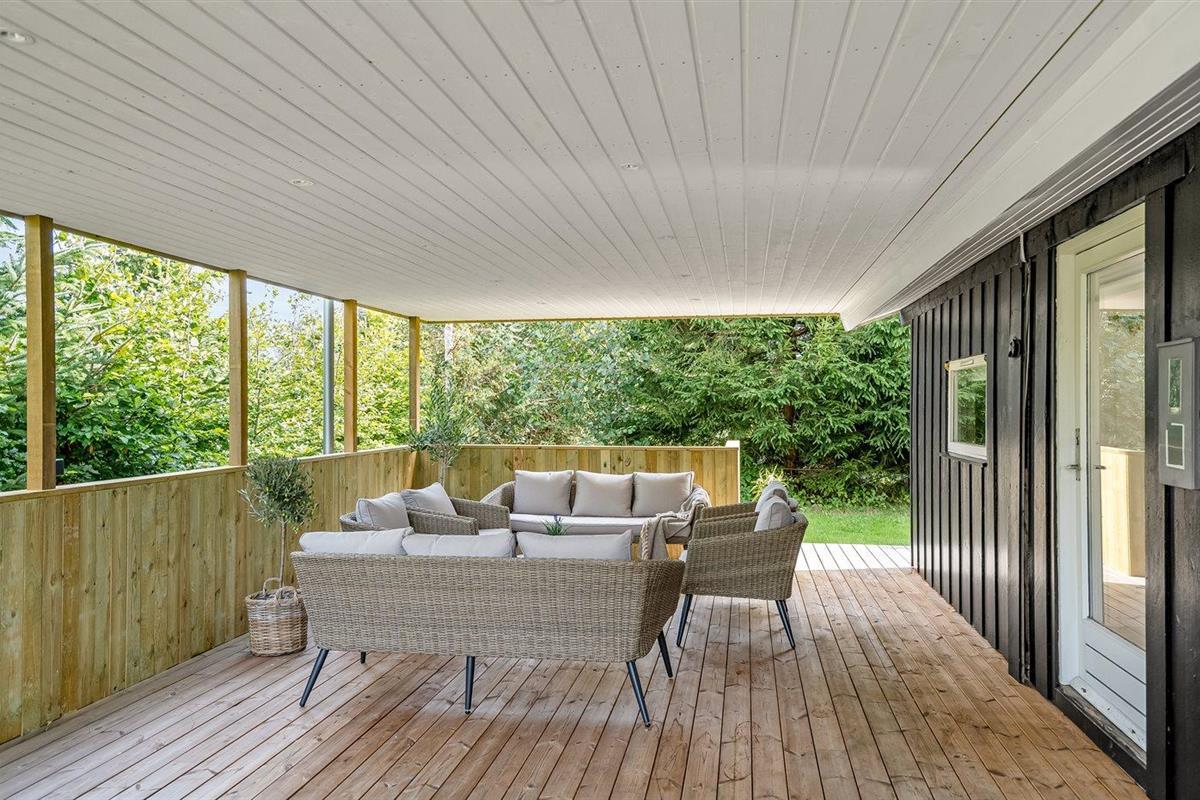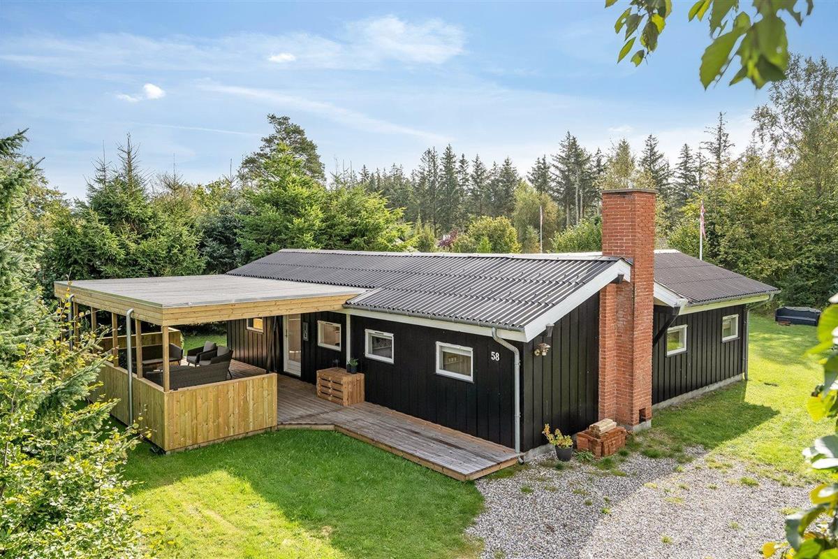 De vakantiewoning is gelegen op een 1050 m² groot aangelegde tuin. Afstand tot de zee 350 m. Afstand tot de fjord 3300 m. Dichtstbijzijnde winkel 3200 m. Er is een golfbaan op een afstand van 2800 m. Bij de vakantiewoning hoort terras. Daarnaast is er een overdekt terras.Vuurplaats. Barbecue. Parkeerplaats bij het huis.