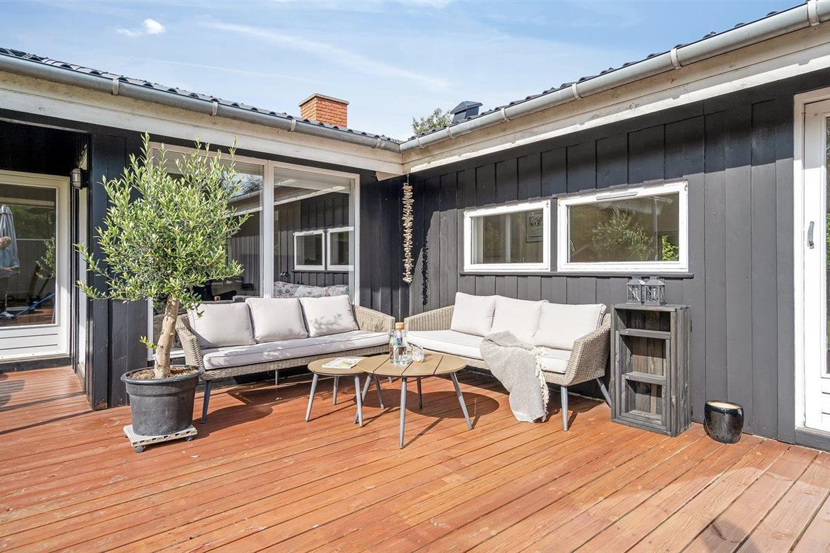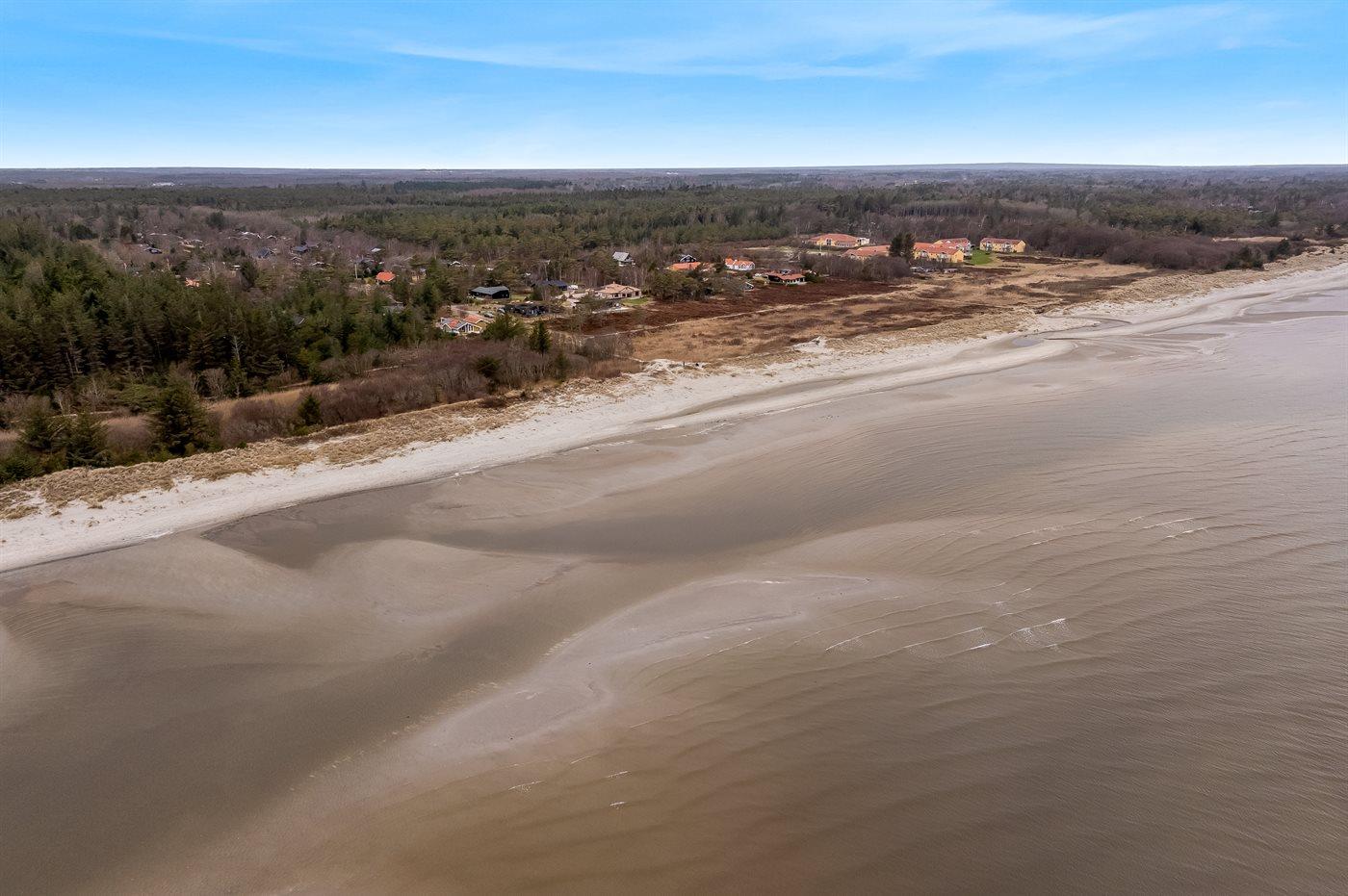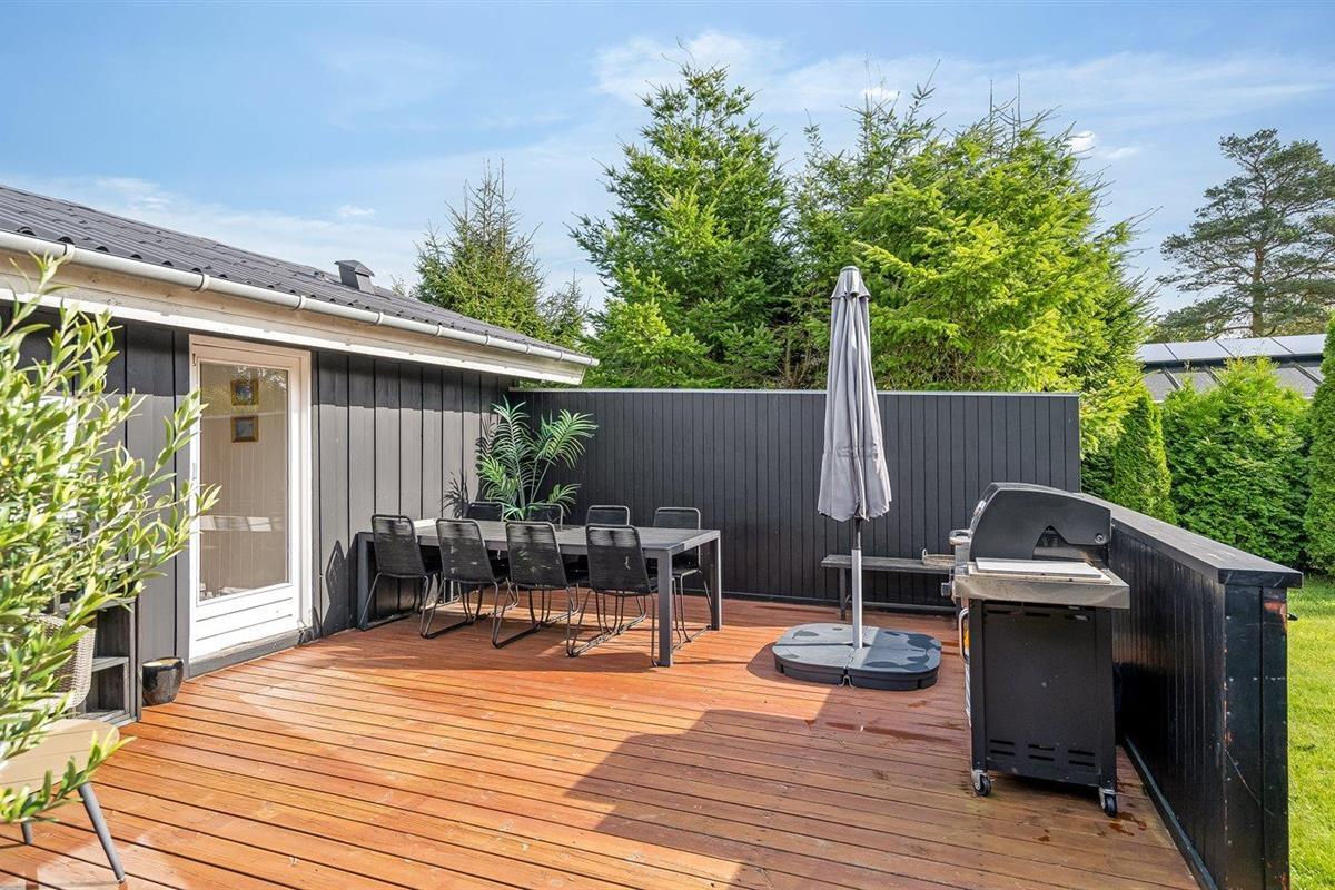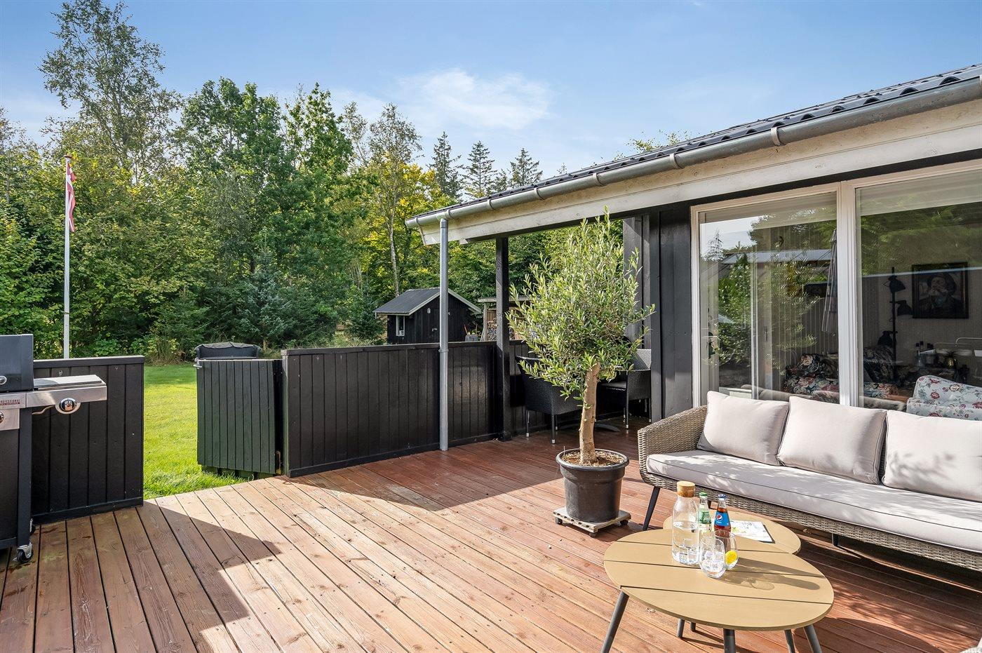 De vakantiewoning is gelegen op een 1050 m² groot aangelegde tuin. Afstand tot de zee 350 m. Afstand tot de fjord 3300 m. Dichtstbijzijnde winkel 3200 m. Er is een golfbaan op een afstand van 2800 m. Bij de vakantiewoning hoort terras. Daarnaast is er een overdekt terras.Vuurplaats. Barbecue. Parkeerplaats bij het huis.