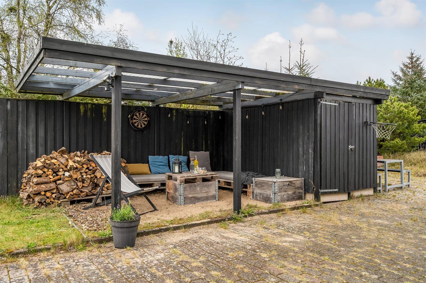 De vakantiewoning is gelegen op een 1051 m² groot aangelegde tuin. Afstand tot de zee 400 m. Afstand tot meer 5400 m. Dichtstbijzijnde winkel 5300 m. Er is een golfbaan op een afstand van 4100 m. Bij de vakantiewoning hoort terras. Daarnaast is er een overdekt terras. Schommel. Barbecue. Parkeerplaats bij het huis.
