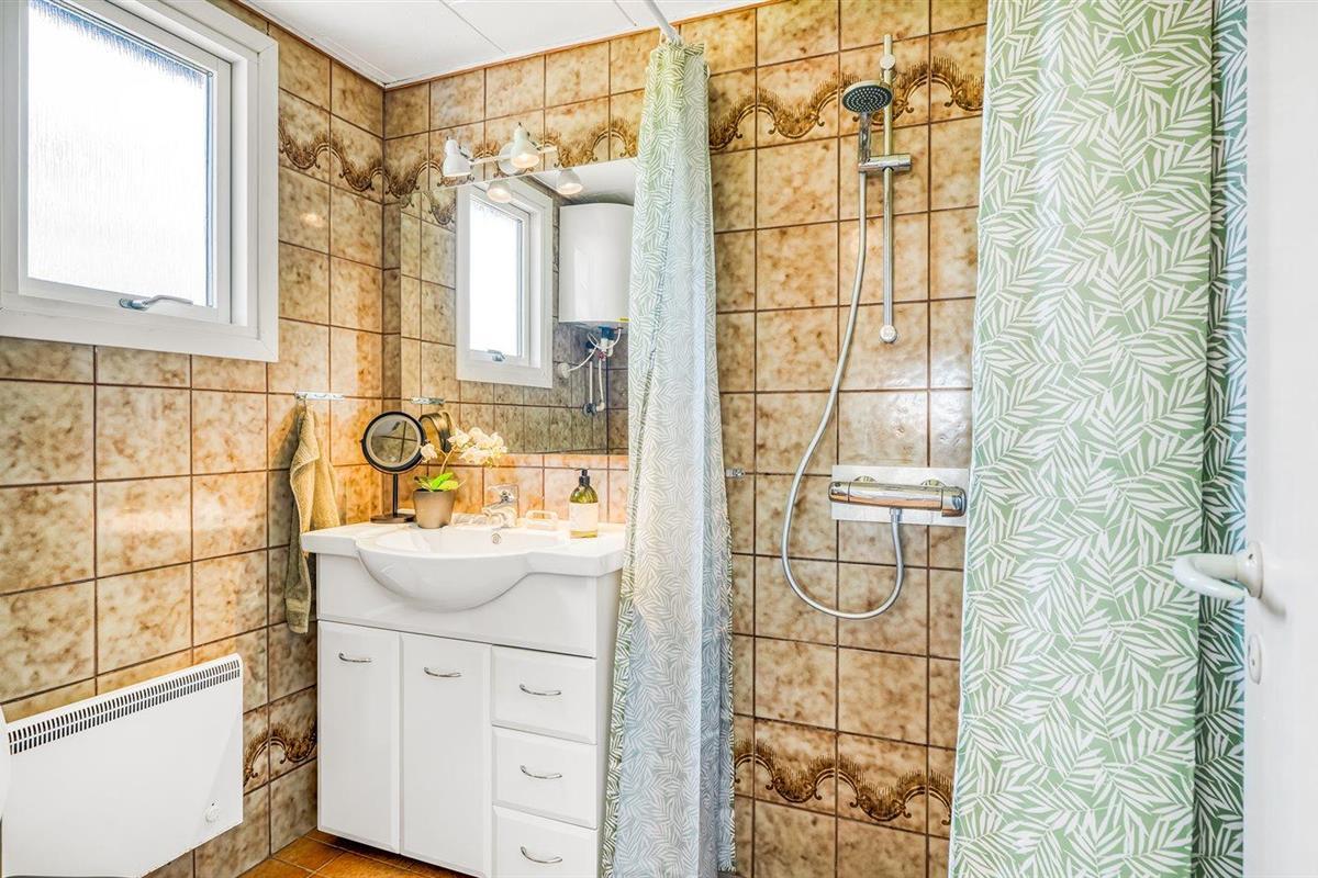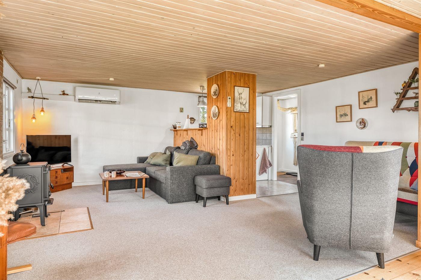 De vakantiewoning is gelegen op een 1134 m² groot natuural grond. Afstand tot de zee 730 m. Afstand tot de fjord 5200 m. Dichtstbijzijnde winkel 4800 m. Er is een golfbaan op een afstand van 4700 m. Bij de vakantiewoning hoort terras. Daarnaast is er een overdekt terras. Buitendouche. Barbecue.