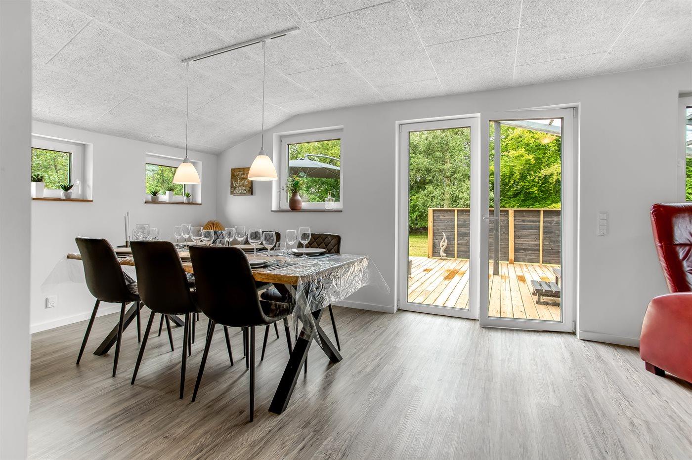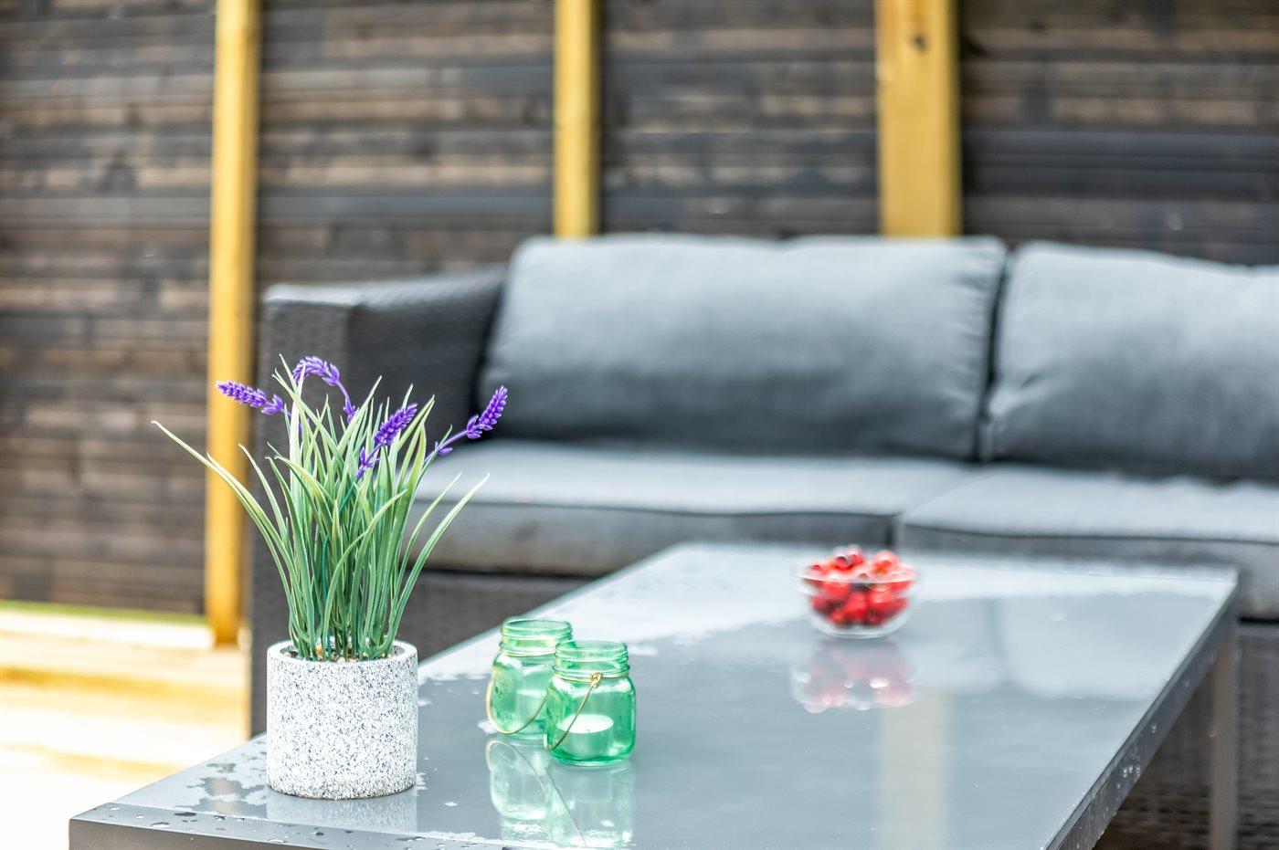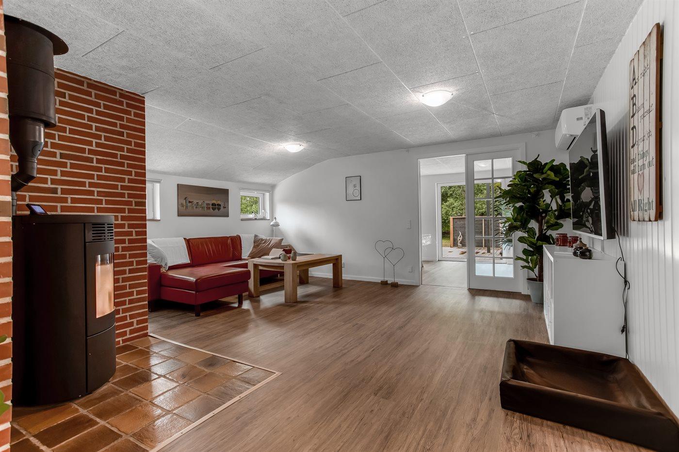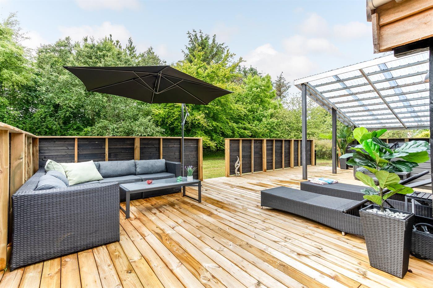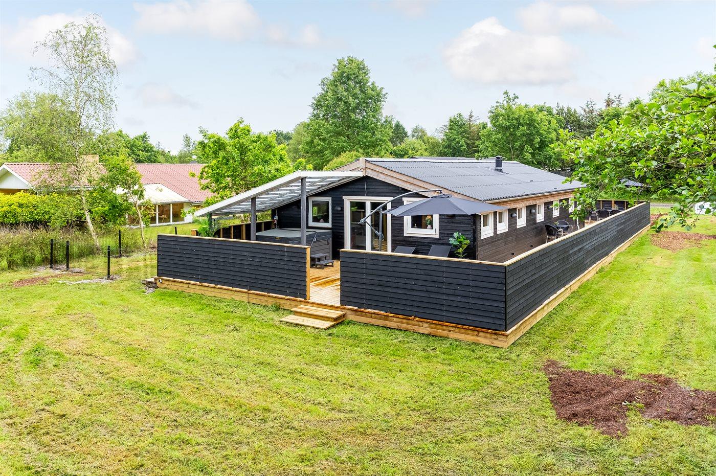 De vakantiewoning is gelegen op een 1250 m² groot aangelegde tuin. Afstand tot de zee 1140 m. Afstand tot de fjord 4800 m. Dichtstbijzijnde winkel 3030 m. Er is een golfbaan op een afstand van 4300 m. Bij de vakantiewoning hoort terras. Daarnaast is er een overdekt terras. Barbecue. Carport ter beschikking. Parkeerplaats bij het huis.