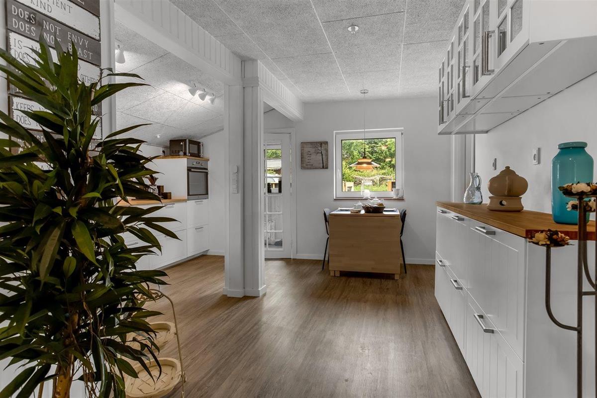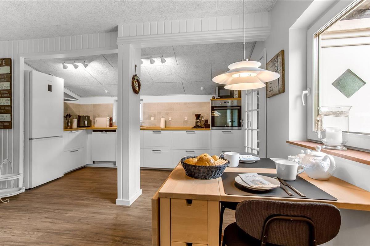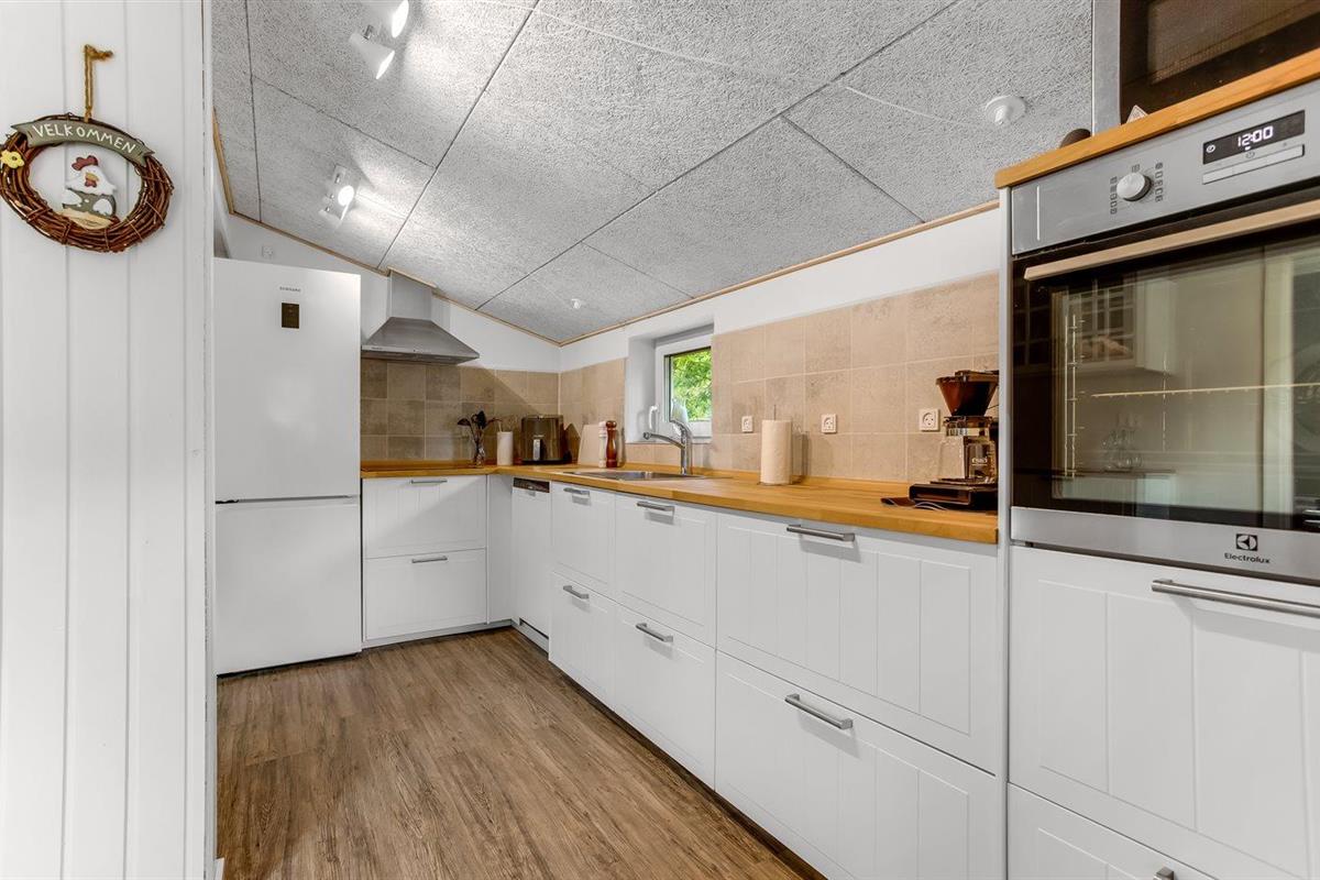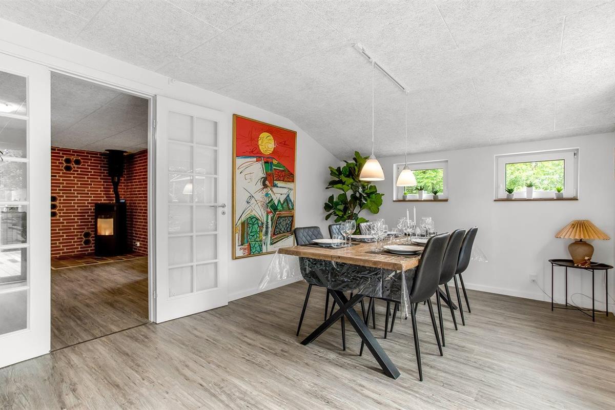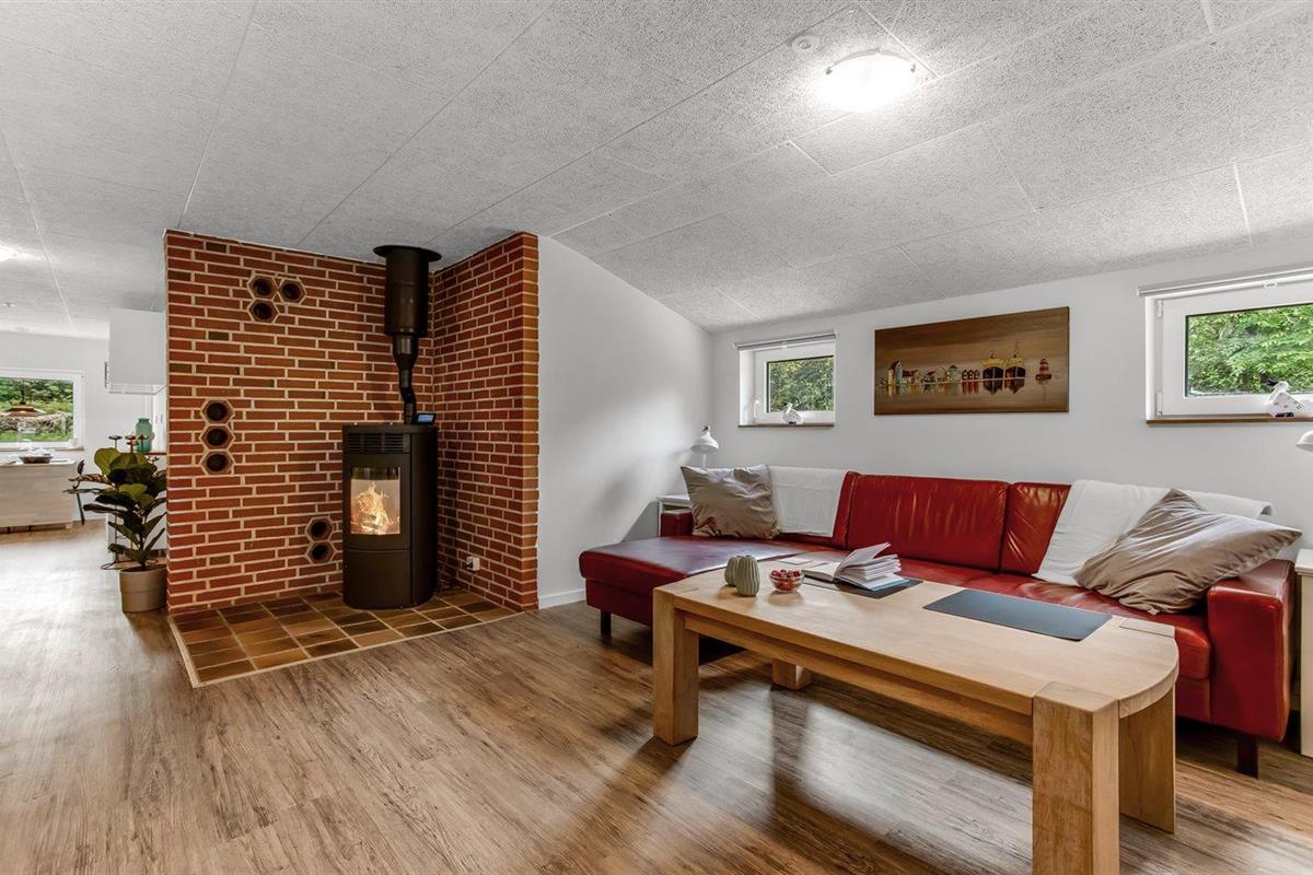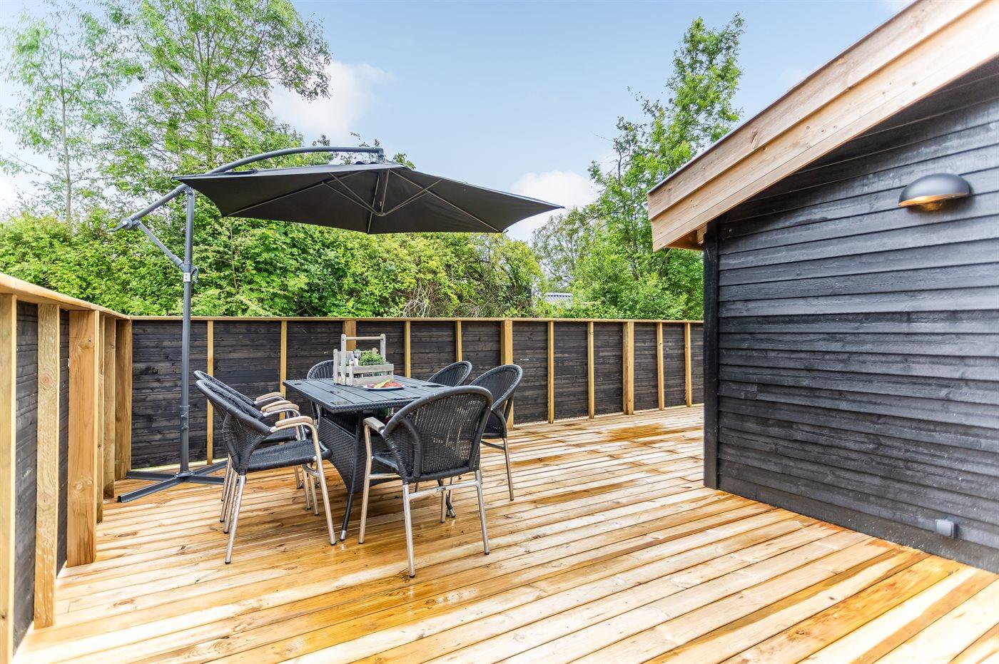 De vakantiewoning is gelegen op een 1250 m² groot aangelegde tuin. Afstand tot de zee 1140 m. Afstand tot de fjord 4800 m. Dichtstbijzijnde winkel 3030 m. Er is een golfbaan op een afstand van 4300 m. Bij de vakantiewoning hoort terras. Daarnaast is er een overdekt terras. Barbecue. Carport ter beschikking. Parkeerplaats bij het huis.