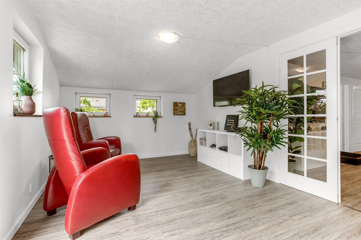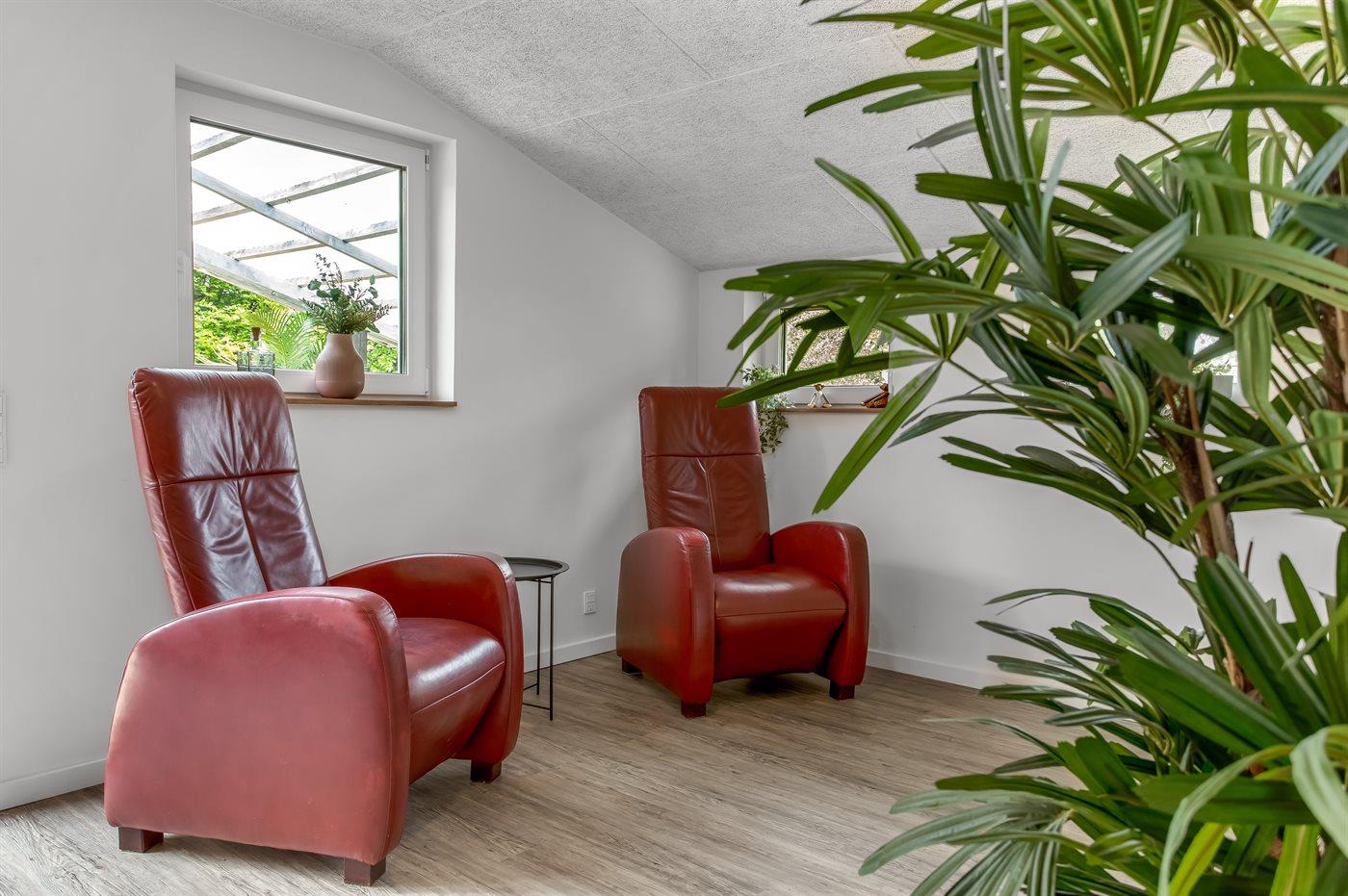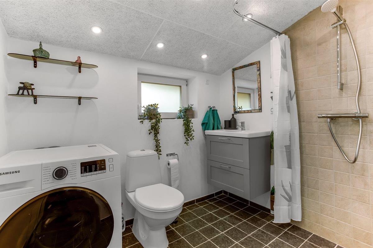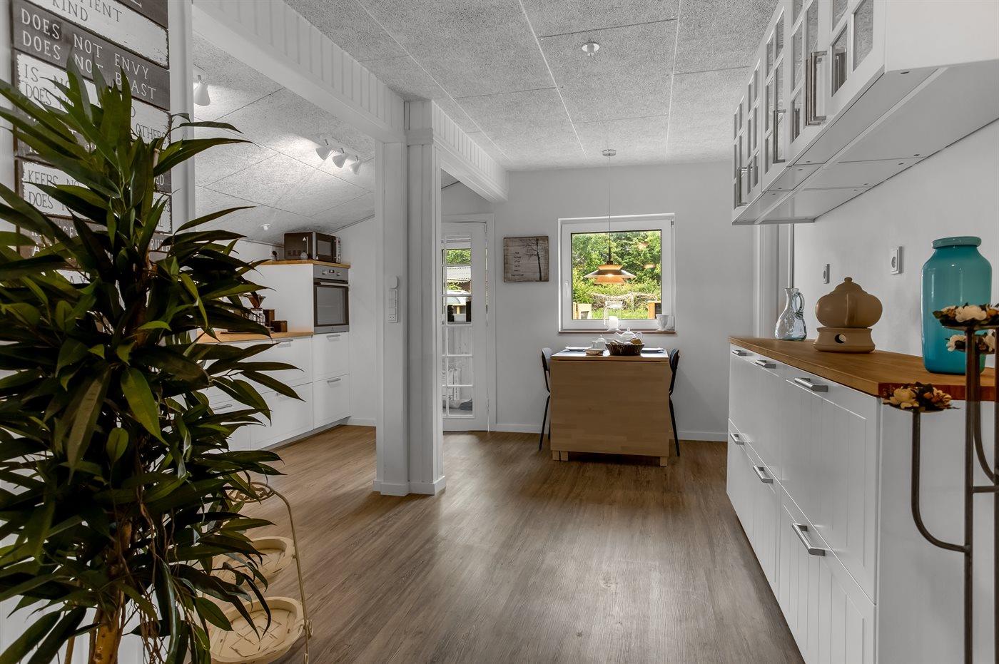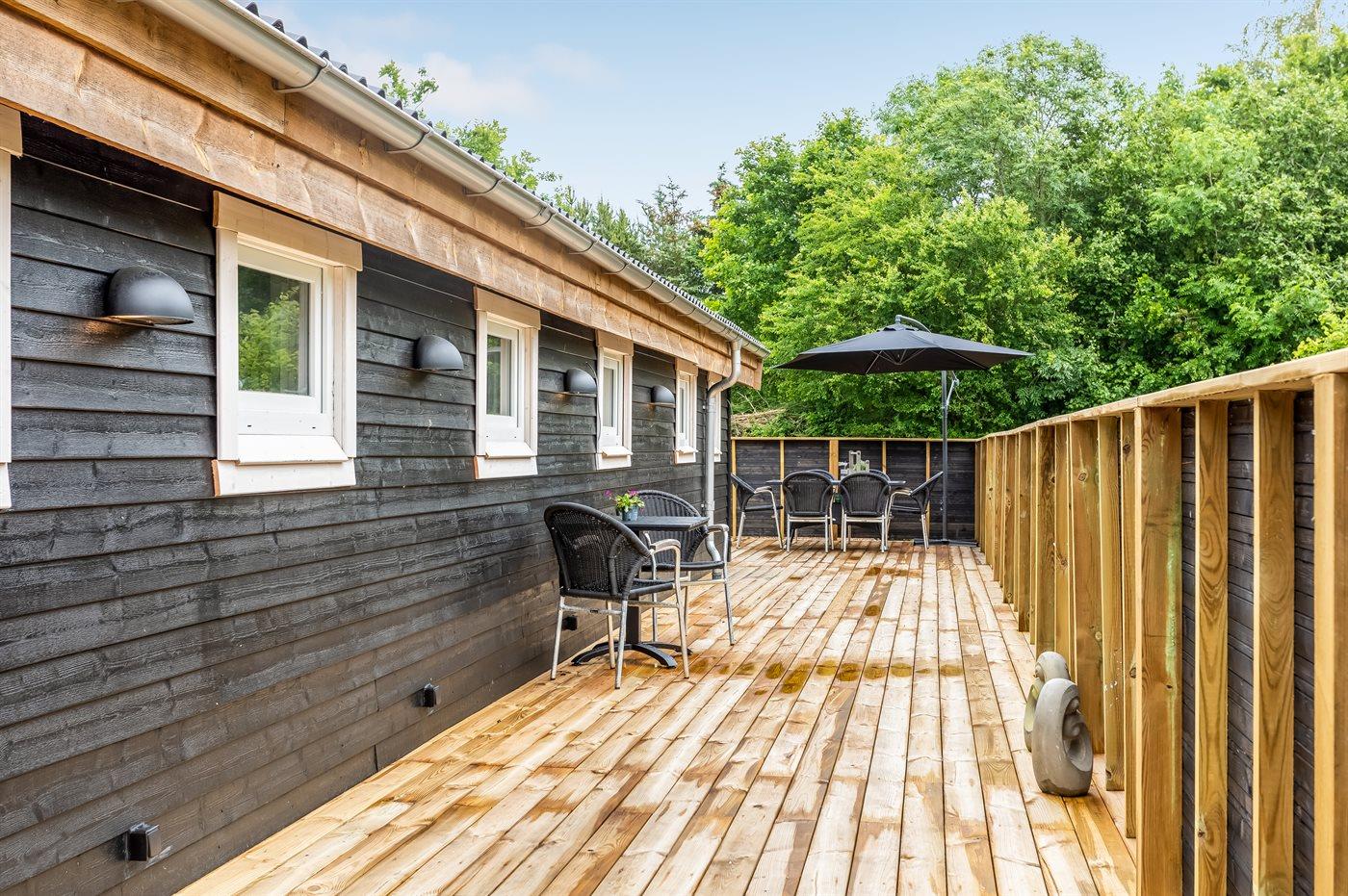 De vakantiewoning is gelegen op een 1250 m² groot aangelegde tuin. Afstand tot de zee 1140 m. Afstand tot de fjord 4800 m. Dichtstbijzijnde winkel 3030 m. Er is een golfbaan op een afstand van 4300 m. Bij de vakantiewoning hoort terras. Daarnaast is er een overdekt terras. Barbecue. Carport ter beschikking. Parkeerplaats bij het huis.