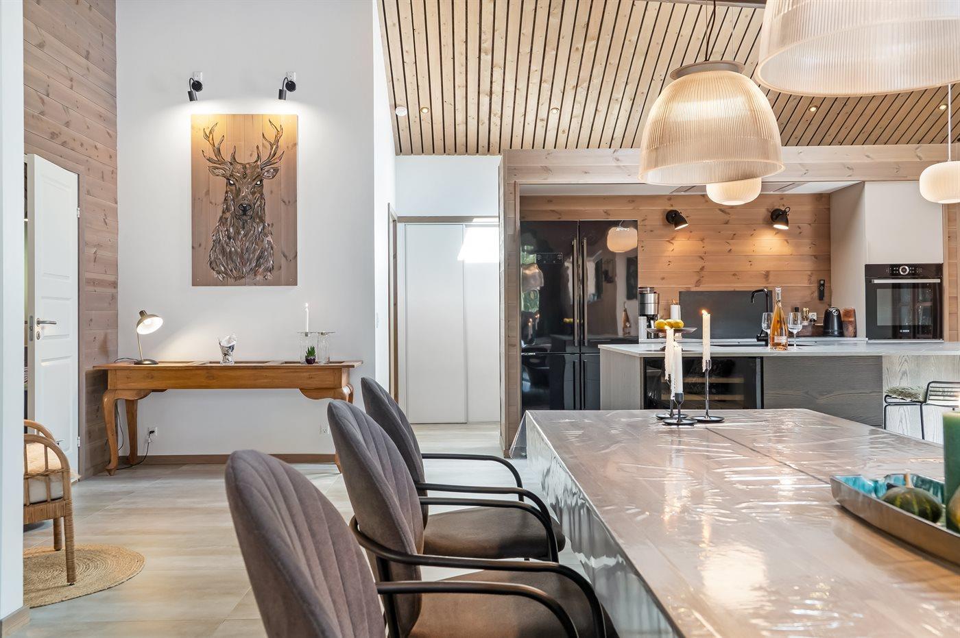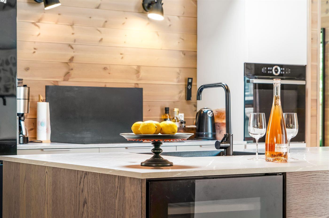 De keuken is uitgerust met koelkast Er is 4 inductiekookplaten, heteluchtoven en vaatwasser. Daarnaast is er een wijnkoelkast.