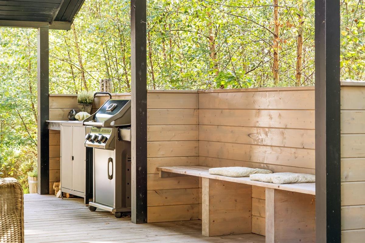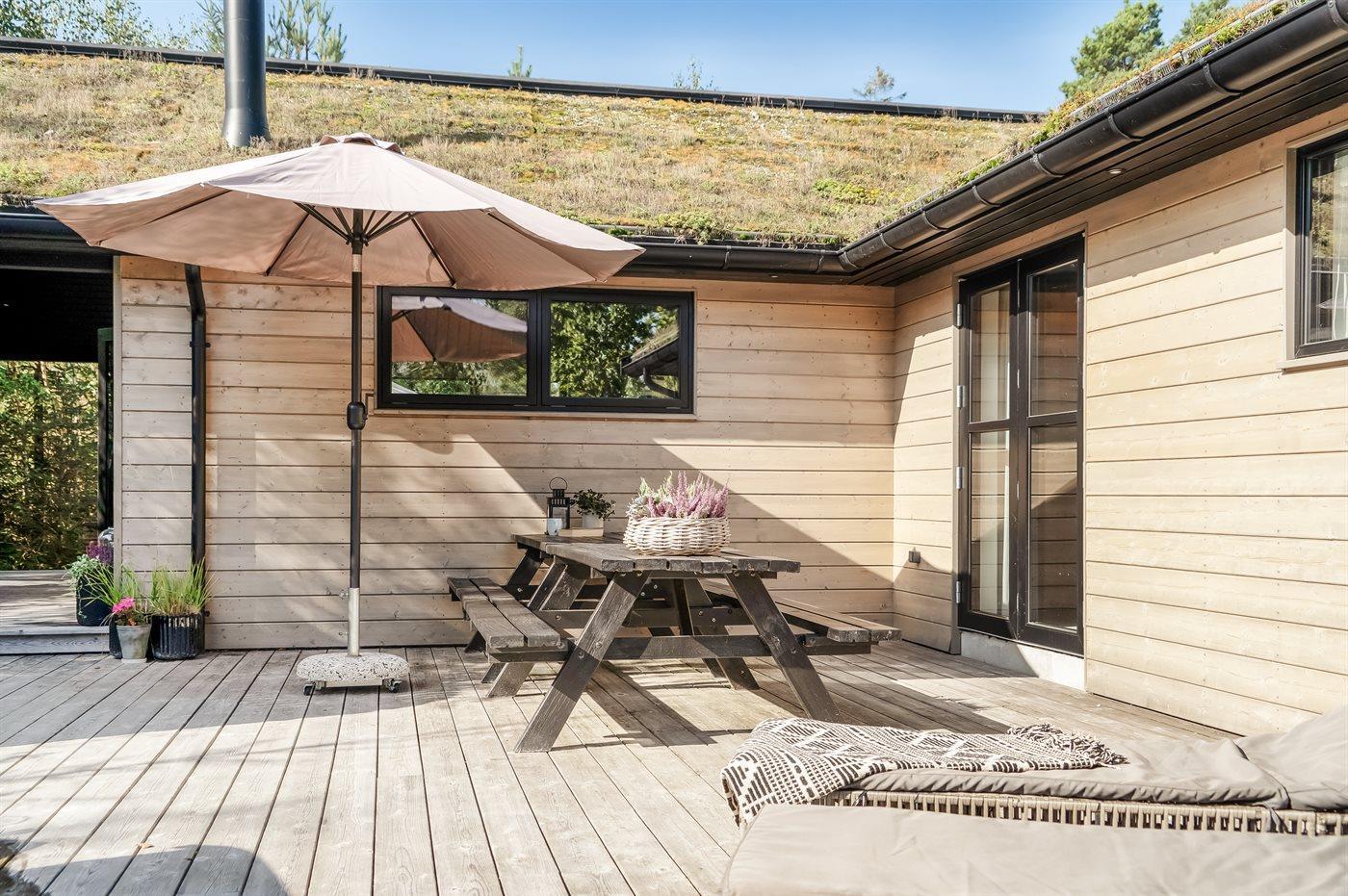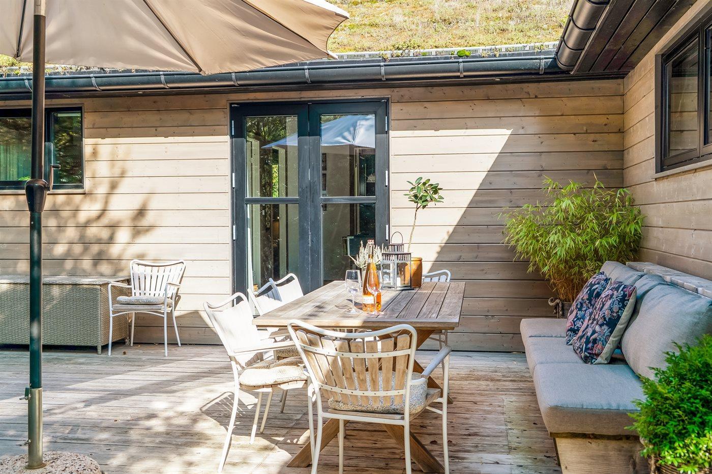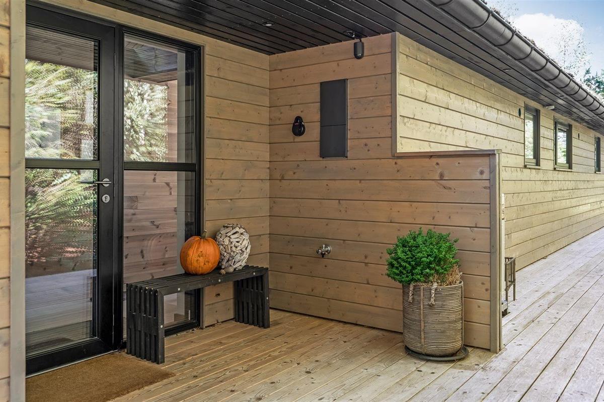 De vakantiewoning is gelegen op een 1250 m² groot natuural grond. Afstand tot de zee 380 m. Afstand tot de fjord 2050 m. Dichtstbijzijnde winkel 2170 m. Er is een golfbaan op een afstand van 1300 m. Bij de vakantiewoning hoort terras. Daarnaast is er een overdekt terras. Buitendouche. U kunt buiten een maaltijd bereiden in de buitenkeuken. Barbecue. Het huis heeft een stopcontact voor het opladen van een elektrische auto. Oplaadstekker type 2. Met 11 kW-laadvermogen. Parkeerplaats bij het huis.