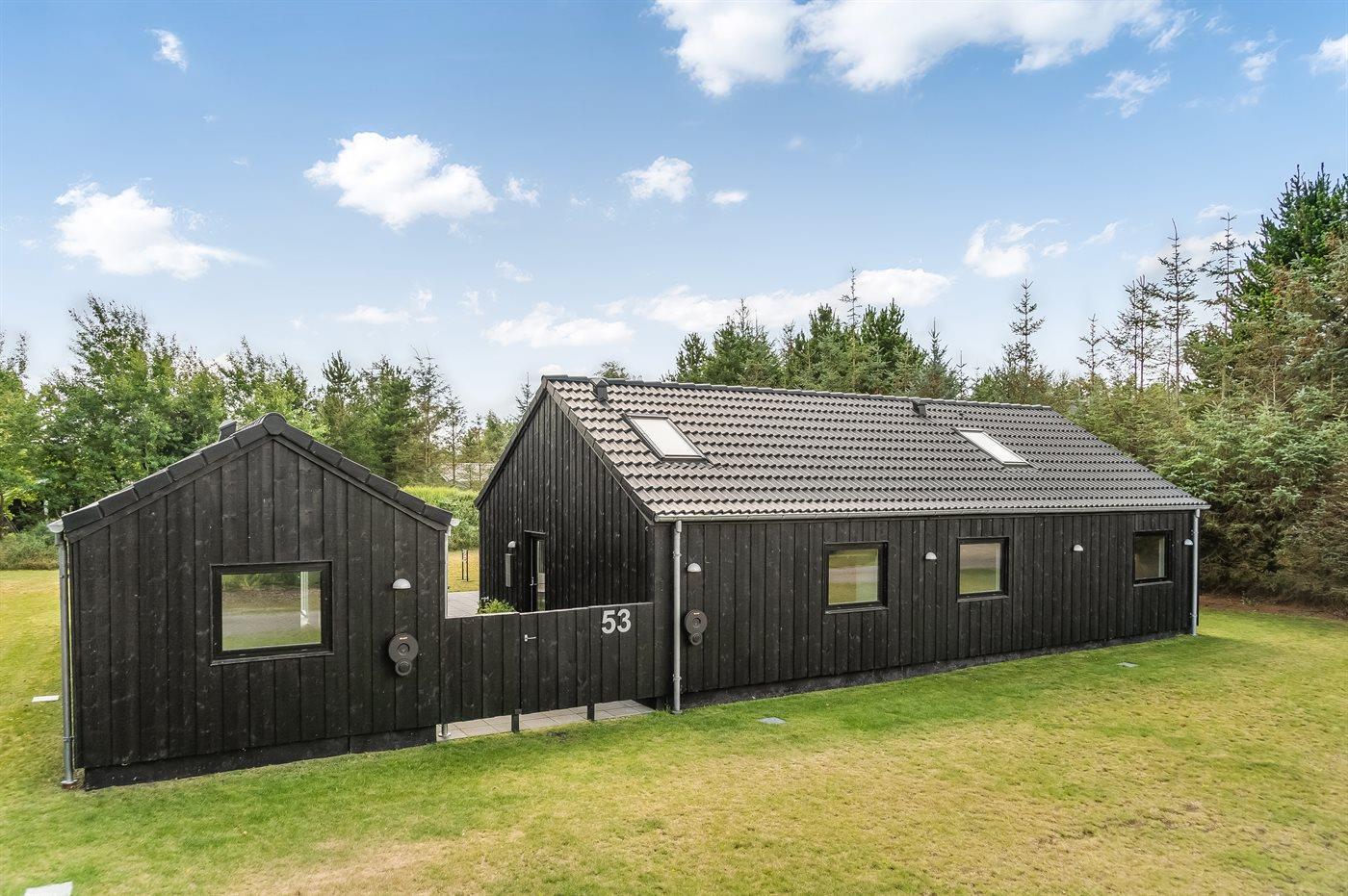 De vakantiewoning is gelegen op een 1164 m² groot aangelegde tuin. Afstand tot de zee 1000 m. Afstand tot de fjord 5400 m. Dichtstbijzijnde winkel 4970 m. Er is een golfbaan op een afstand van 4900 m. Bij de vakantiewoning hoort terras. Barbecue. Het huis heeft een stopcontact voor het opladen van een elektrische auto. Met 11 kW-laadvermogen. Parkeerplaats bij het huis.