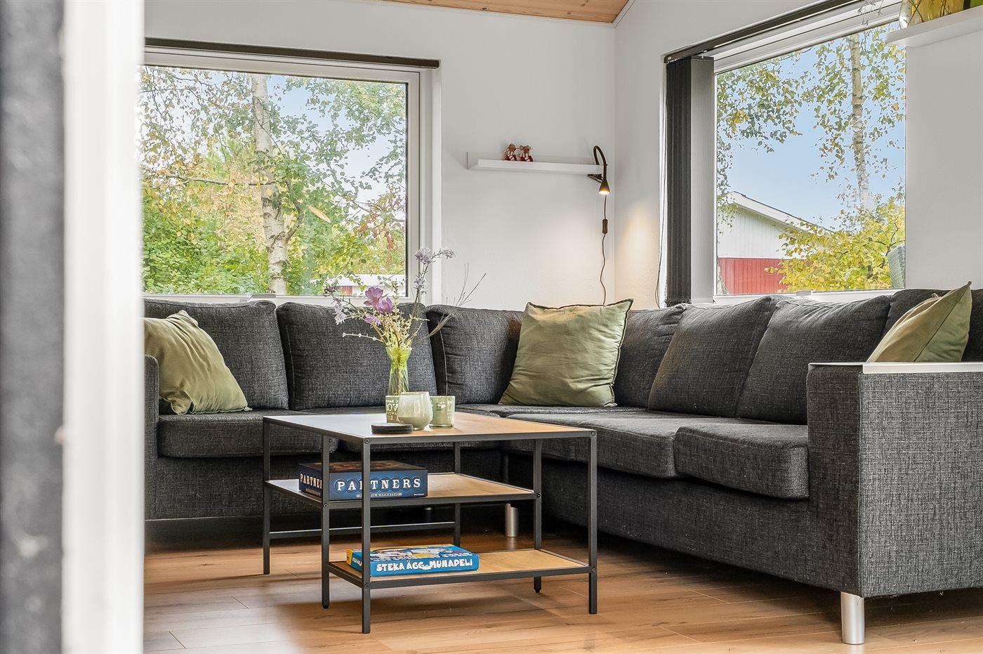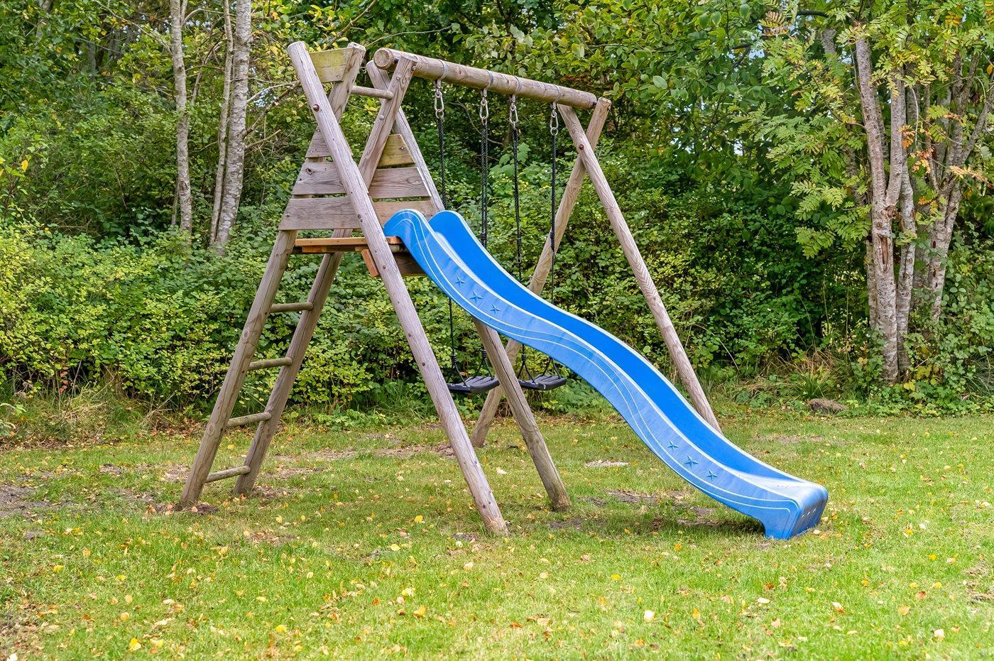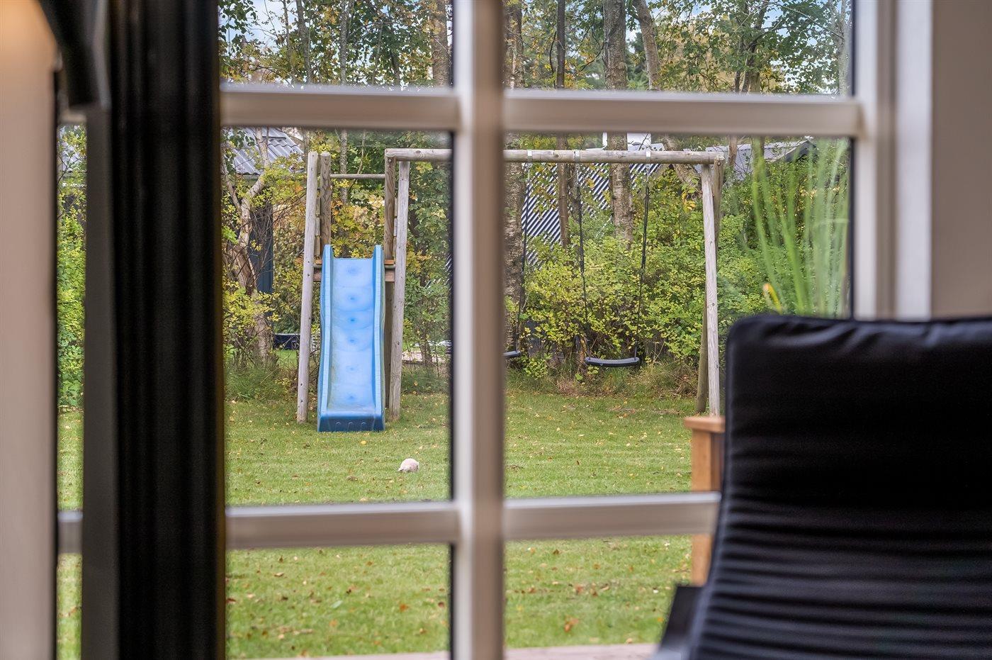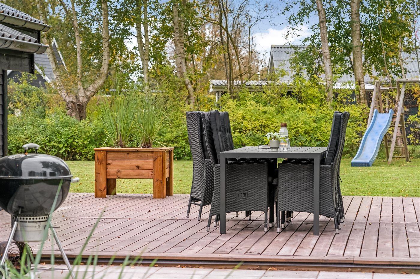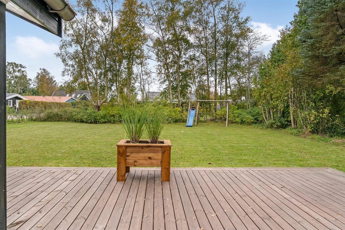 De vakantiewoning is gelegen op een 1110 m² groot aangelegde tuin. Afstand tot de zee 870 m. Afstand tot de fjord 5800 m. Dichtstbijzijnde winkel 2100 m. Er is een golfbaan op een afstand van 5280 m. Bij de vakantiewoning hoort terras. Daarnaast is er een overdekt terras. Schommel. Zandbak. Glijbaan. Er zijn twee barbecues beschikbaar (een met gas en een met kolen). Parkeerplaats bij het huis.