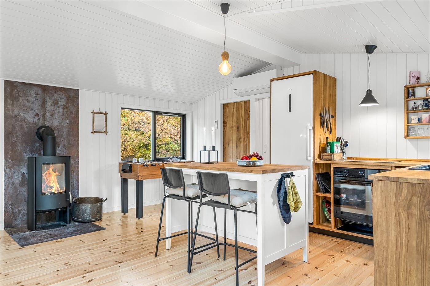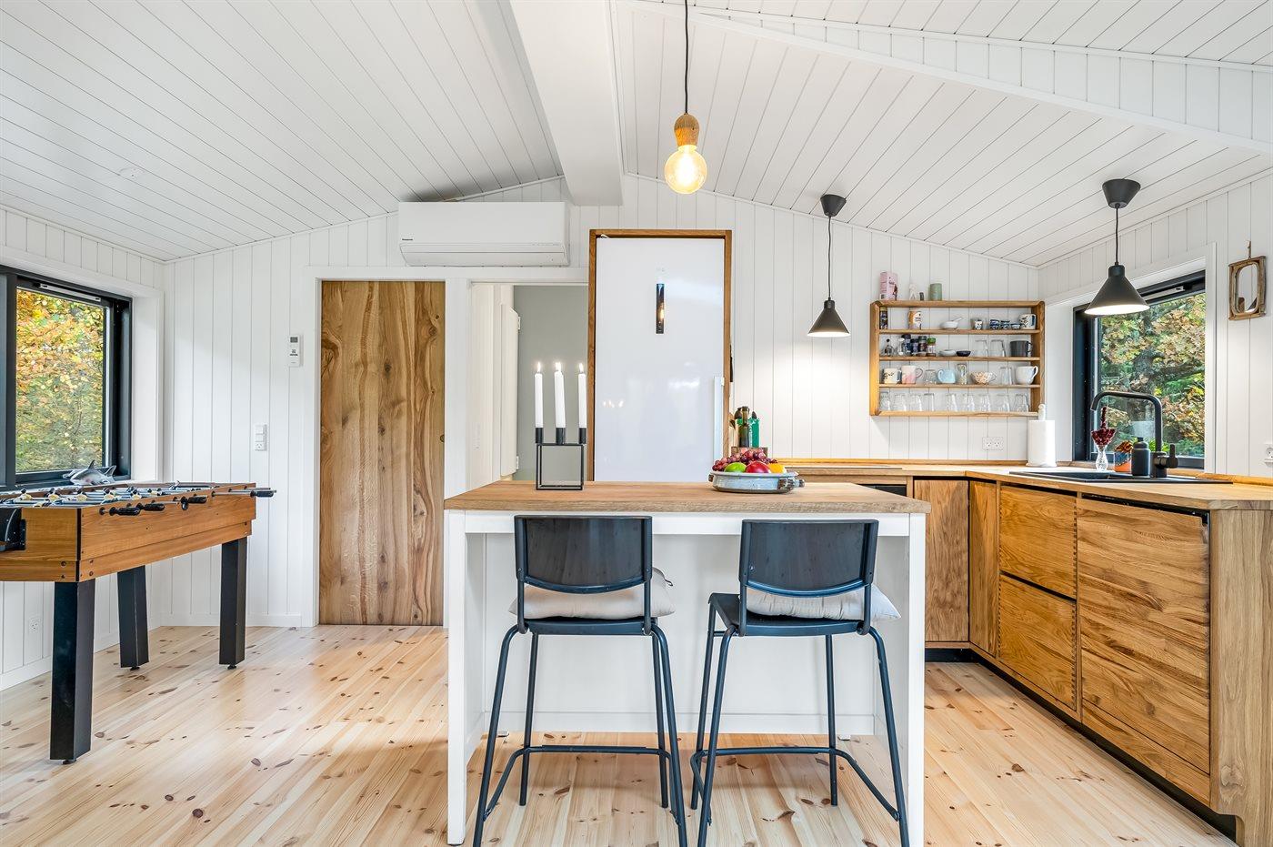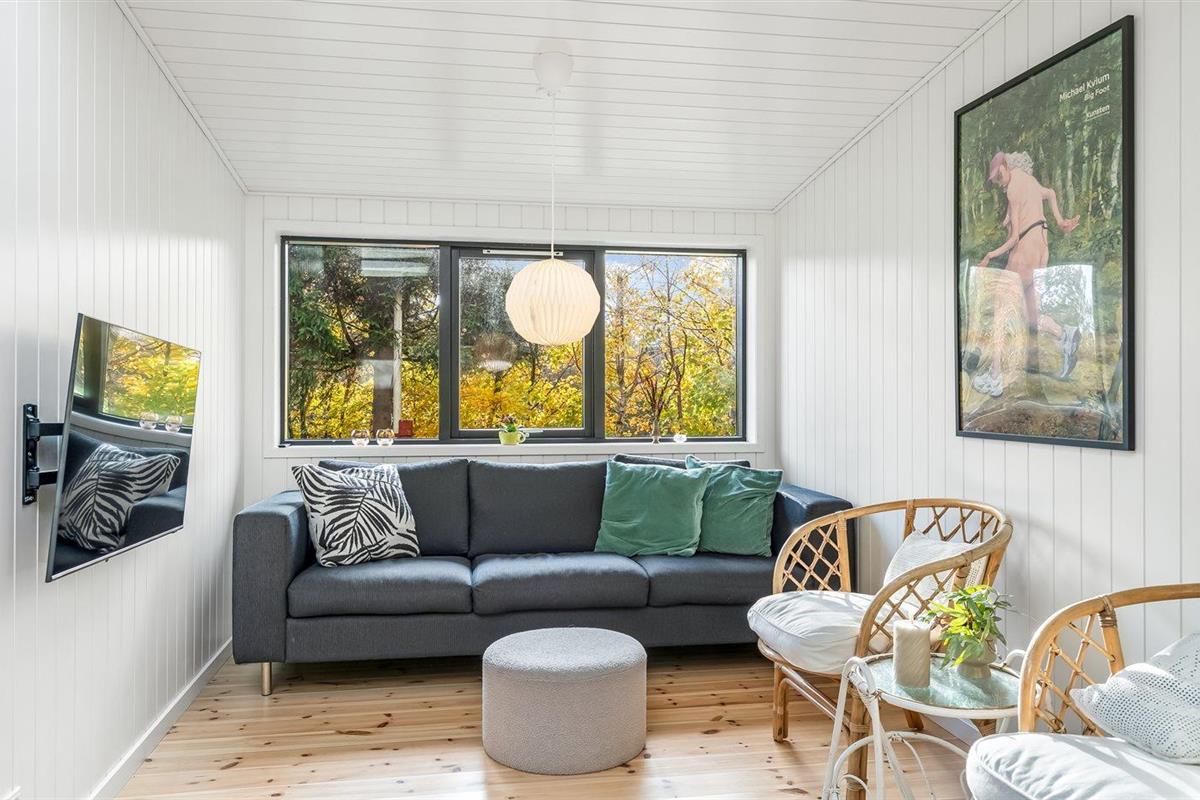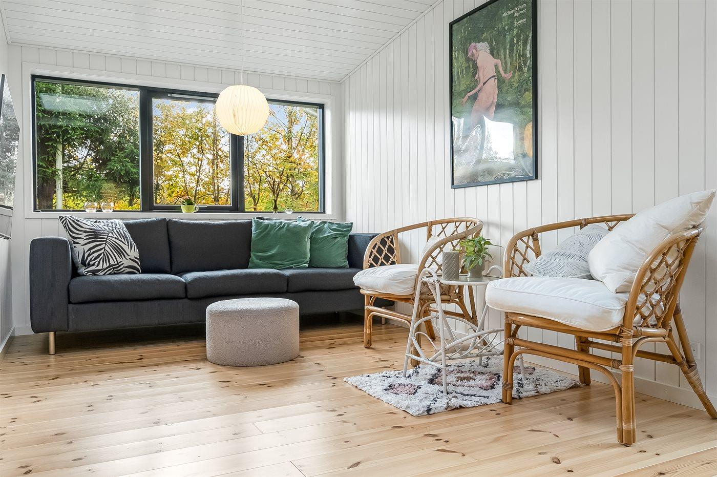 De vakantiewoning is gelegen op een 1294 m² groot aangelegde tuin. Afstand tot de zee 300 m. Afstand tot de fjord 4500 m. Dichtstbijzijnde winkel 3200 m. Er is een golfbaan op een afstand van 3700 m. Bij de vakantiewoning hoort terras. Daarnaast is er een overdekt terras. Shelter. U kunt buiten een maaltijd bereiden in de buitenkeuken. Barbecue. Parkeerplaats bij het huis.