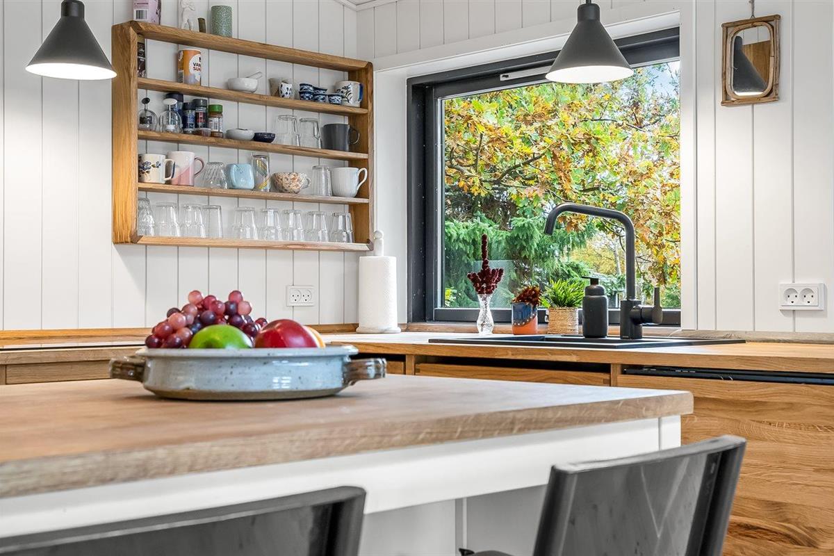 De keuken is uitgerust met koelkast Er is 4 inductiekookplaten, heteluchtoven en vaatwasser.