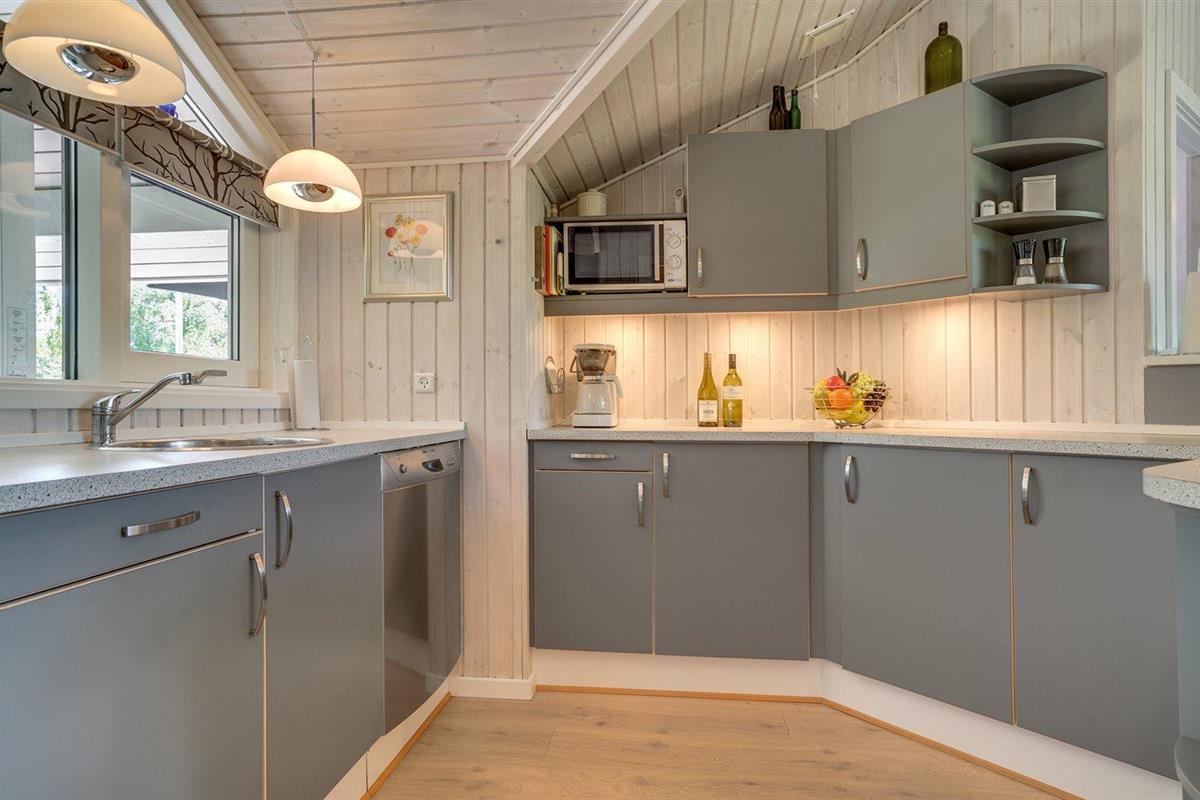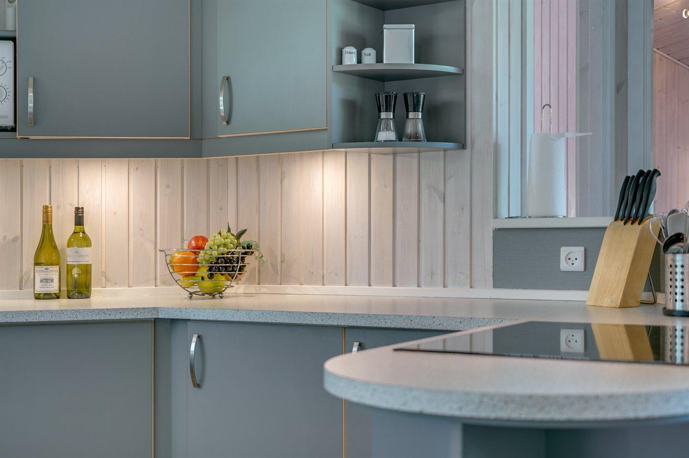 De keuken is uitgerust met koelkast Er is 4 inductiekookplaten, heteluchtoven, magnetron en vaatwasser.