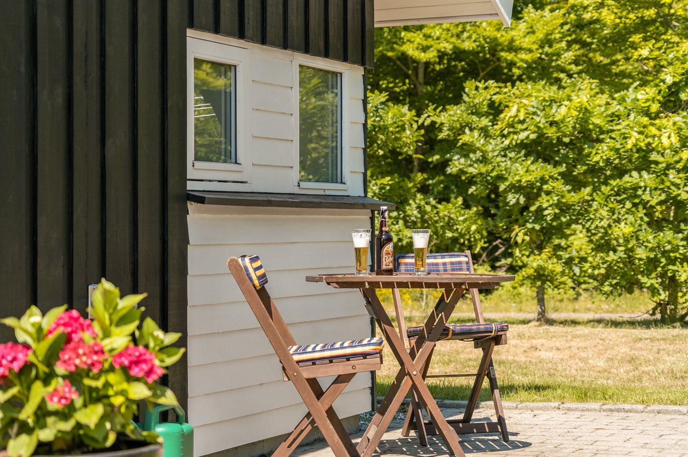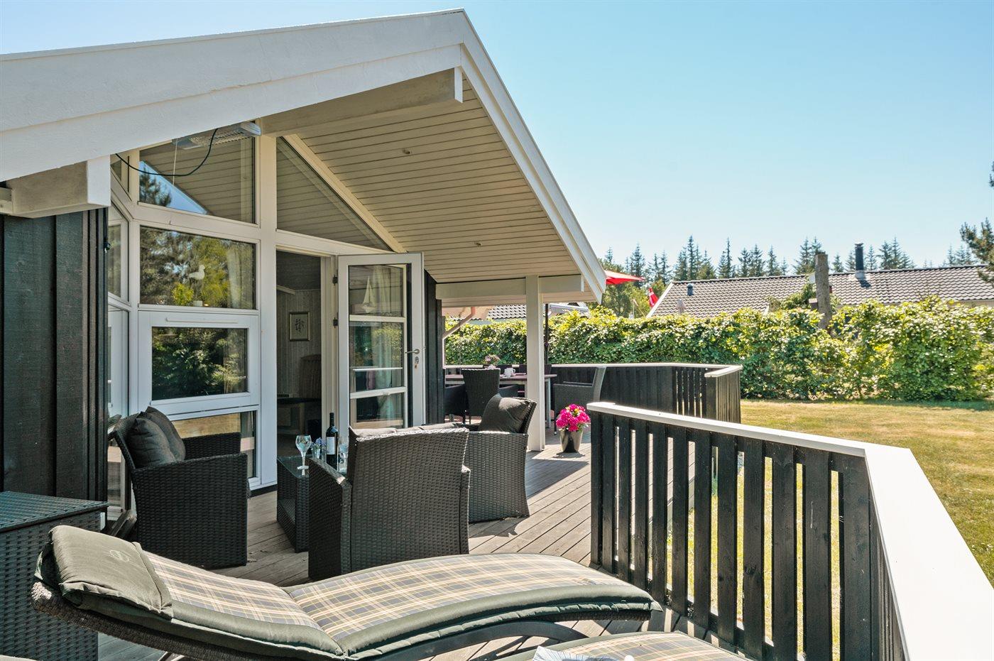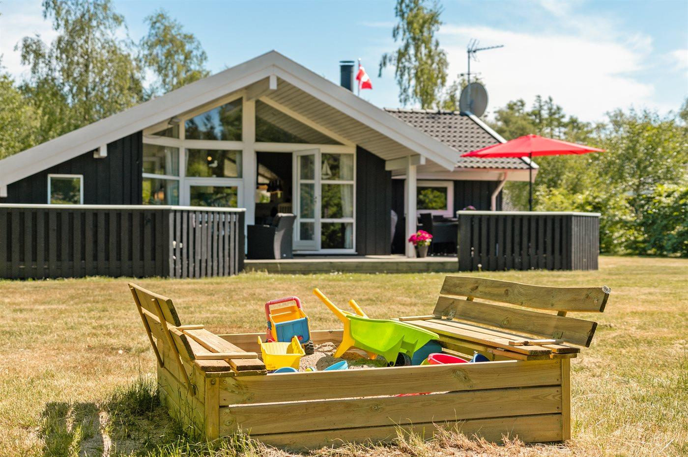De vakantiewoning is gelegen op een 1165 m² groot aangelegde tuin. natuural grond. Afstand tot de zee 400 m. Dichtstbijzijnde winkel 3000 m. Bij de vakantiewoning hoort 40 m² terras. Daarnaast is er een 20 m² groot overdekt terras. Schommel. Zandbak. Barbecue. Parkeerplaats bij het huis.