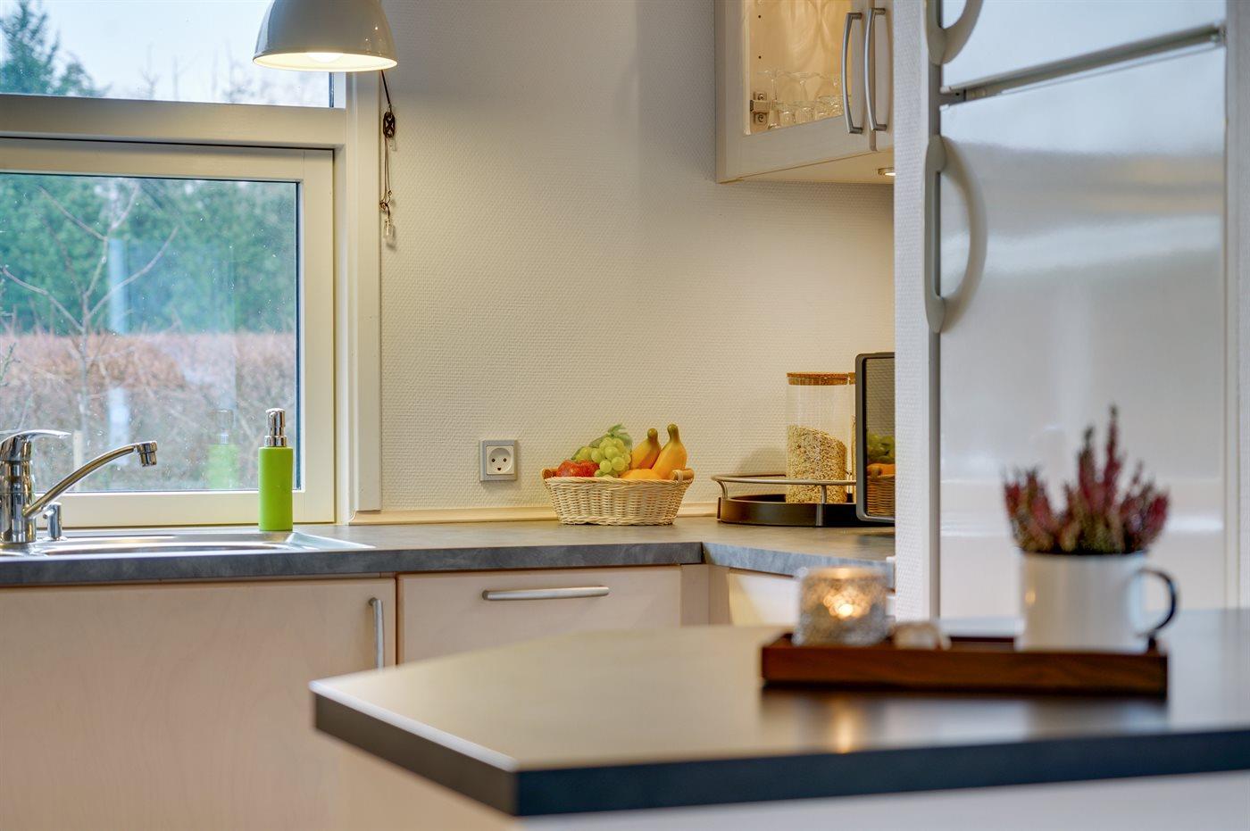 De keuken is uitgerust met koelkast Er zijn 4 keramische kookplaten, heteluchtoven, magnetron en vaatwasser.