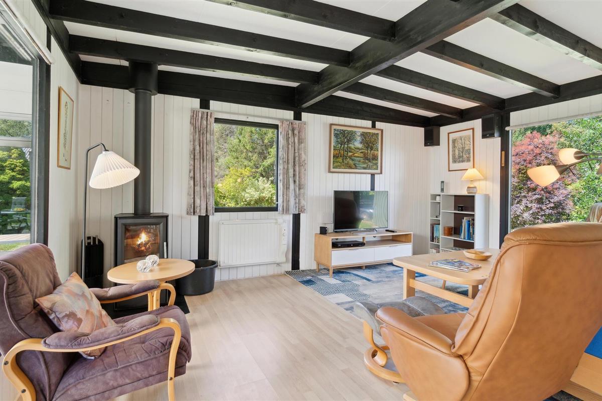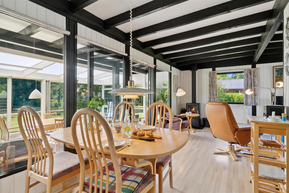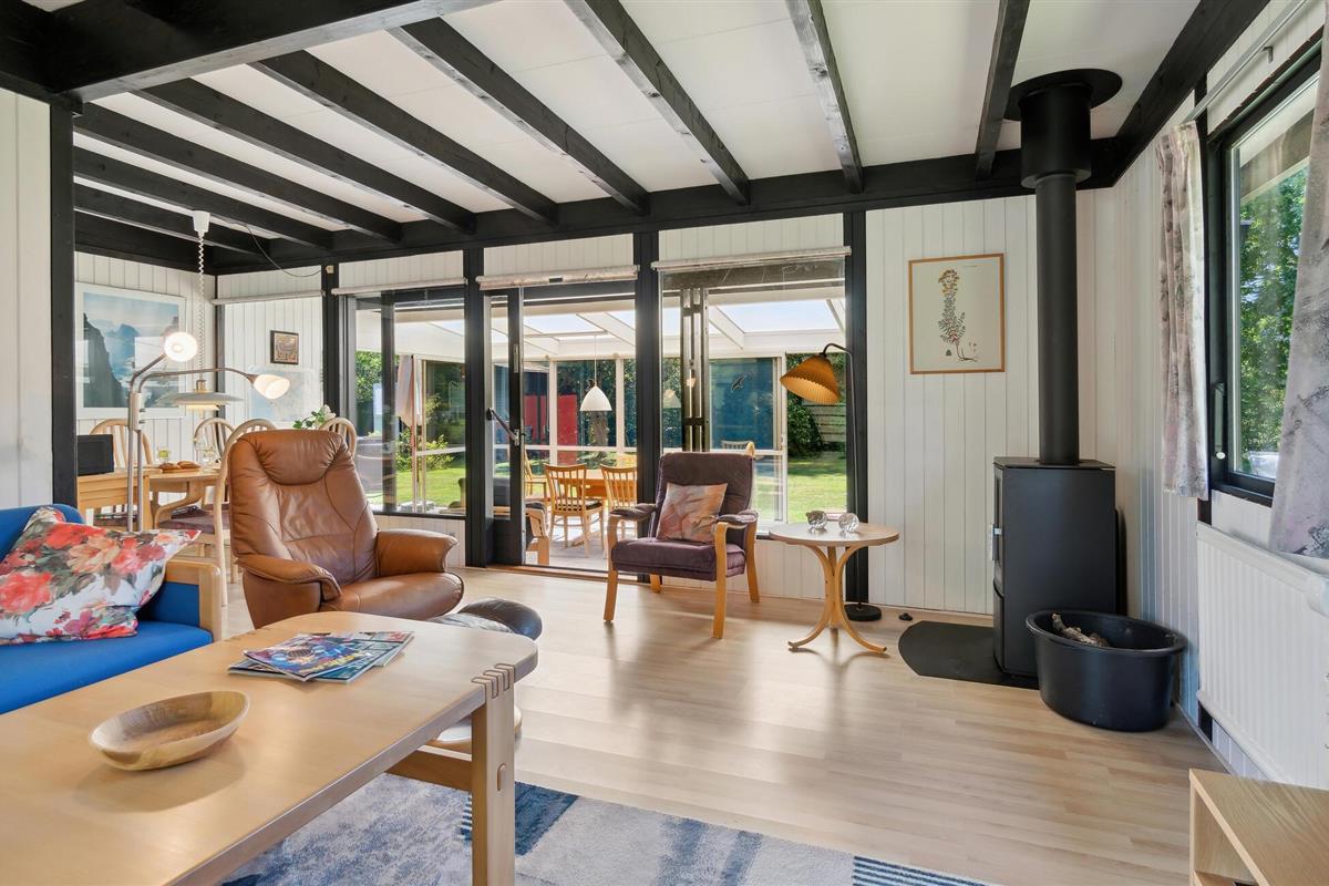 Charmant vakantiehuis nabij stranden van Grote Belt met open haard, serre en tuin, ideaal voor ontspanning en familievakantie.