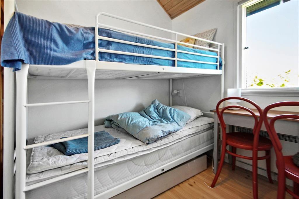 Das Urlaubsdomizil beinhaltet einen offen kombinierten Küche-, Wohn- und Essbereich. In der Küche erleichtern Ihnen unter anderem ein Backofen, ein Induktionskochfeld, ein Geschirrspüler und ein Kühlschrank Ihre alltäglichen Aufgaben. Der Wohnraum bietet einen Ausgang auf die Terrasse, einen Kaminofen, einen guten Essplatz, ein Sofa, Sessel und einen Fernseher mit dänischen und vier deutschen Sendern. Das Badezimmer beinhaltet einen Fliesenboden, eine Duschnische und eine Fußbodenheizung. Die Schlafplätze verteilen sich auf einen Schlafraum mit einem Doppelbett, auf einen Schlafraum mit einem Einzelbett und auf einen Raum mit einem Etagenbett (80 x 200 Zentimeter). Auf dem Schlafboden steht eine doppelte Matratze zur Verfügung. Auf dem Grundstück befindet sich ein Nebengebäude mit einem Doppelbett. Beachten Sie bitte, dass das Nebengebäude nur in der Zeit vom 01. Mai bis 30. September nutzbar ist. Der Kaminofen und Elektroheizkörper sorgen für angenehme Raumtemperaturen.