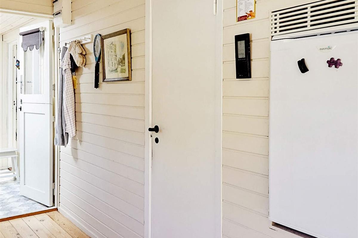 Zugang vom Wohnbereich zur Terrasse mit Gartenmöbeln, Sonnenliegen und Grill, wo Sie den ganzen Sommertag über die Mahlzeiten im Freien genießen können. Neben dem Badezimmer mit Dusche verfügt das Haus zudem über eine praktische Außendusche für das kurze Abspülen zwischendurch.