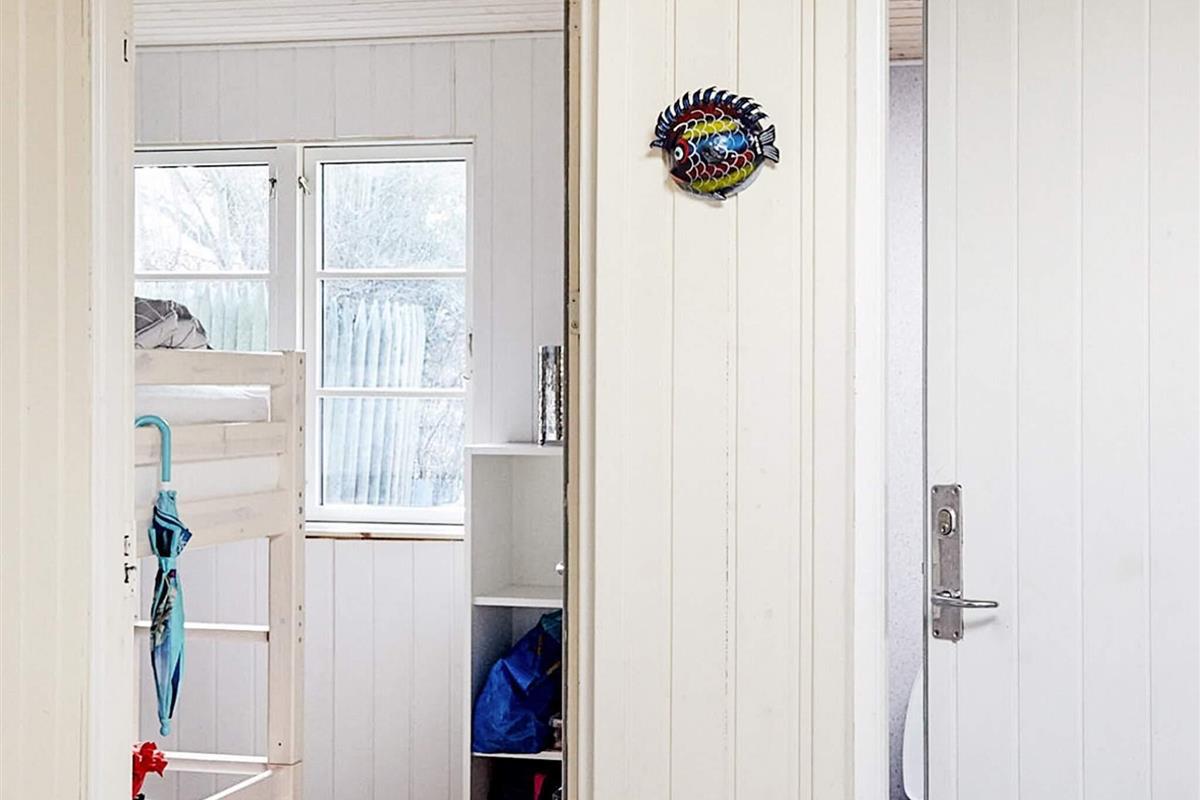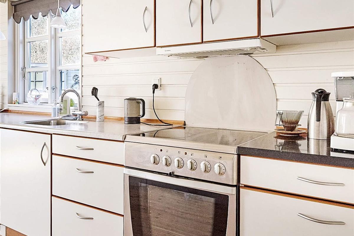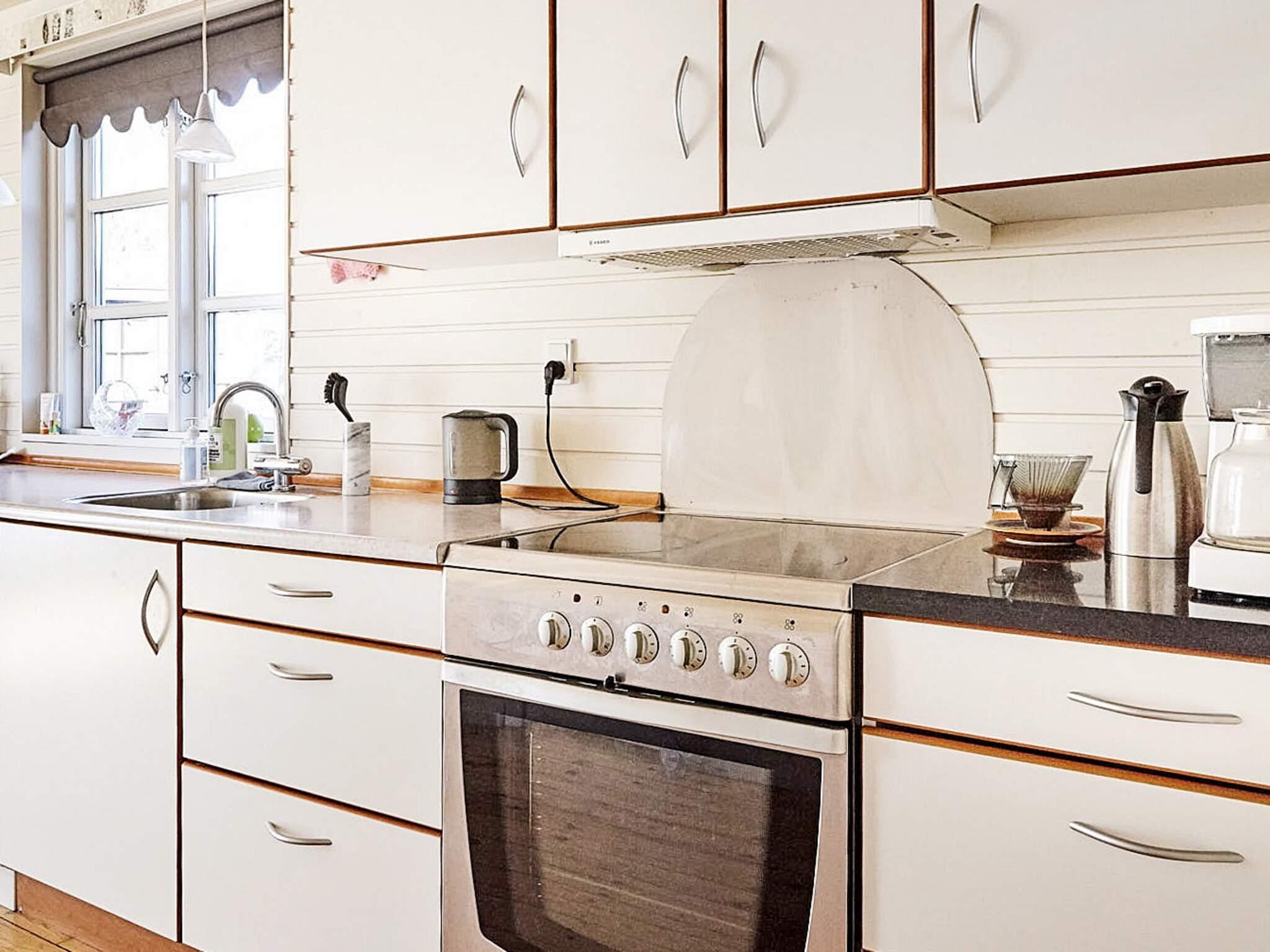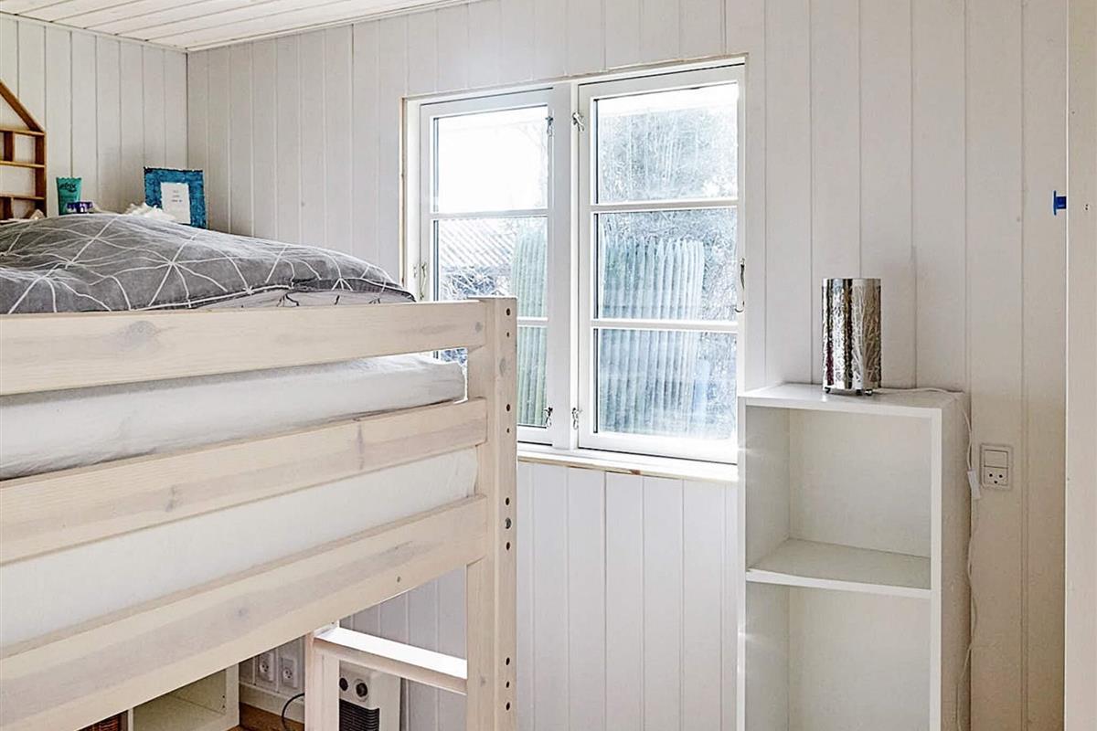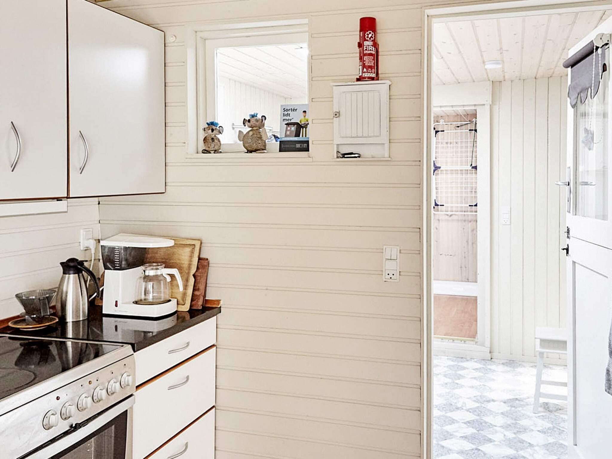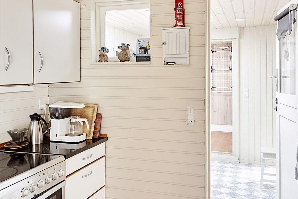 Das gut eingerichtete Ferienhaus hat einen offenen Küchen-/Wohnbereich für das Familienleben sowie ein Schlafzimmer mit Doppelbett und ein zweites Schlafzimmer mit einem Etagenbett.