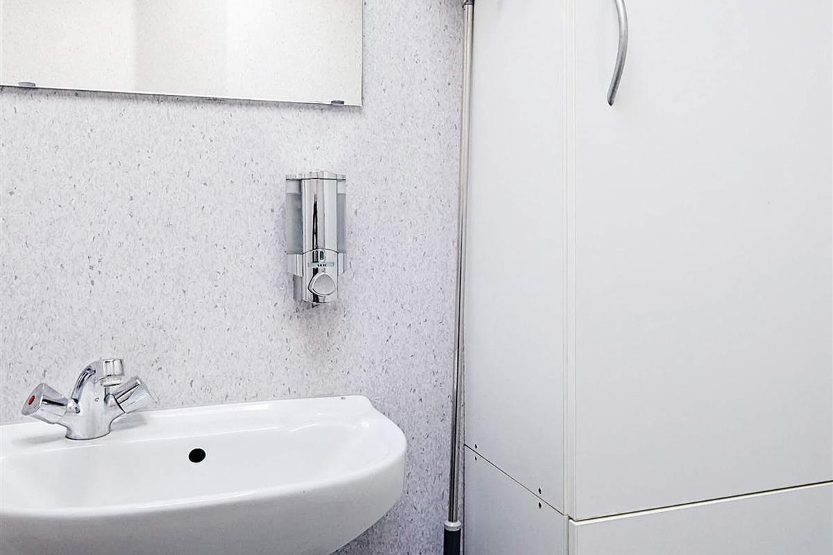 Bad: Waschm., WC, Waschb., Dusche, Fußbodenheiz.