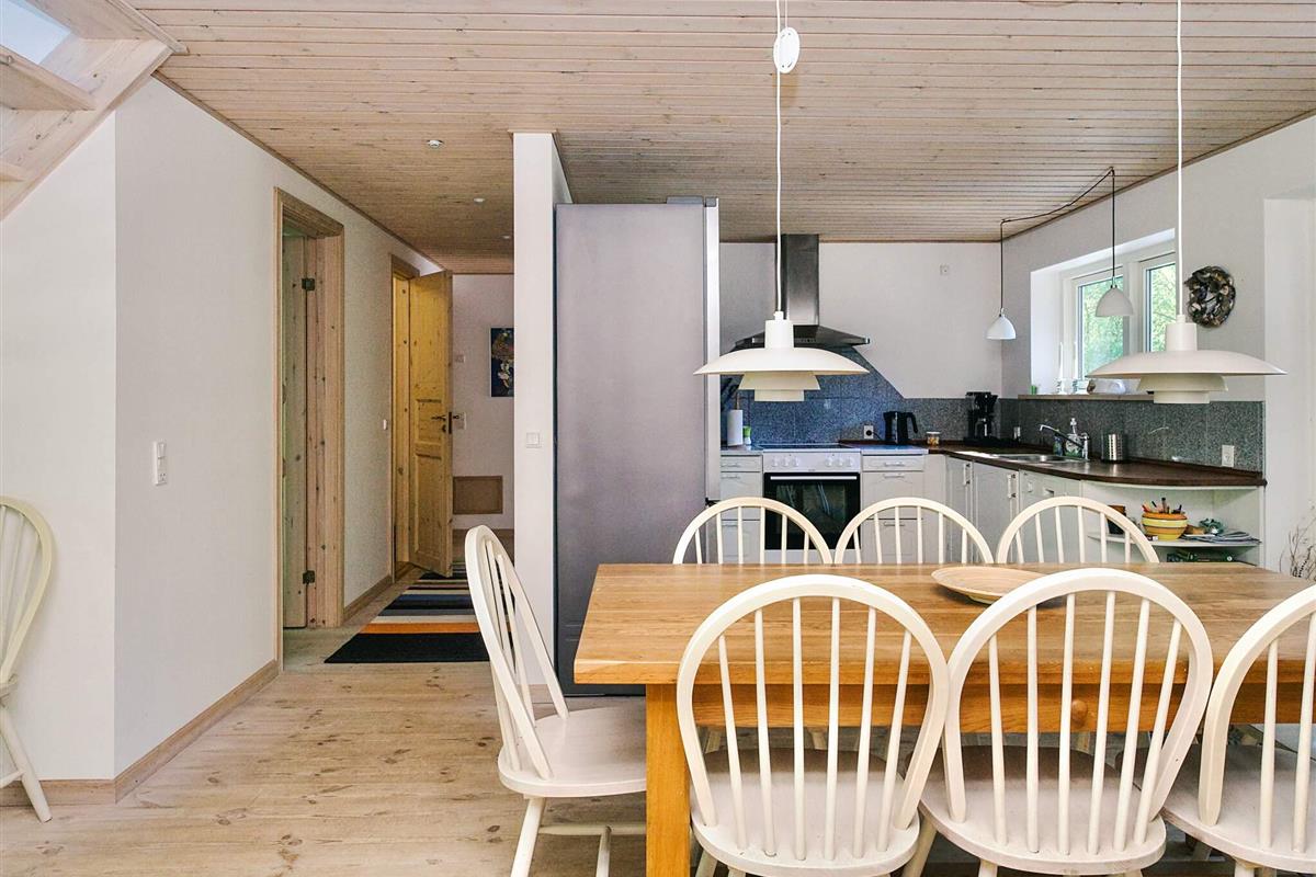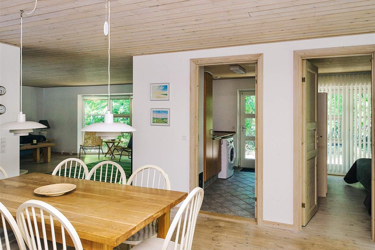 Dieses Ferienhaus liegt in einem ruhigen Gebiet, nicht weit vom Sandstrand entfernt. Es hat eine gute Aufteilung und Einrichtung und eignet sich auch für den Aufenthalt von zwei Familien. Hems mit zwei Schlafplätzen für Kinder/Jugendliche. Der offene Küchen-Aufenthaltsraum und das geräumige Wohnzimmer mit Holzofen sind sicherlich ideal für gemütliches Beisammensein. Das eine Badezimmer verfügt über Sauna und Whirlpool. Waschmaschine und Trockner im Eingangsbereich/Hauswirtschaftsraum. Auf die Kinder warten Schaukel, Sandkasten und Rutsche im Garten. Das Haus liegt etwa 15 Minuten Autofahrt von Kalungborg entfernt.