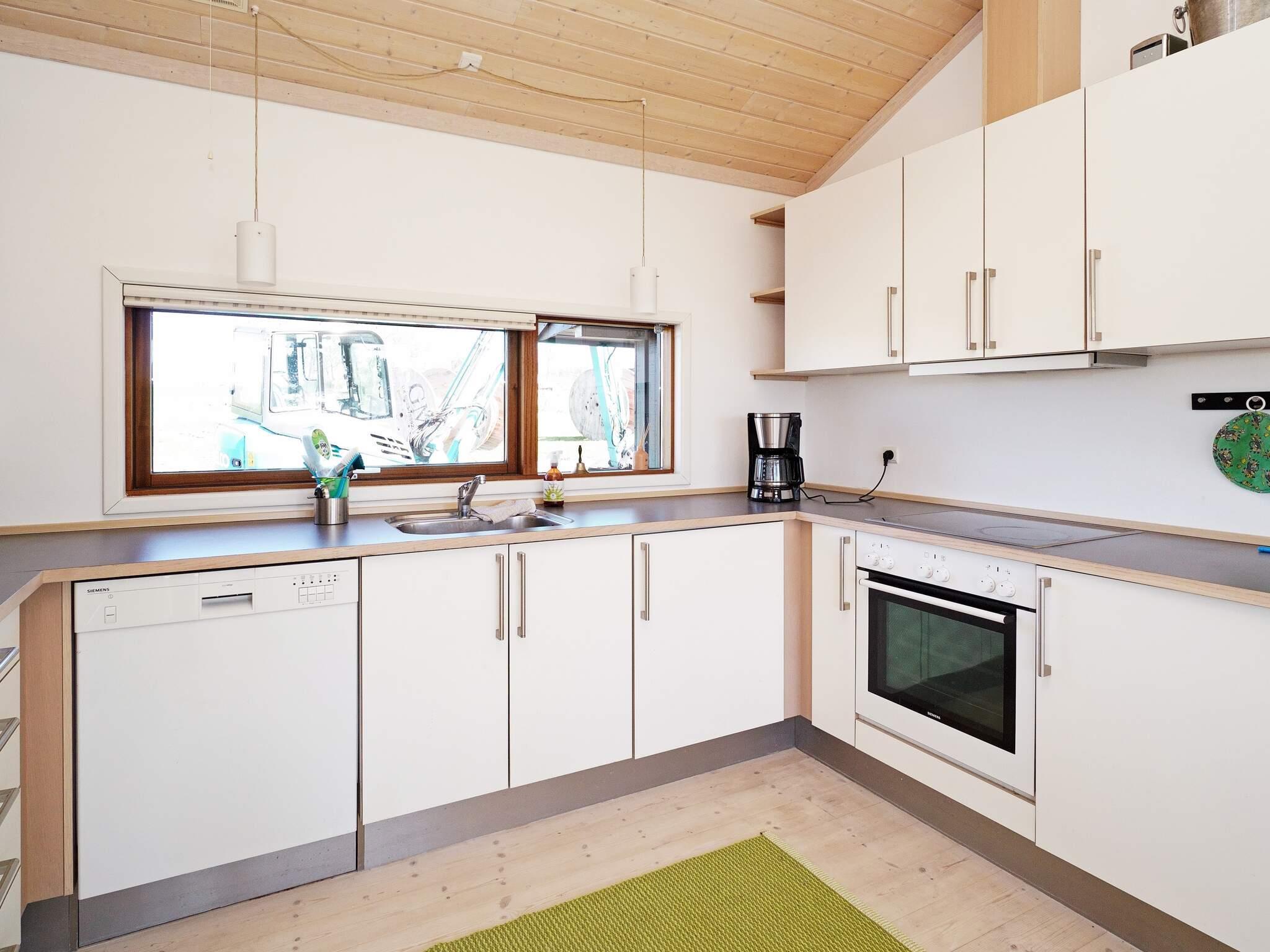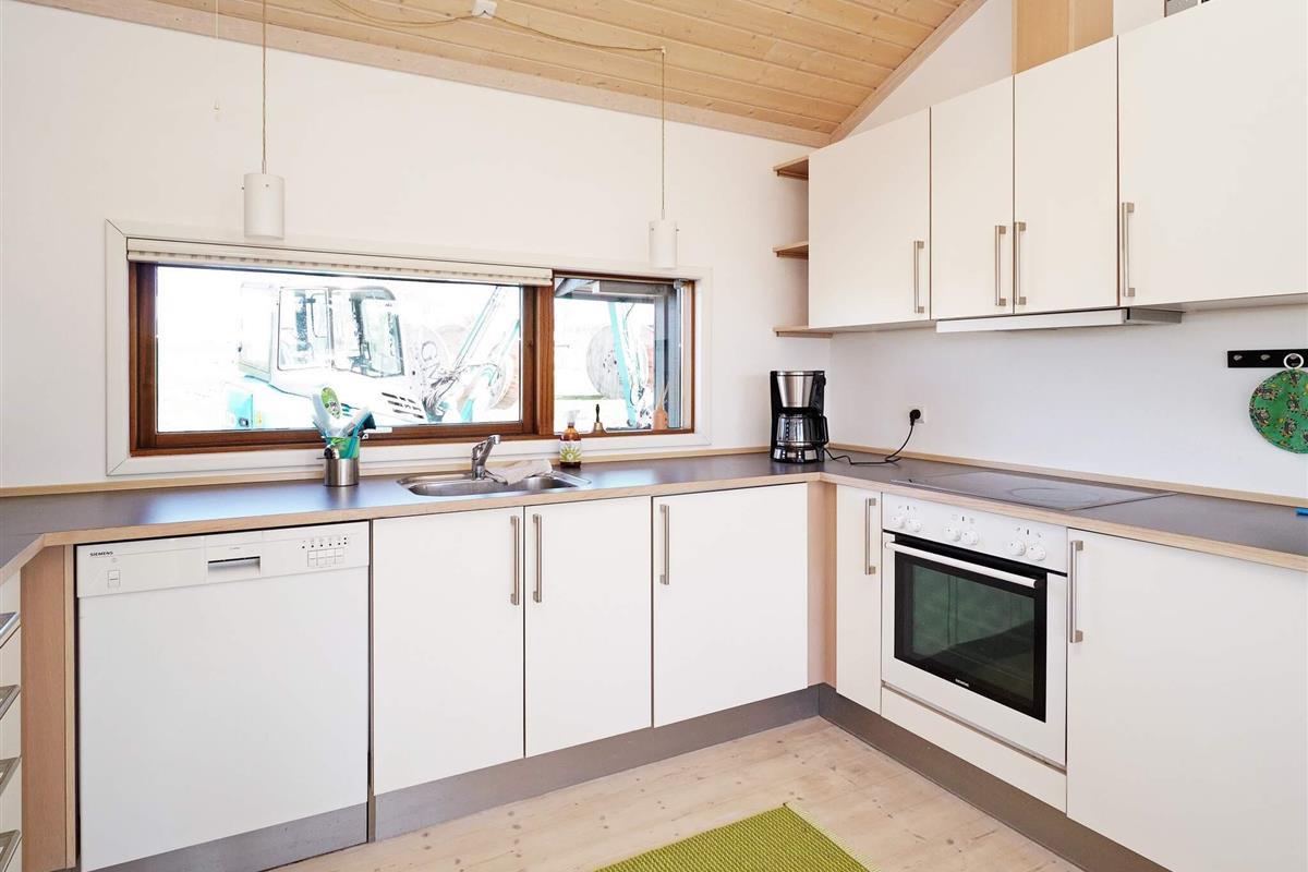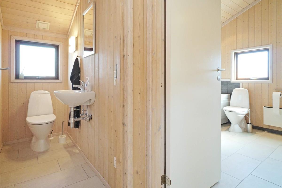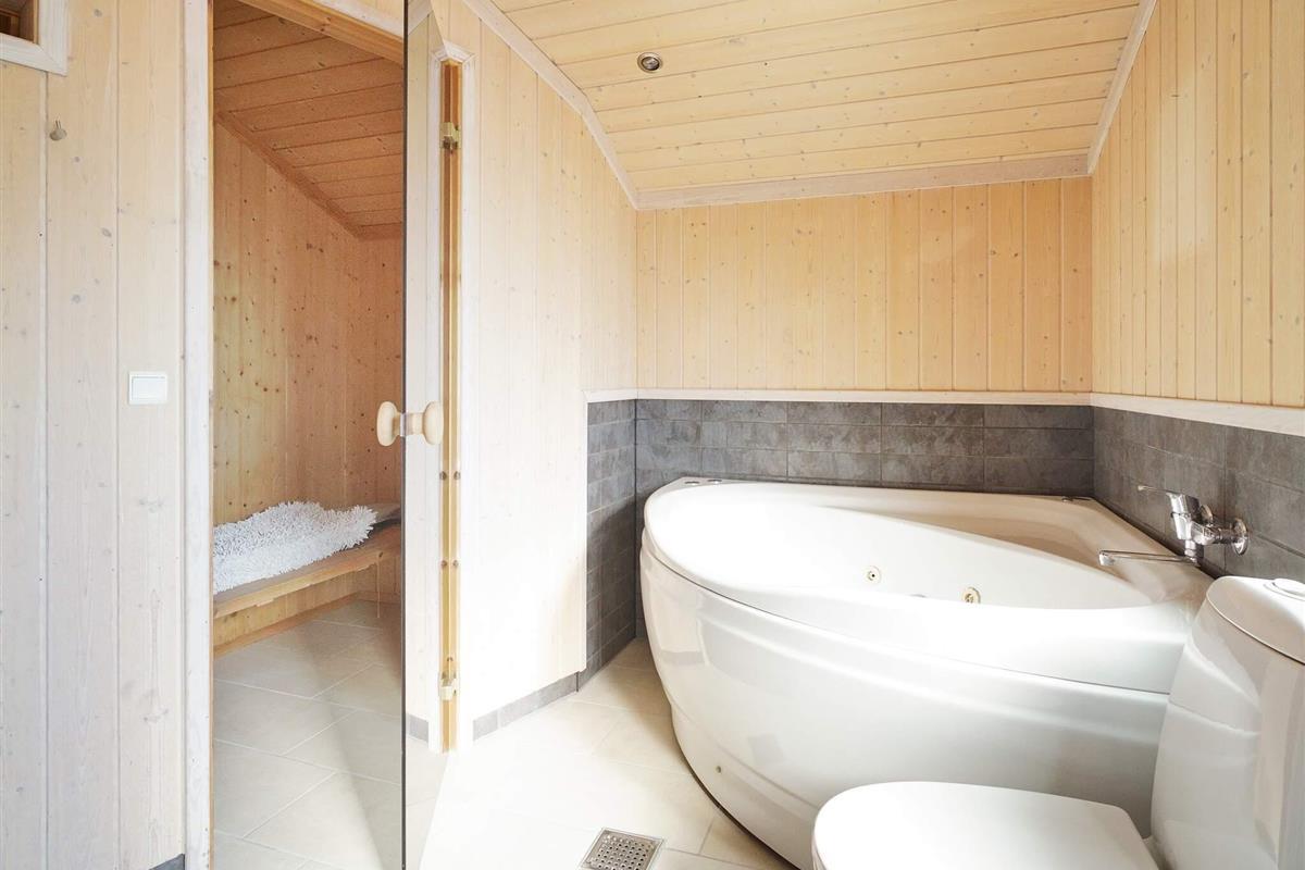 Das Haus verfügt über ein Gäste-WC und ein geräumiges, lichtdurchflutetes Badezimmer mit Dusche, Whirlpool und Sauna – ideal zum Entspannen nach einem Tag am Strand. Draußen lädt die Terrasse mit Gartenmöbeln, einer Sonnenliege und einem Grill zu entspannten Abenden ein. Die erhöhte Lage bietet einen weiten Ausblick. Der Sandstrand ist nur einen kurzen Spaziergang vom Haus entfernt. Angelfreunde finden in der Nähe gute Möglichkeiten. Ein Lebensmittelgeschäft mit frischen Brötchen ist nur fünf Autominuten entfernt.