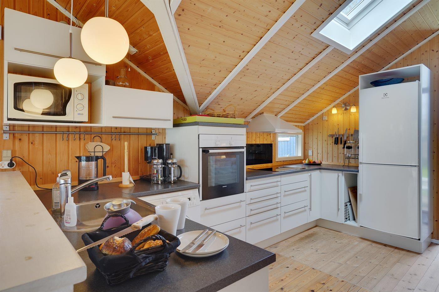 De keuken is uitgerust met koelkast Er zijn 4 keramische kookplaten, heteluchtoven, magnetron en vaatwasser.