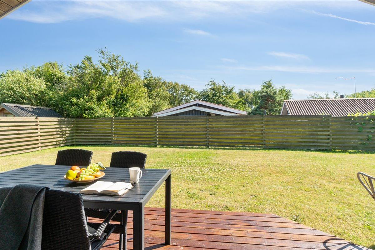 De vakantiewoning is gelegen op een 475 m² groot aangelegde tuin. Afstand tot de zee 200 m. Afstand tot meer 6200 m. Dichtstbijzijnde winkel 4700 m. Er is een golfbaan op een afstand van 20000 m. Bij de vakantiewoning hoort 30 m² terras. Daarnaast is er een 6 m² groot overdekt terras. Barbecue. Carport ter beschikking. Parkeerplaats bij het huis.