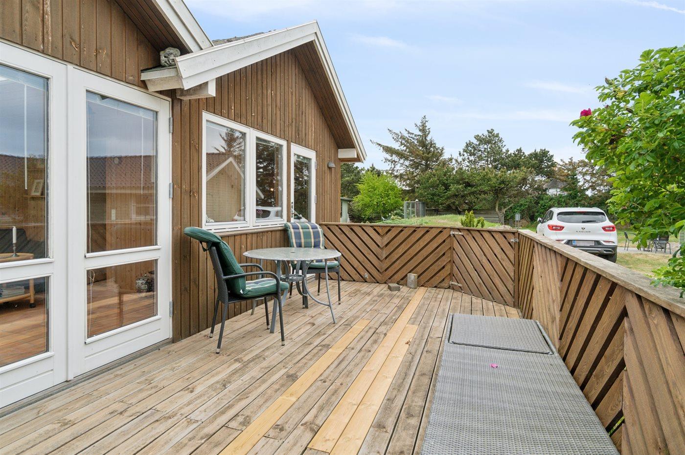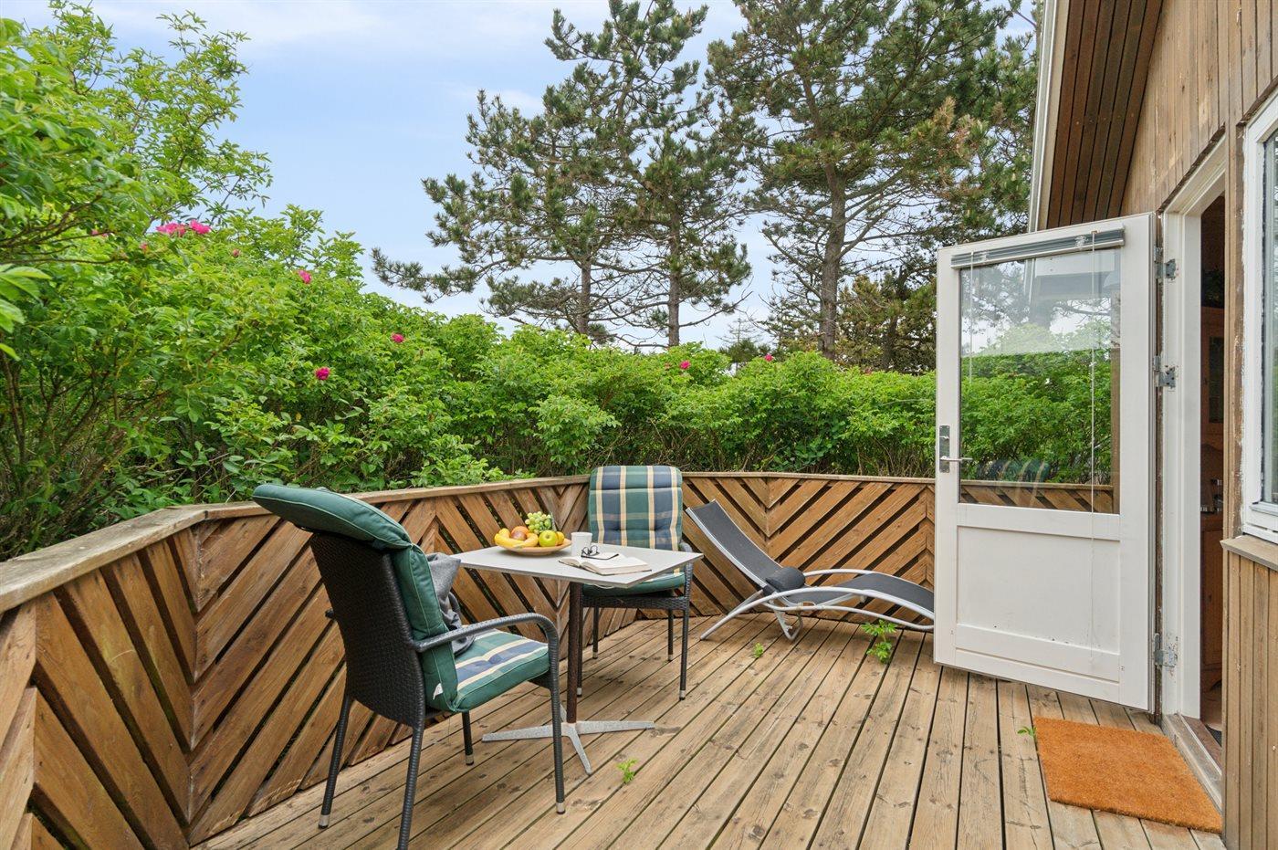 De vakantiewoning is gelegen op een 342 m² groot aangelegde tuin. Afstand tot de zee 100 m. Dichtstbijzijnde winkel 4800 m. Er is een golfbaan op een afstand van 21600 m. Bij de vakantiewoning hoort 22 m² terras. Daarnaast is er een 31 m² groot overdekt terras. Barbecue. Parkeerplaats bij het huis.